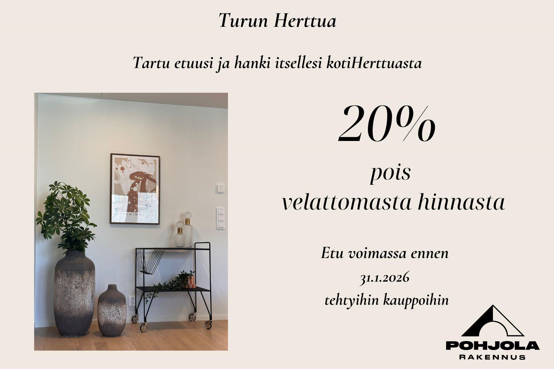 Asunto Oy Turun Herttua on seitsemän kerroksinen kotitalo. Hyvien kulkuyhteyksien päässä niin keskustasta kuin yliopistoltakin on tarjolla vielä muutama koti. Tyylikäs tiiliverhoiltu talon on valmistunut lokakuussa 2023.