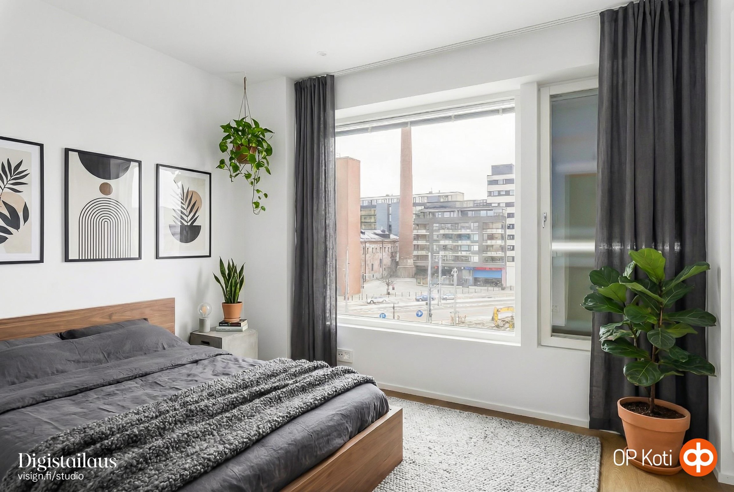 - Kulmahuoneisto, josta näkymä sisäpihalle sekä etelään merelliseen Hietalahdenrantaan.