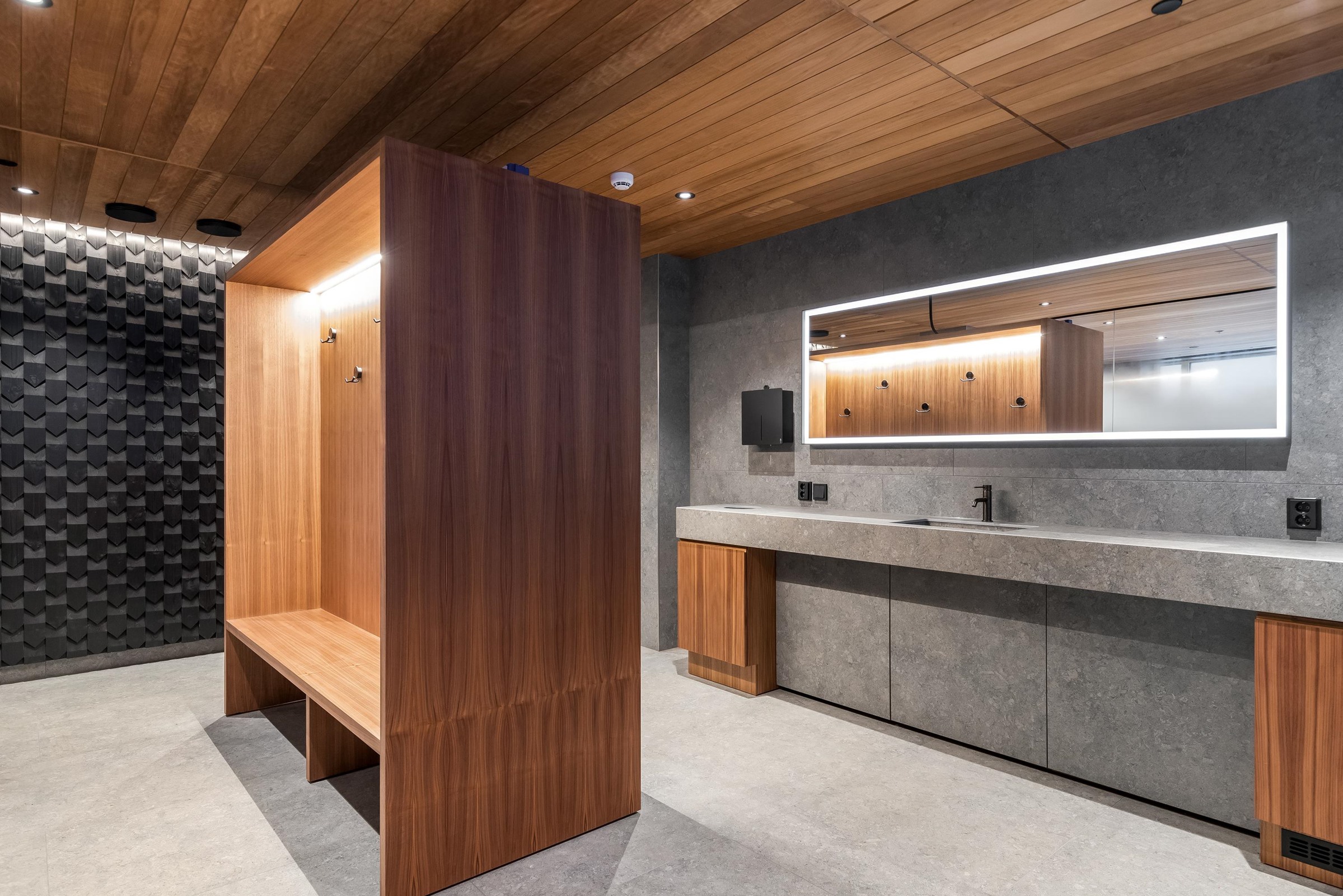 - Kylpyhuoneissa ja wc-tiloissa on allas, allaskaappi, peilikaappi, pohjapiirustuksissa esitetyt kalusteet sekä suihkuseinä (mikäli esitetty pohjapiirustuksessa). Erillis-wc-tiloissa sekä kylpyhuoneissa (mikäli esitetty pohjapiirustuksessa) on seinä-wc-istuin. Pyyhekoukut ja wc-paperitelineet ovat rst-pintaisia tai pinnoitettuja sisustusteeman mukaiseen sävyyn.