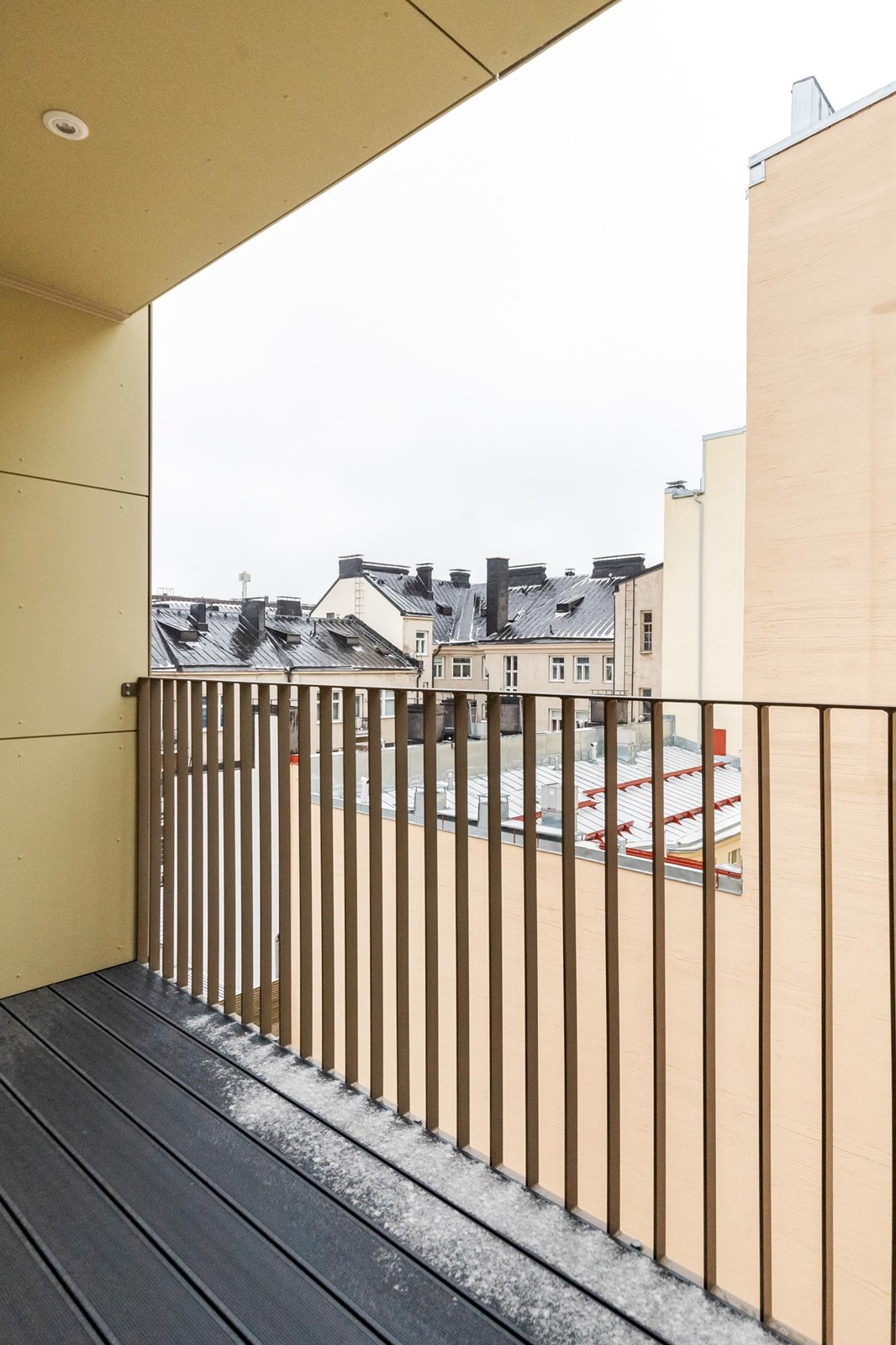 - Parvekkeiden umpisivuseinät ovat julkisivulevyä tai keraamista materiaalia. Parvekkeissa on teräspinnakaide. Lattian materiaali komposiittilankku.