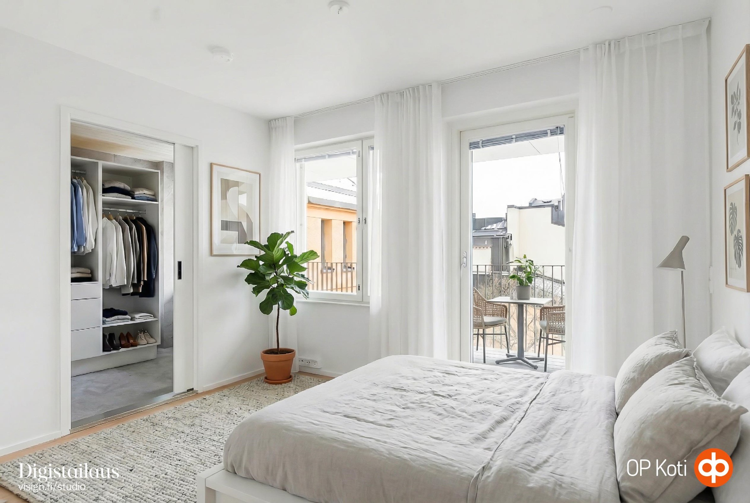 - Kulmahuoneisto, josta näkymä sisäpihalle sekä etelään merelliseen Hietalahdenrantaan.