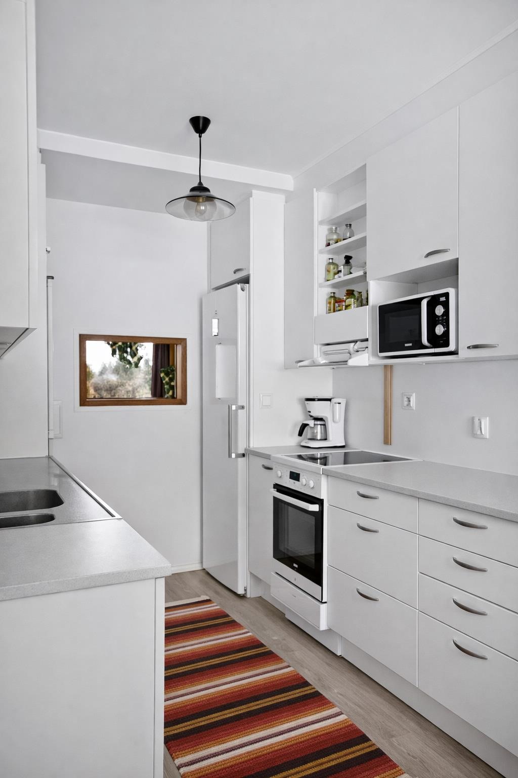 - Jääkaappi, pakastekaappi, keraaminen liesi, astianpesukone, kaapistot, kiinteät valaisimet.