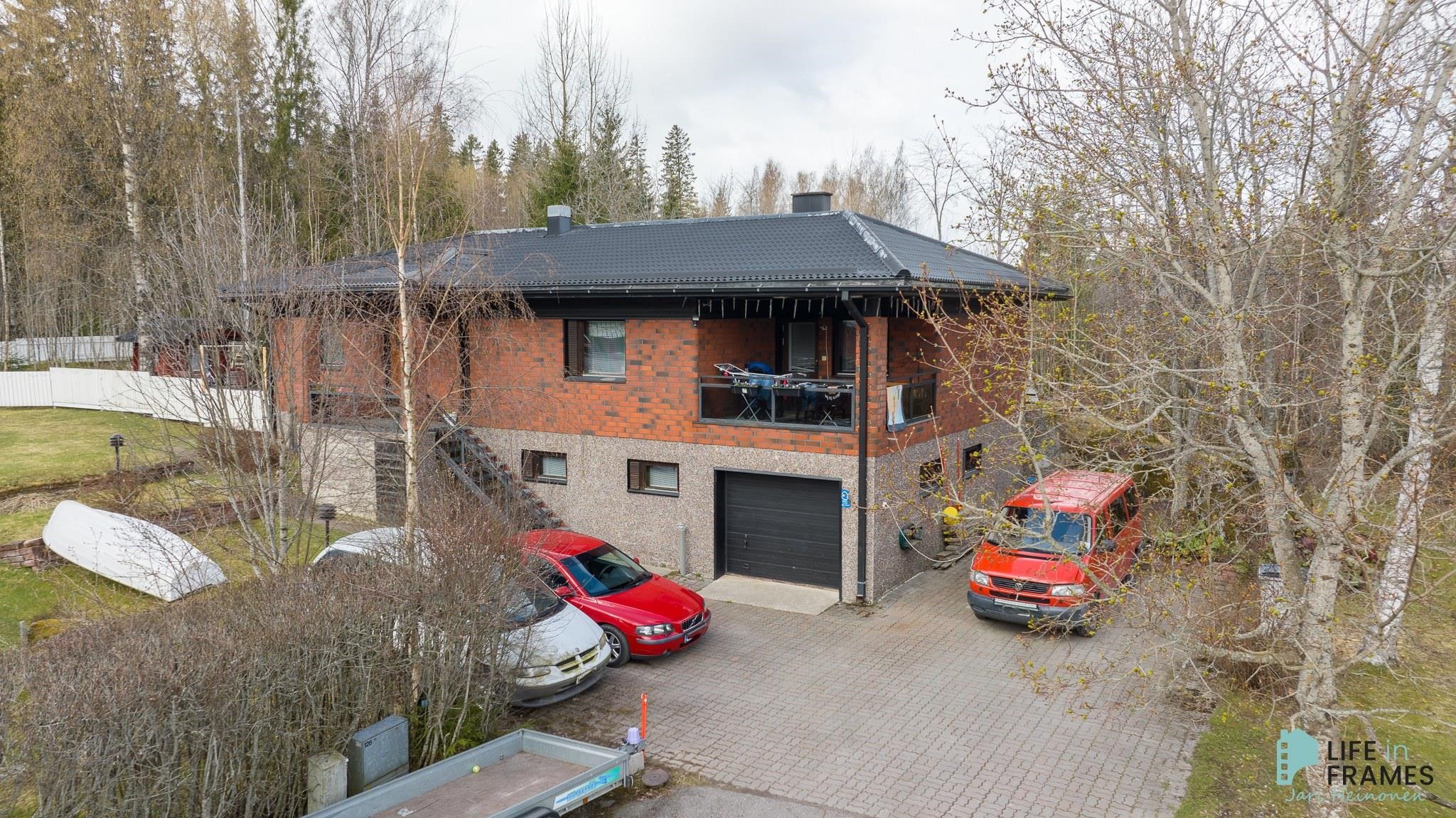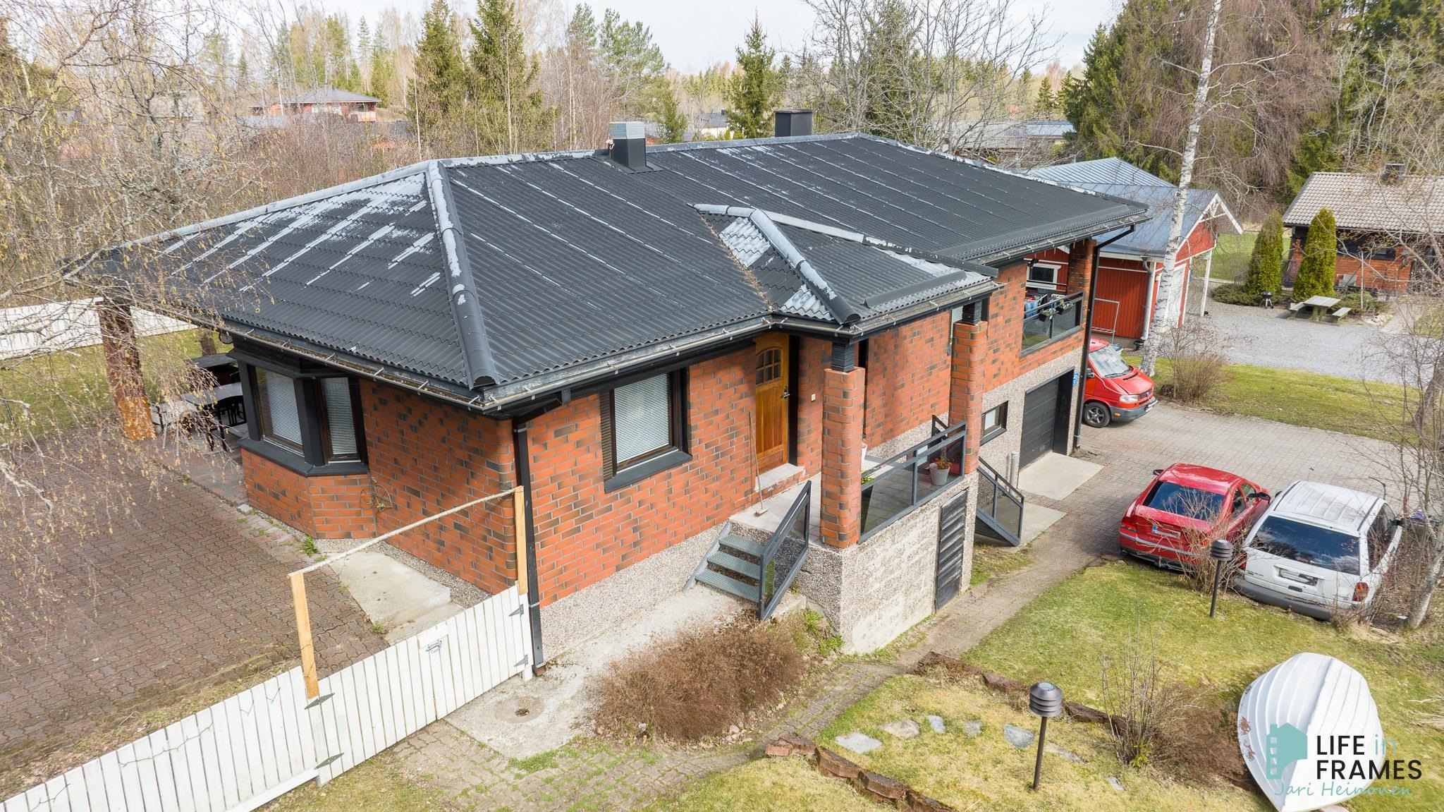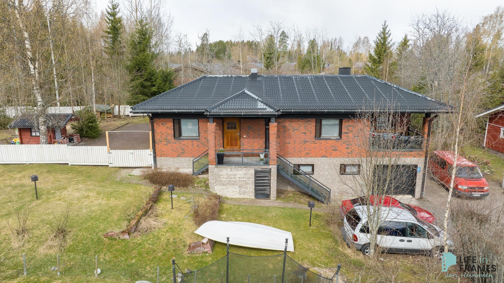 1980-luvun tilava omakotitalo hyvällä paikalla Kivirannan asuinalueella. Noin 958 m2:n tontti on osittain aidattu, sijaitsee päättyvän kadun päässä ja rajoittuu kunnan puistoon. Kivenheiton päässä on Kännölän erinomainen ulkoilualue ja keskustan palvelut kouluineen on vain parin kilometrin päässä. Talossa on toimiva pohjaratkaisu, jonka ansiosta tilaa riittää isommankin perheen tarpeisiin. Sisäänkäynti taloon on yläkerrassa, josta eteisen lisäksi löytyy muun muassa avara ruokailutilan, keittiön ja olohuoneen yhdistelmä ja useampi makuuhuone. Alakerrassa on reilunkokoinen takkahuone sekä pesu- ja varastotilat. Talon yhteydessä on lisäksi autotalli, johon on kulku myös sisäkautta. Talo on lähes alkuperäiskuntoinen, mutta vuonna 2019 sisätiloissa on tehty pintaremonttia, joka käsittää parketin hionnan ja osittaisen seinien maalauksen. Lämmitysmuotona on sähkö pääsääntöisesti sähköpattereilla ja osittain lattialämmityksellä. Lisäksi apuna lämmityksessä yläkerrassa ilmalämpöpumppu ja alakerrassa varaava takka.