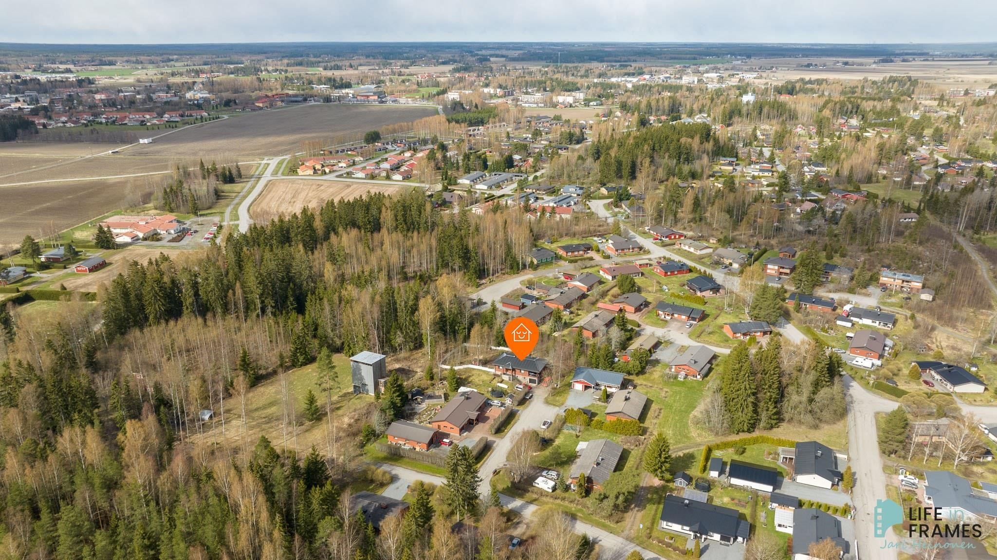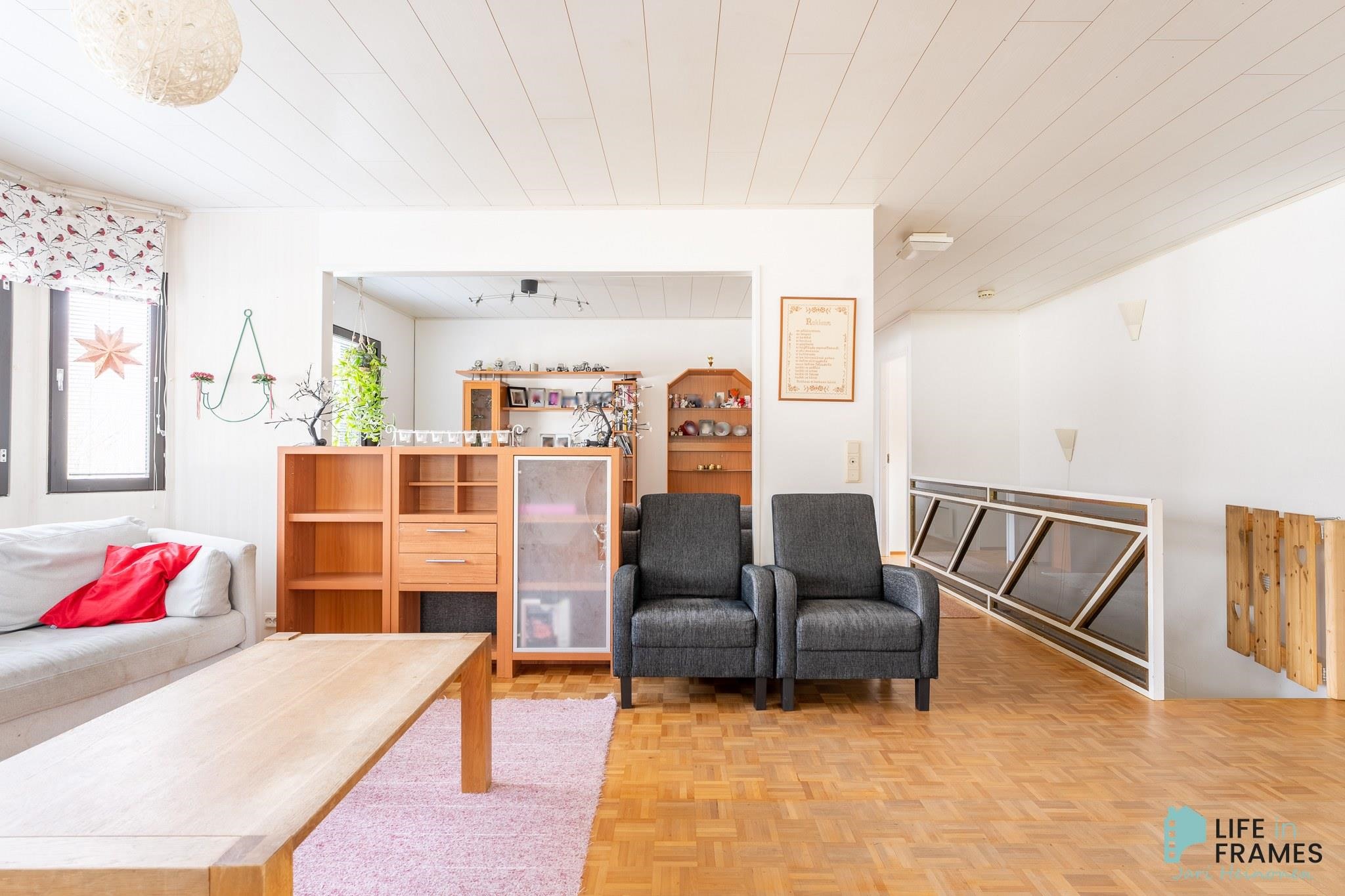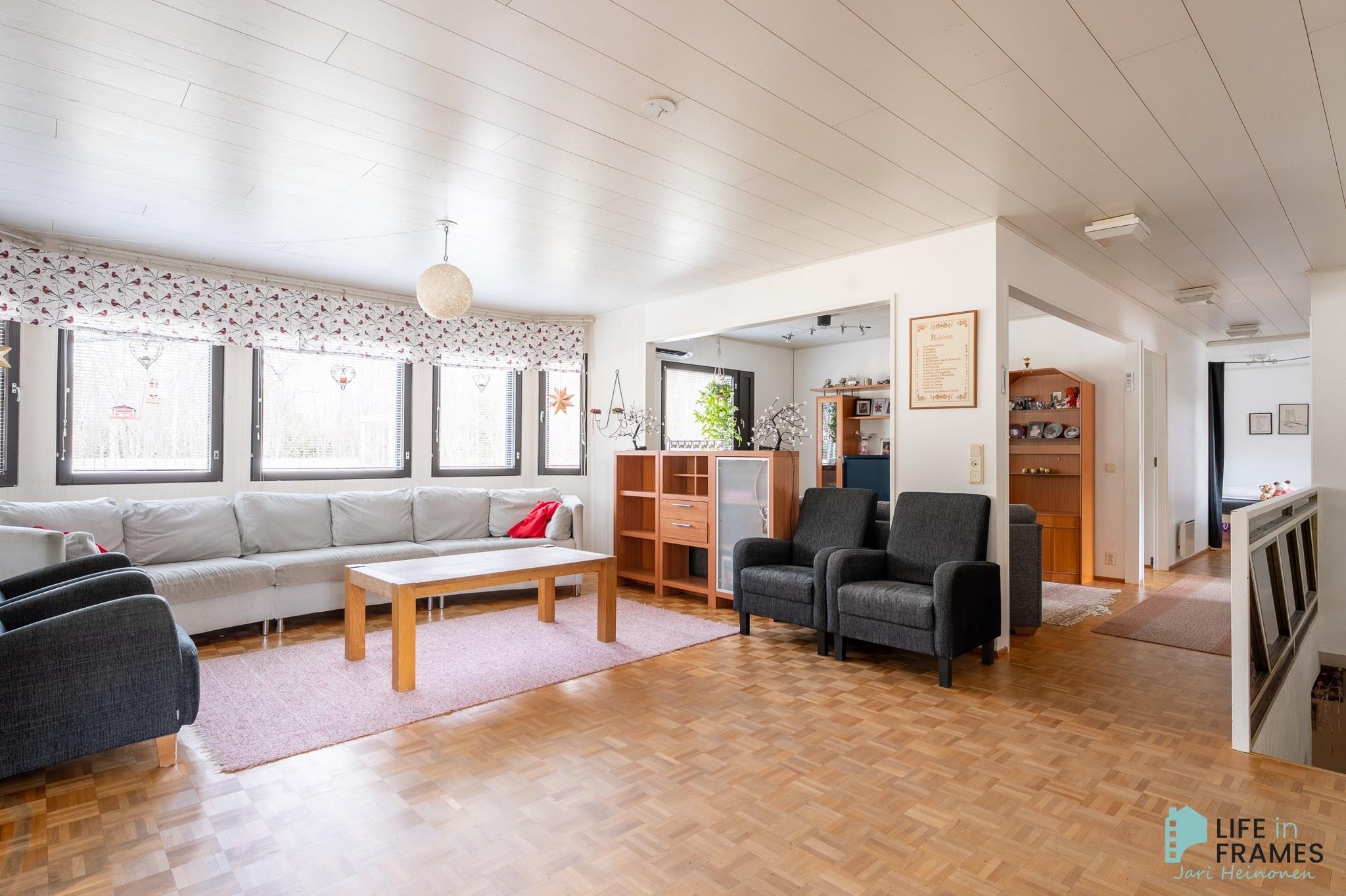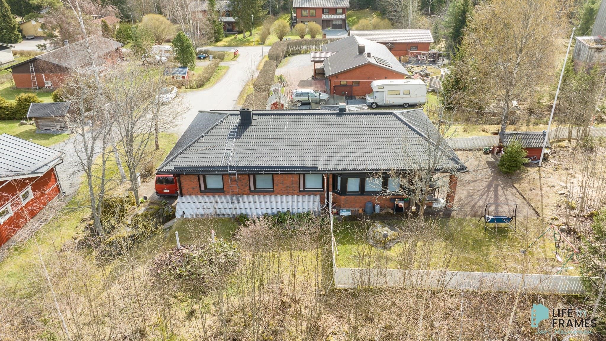 1980-luvun tilava omakotitalo hyvällä paikalla Kivirannan asuinalueella. Noin 958 m2:n tontti on osittain aidattu, sijaitsee päättyvän kadun päässä ja rajoittuu kunnan puistoon. Kivenheiton päässä on Kännölän erinomainen ulkoilualue ja keskustan palvelut kouluineen on vain parin kilometrin päässä. Talossa on toimiva pohjaratkaisu, jonka ansiosta tilaa riittää isommankin perheen tarpeisiin. Sisäänkäynti taloon on yläkerrassa, josta eteisen lisäksi löytyy muun muassa avara ruokailutilan, keittiön ja olohuoneen yhdistelmä ja useampi makuuhuone. Alakerrassa on reilunkokoinen takkahuone sekä pesu- ja varastotilat. Talon yhteydessä on lisäksi autotalli, johon on kulku myös sisäkautta. Talo on lähes alkuperäiskuntoinen, mutta vuonna 2019 sisätiloissa on tehty pintaremonttia, joka käsittää parketin hionnan ja osittaisen seinien maalauksen. Lämmitysmuotona on sähkö pääsääntöisesti sähköpattereilla ja osittain lattialämmityksellä. Lisäksi apuna lämmityksessä yläkerrassa ilmalämpöpumppu ja alakerrassa varaava takka.