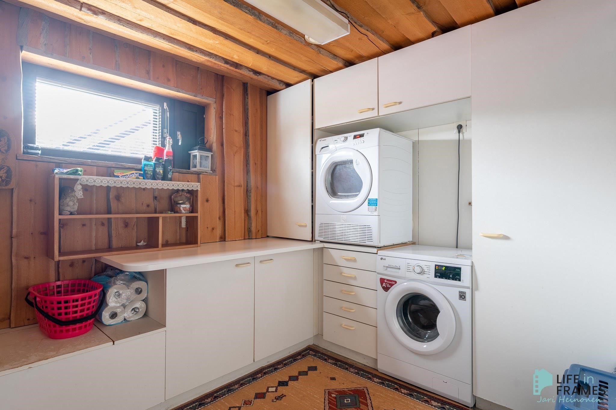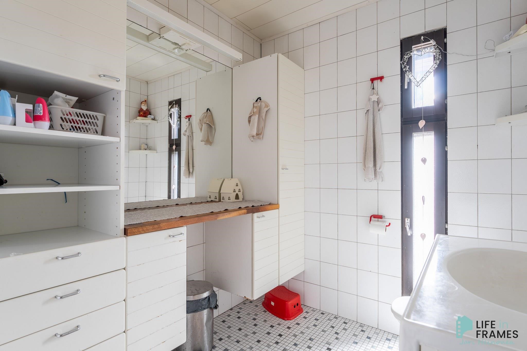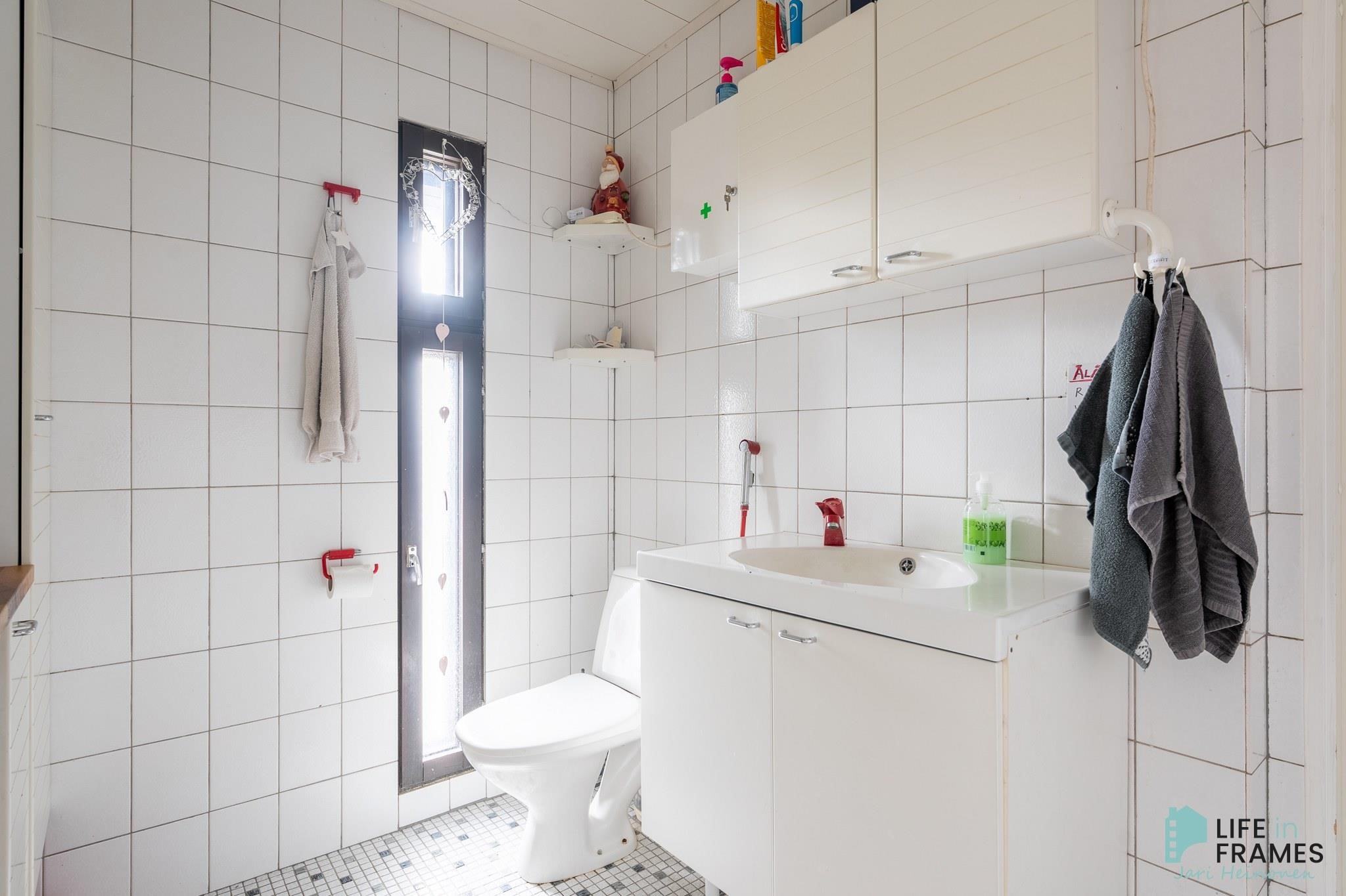 - Sauna, sähkökiuas (heti valmis), kylpyhuone, erillinen wc (2 kpl), suihku, peilit, allaskaappi, pesukoneliitäntä, lattialämmitys, kiinteät valaisimet.