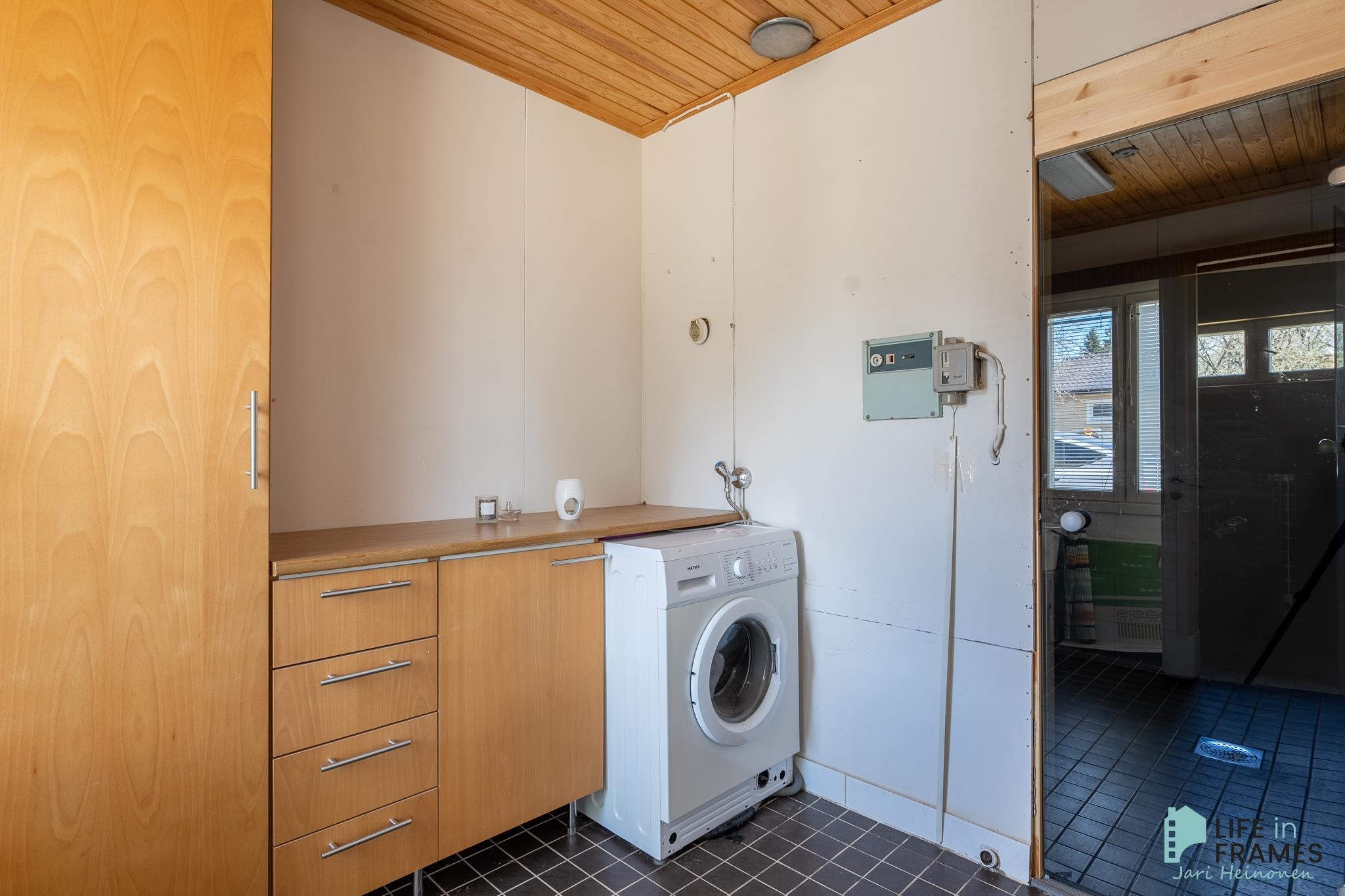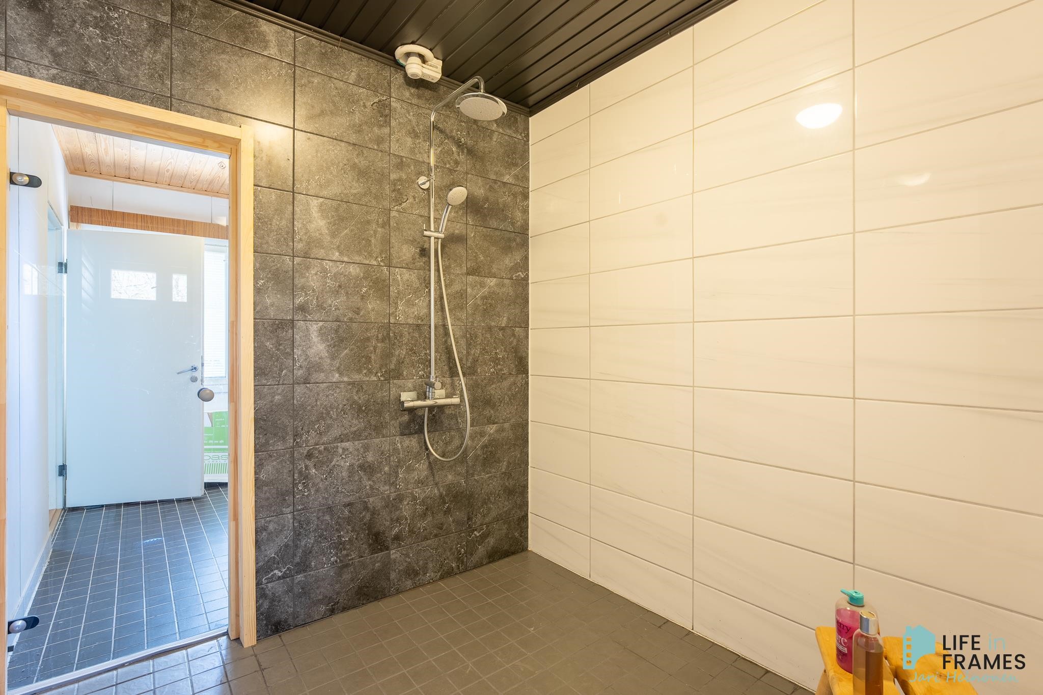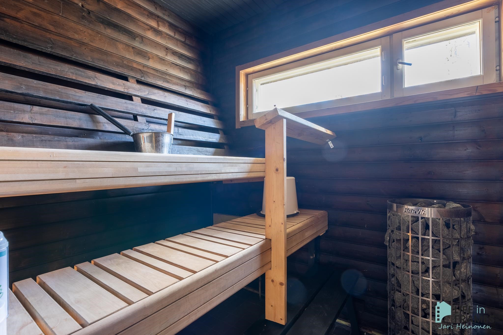 - Sauna, sähkökiuas, kylpyhuone, erillinen wc (2 kpl), suihku, peilit, pesukoneliitäntä, lattialämmitys (khh, ph, s), kiinteät valaisimet.