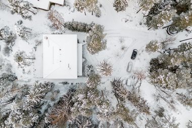 Energiatehokkuudessa ei ole tingitty. Talo kuuluu A energialuokkaan. Lämmitys hoituu merilämmöllä, ja katolle asennetut 28 aurinkopaneelia on kytketty sähkökiertoon. Lisäksi talossa on puukattila varalla, ja keittiön puuhella tukee vesikiertoista järjestelmää. 15 kilowattitunnin reserviakku auttaa minimoimaan tai jopa kattamaan sähkönkulutuksen. Koneellinen ilmanvaihto lämmön talteenotolla viimeistelee energiatehokkuuden.