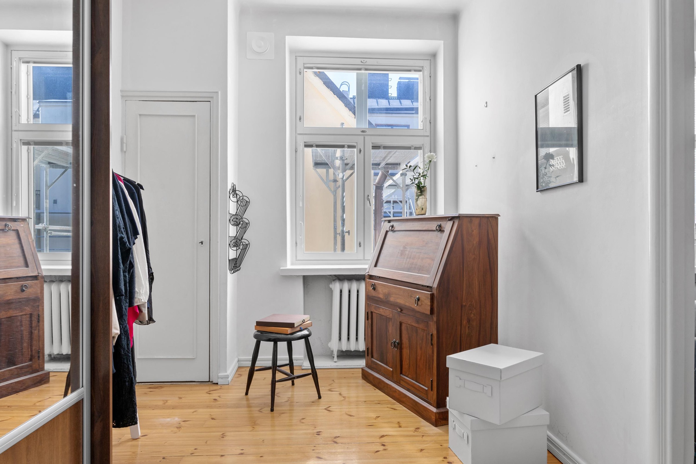 Tämä kaunis koti tarjoaa asujalleen toimivan pohjaratkaisun, jossa kaksi järkevän mallista huonetta mahdollistaa tilan isommallekin ruokapöydälle, selkeälle erilliselle työtilalle makuuhuoneen puolella ja hyvän kokoiselle oleskelutilalle. Korkeat huoneet, upeat lautalattiat ja rauhallinen sisäpihanäkymä luovat asuntoon seesteisen tunnelman.
