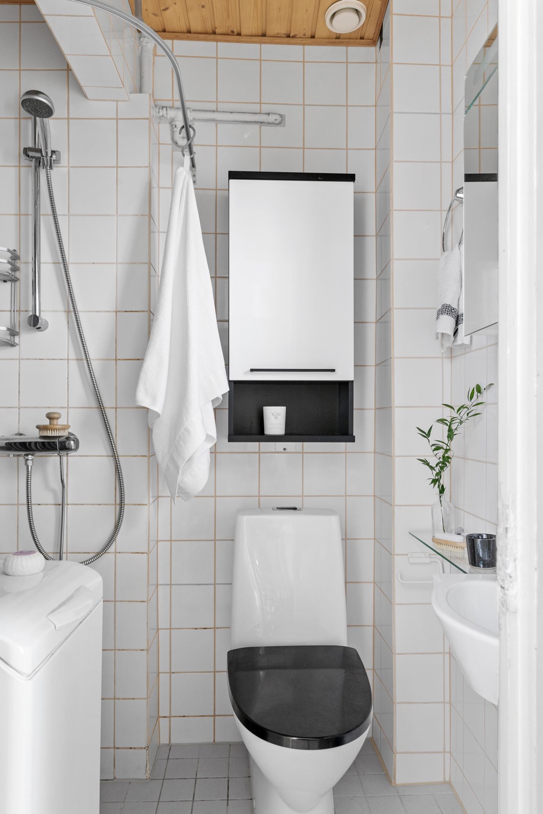 - Kylpyhuone, suihku, peilikaappi, kaapit seinäkaappi, pesukoneliitäntä.