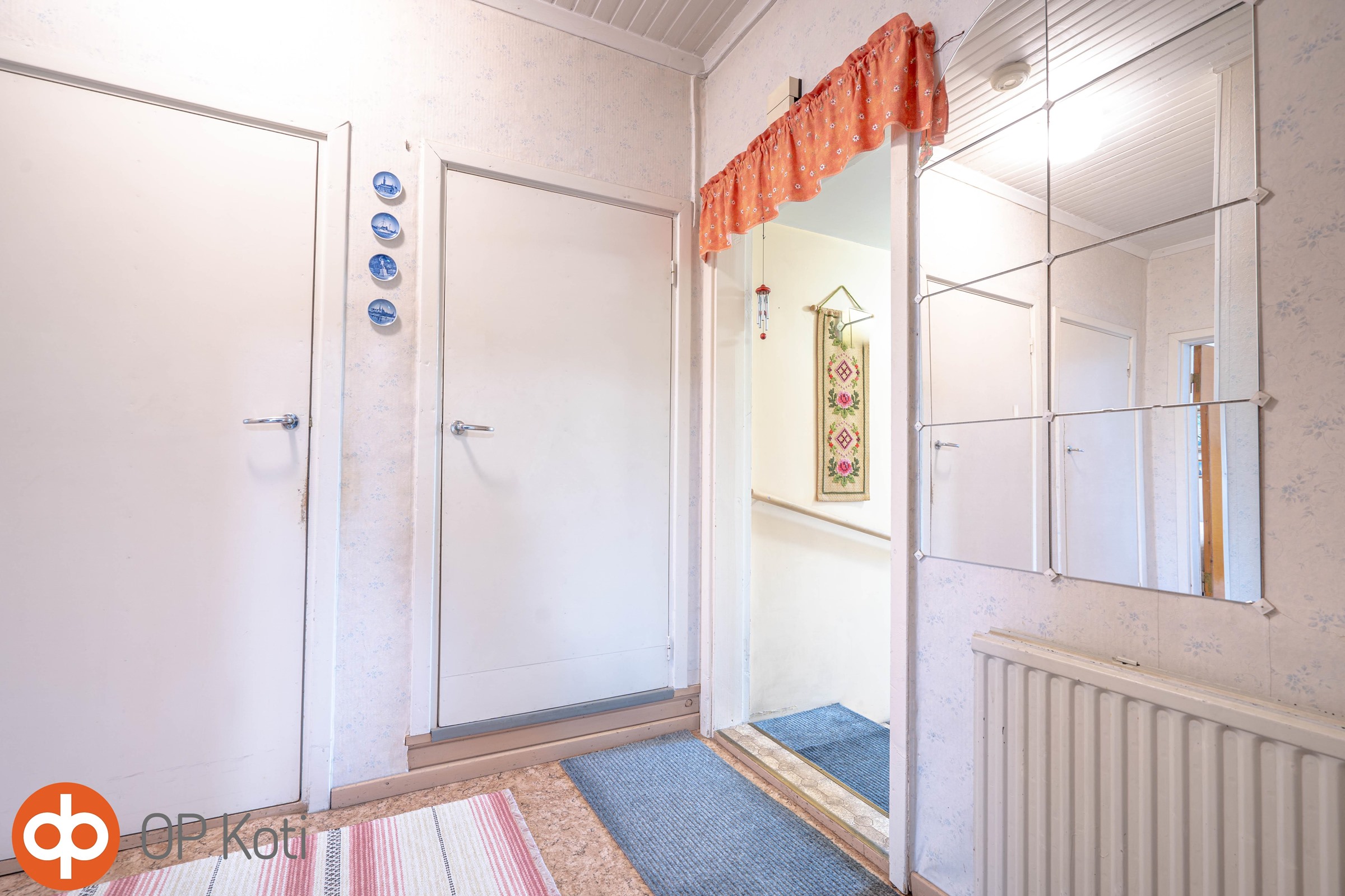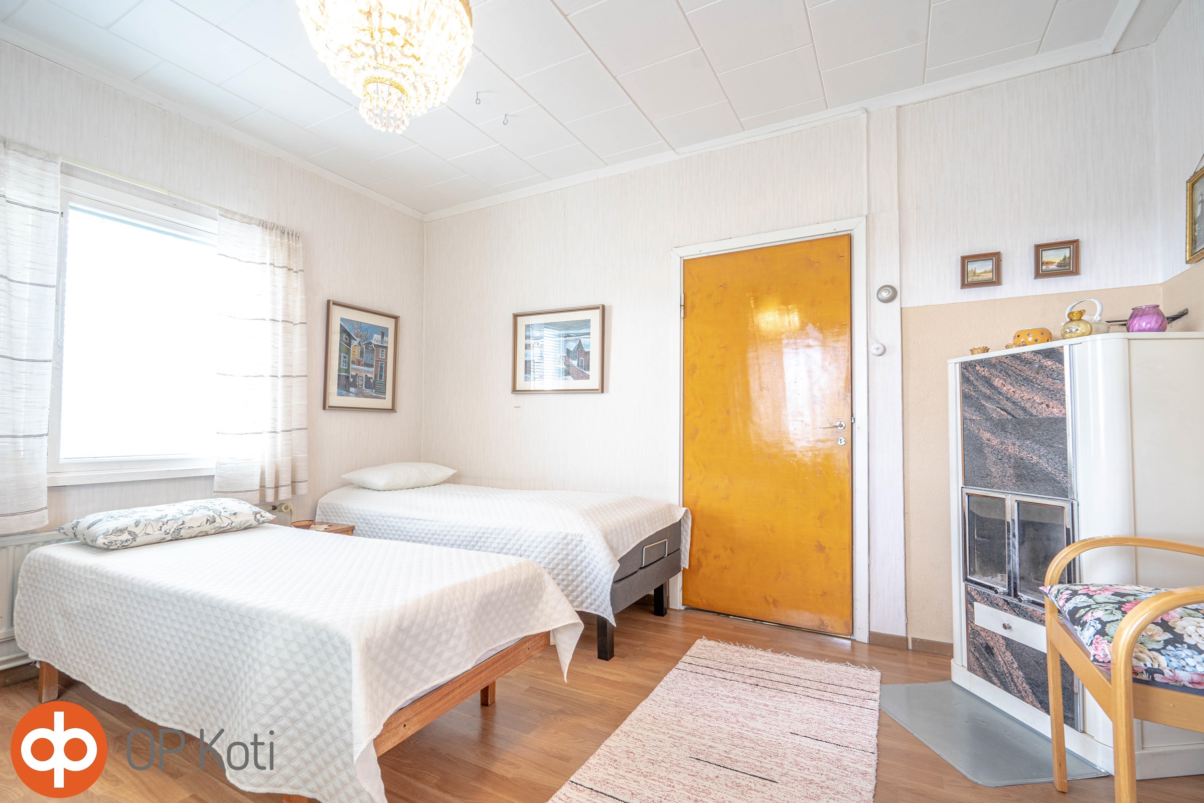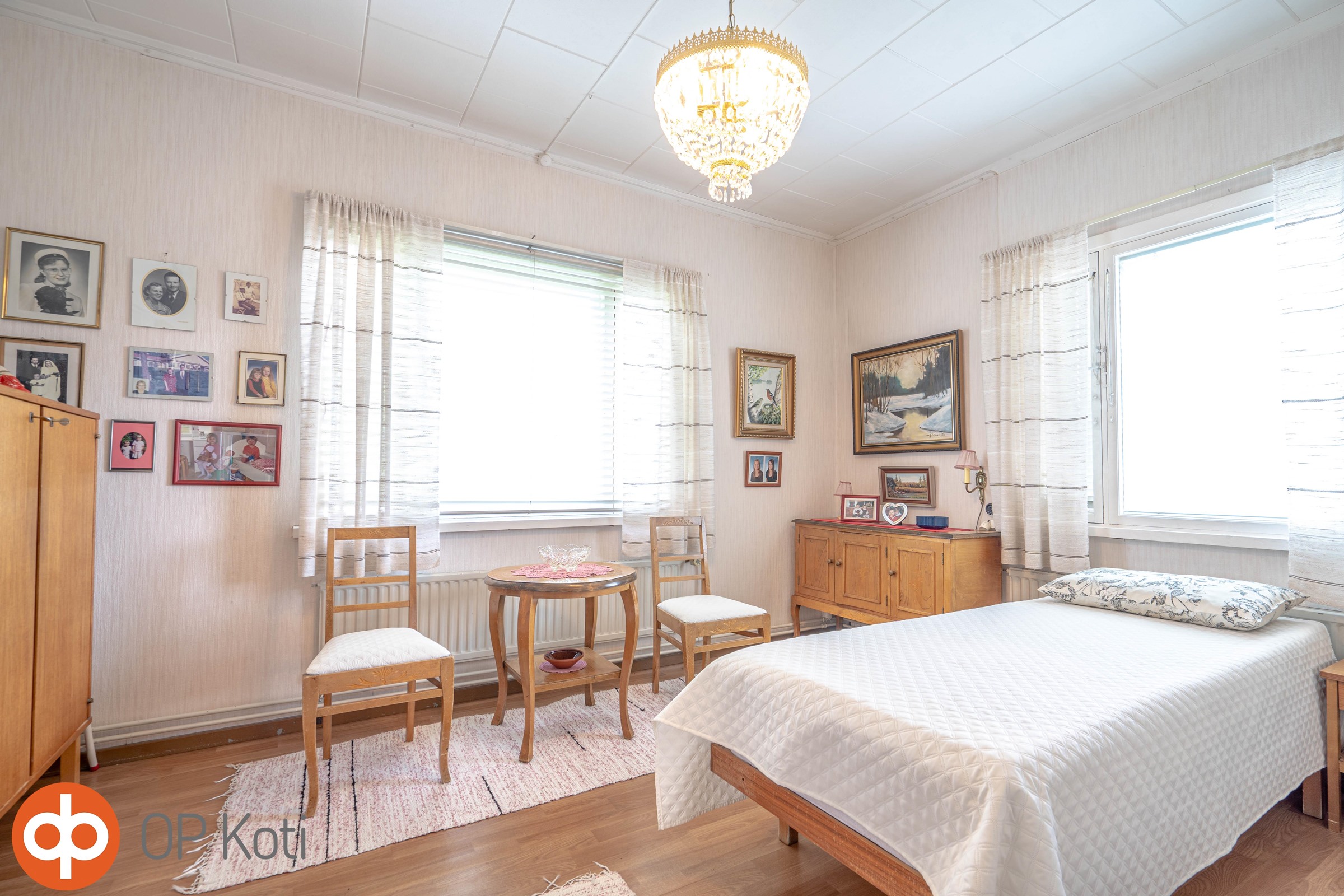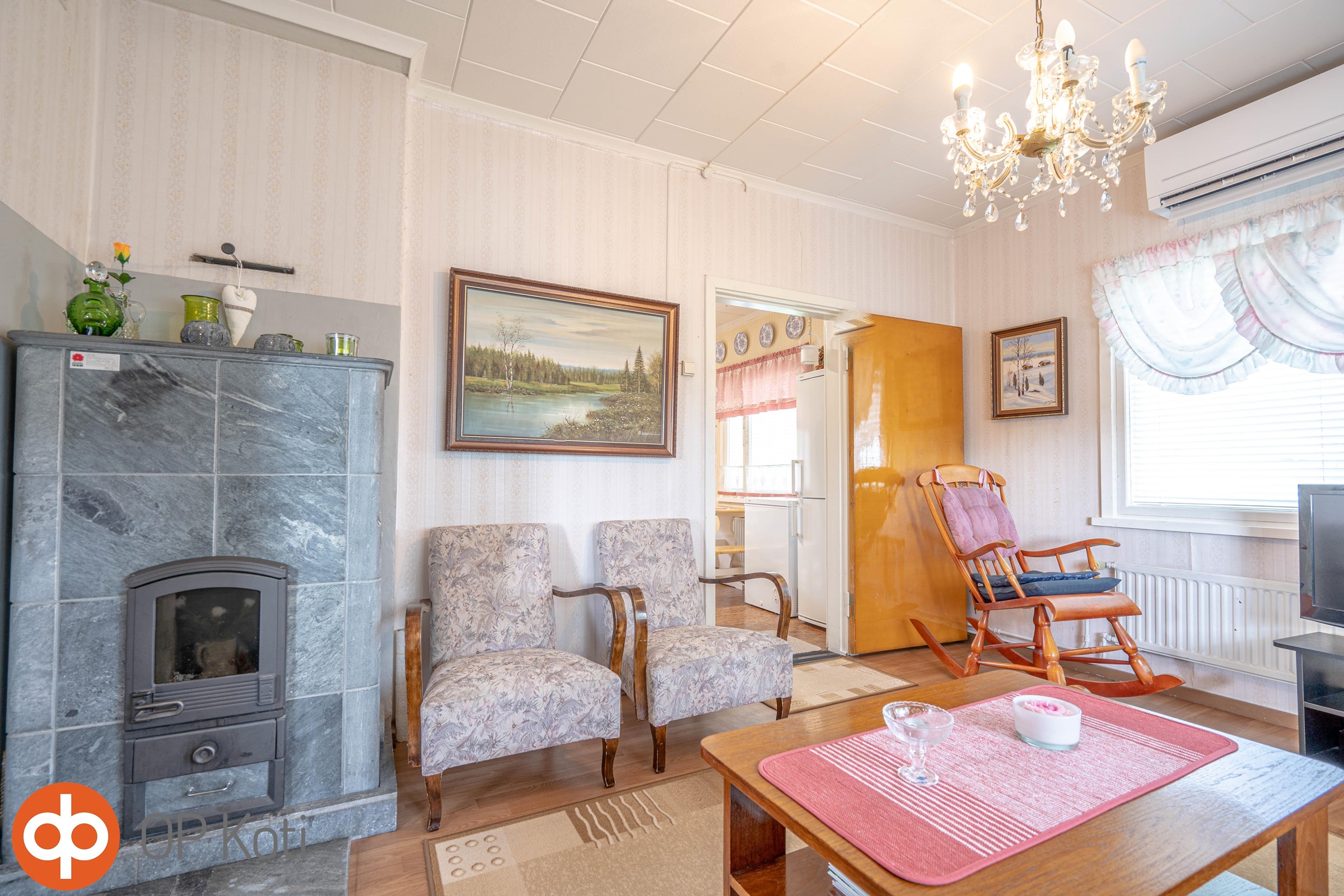 Asunnossa on kaksi makuuhuonetta, keittiö, olohuone, kylpyhuone, sauna sekä erillinen vessa. Toinen makuuhuone sijaitsee yläkerrassa. Lisäksi kellari. Talo on pidetty hyvin ja se on ikäisekseen siistissä kunnossa.