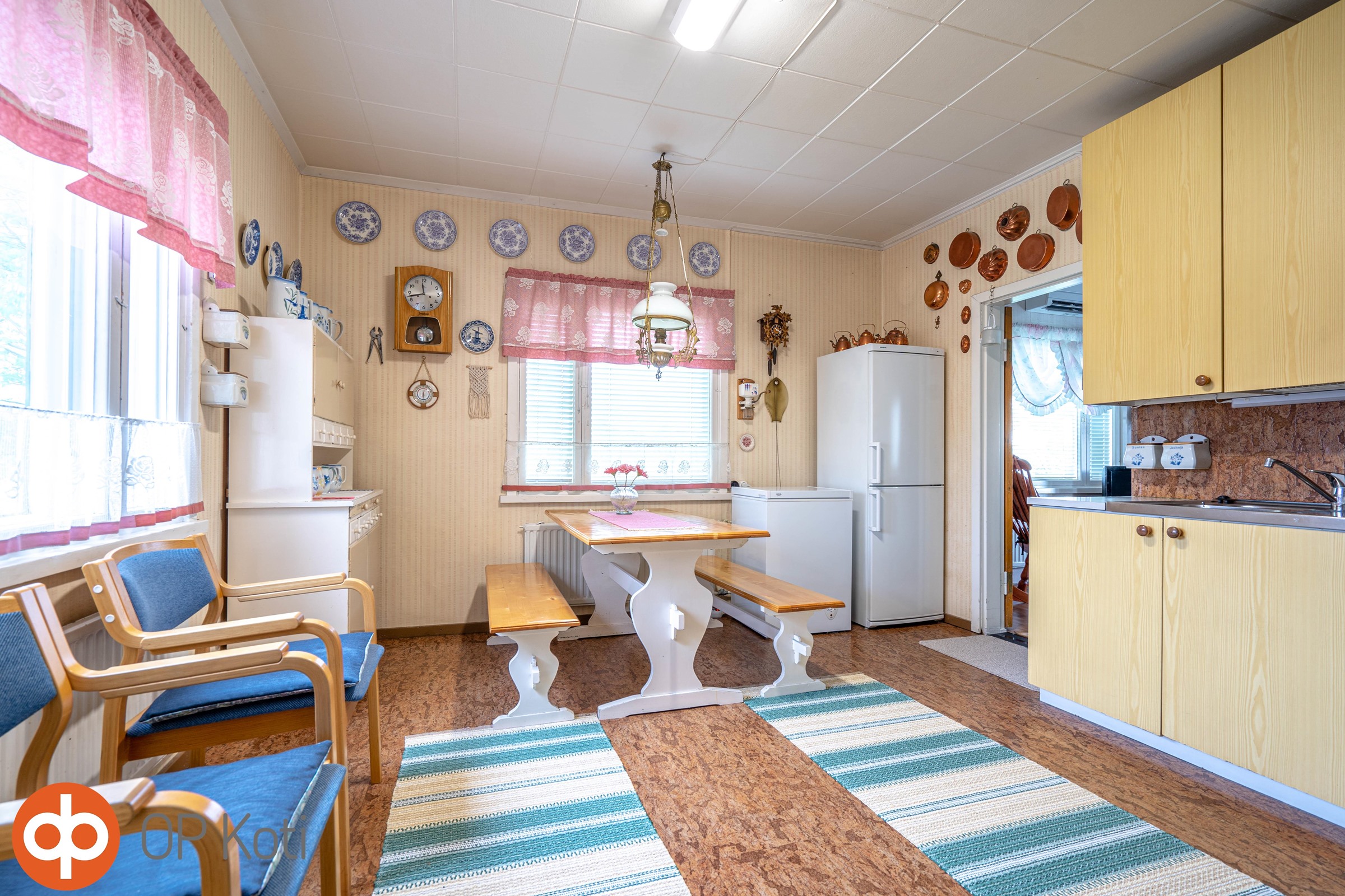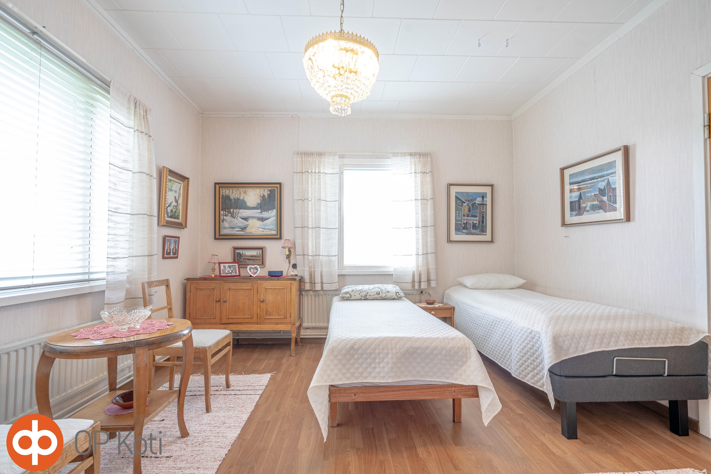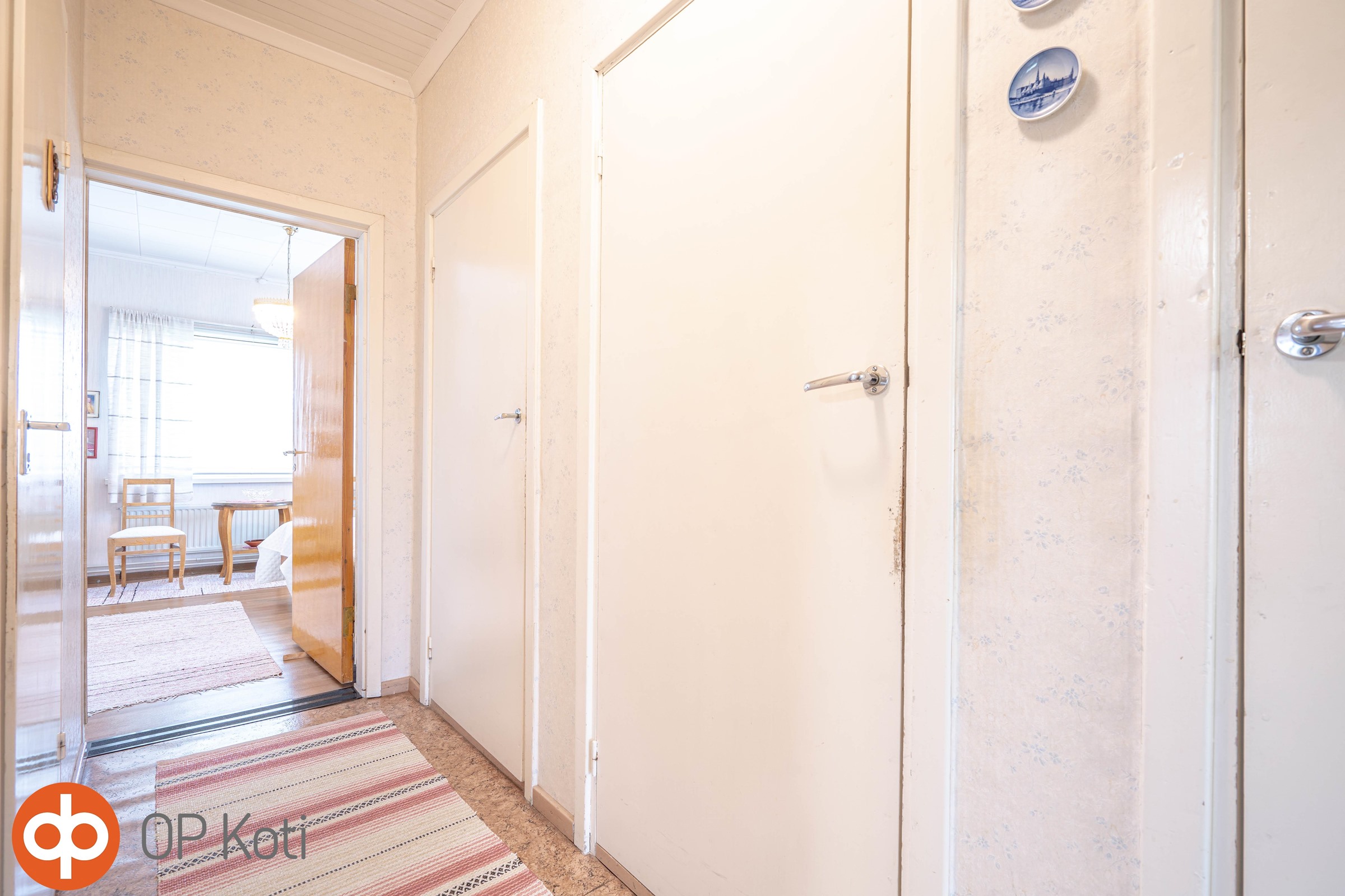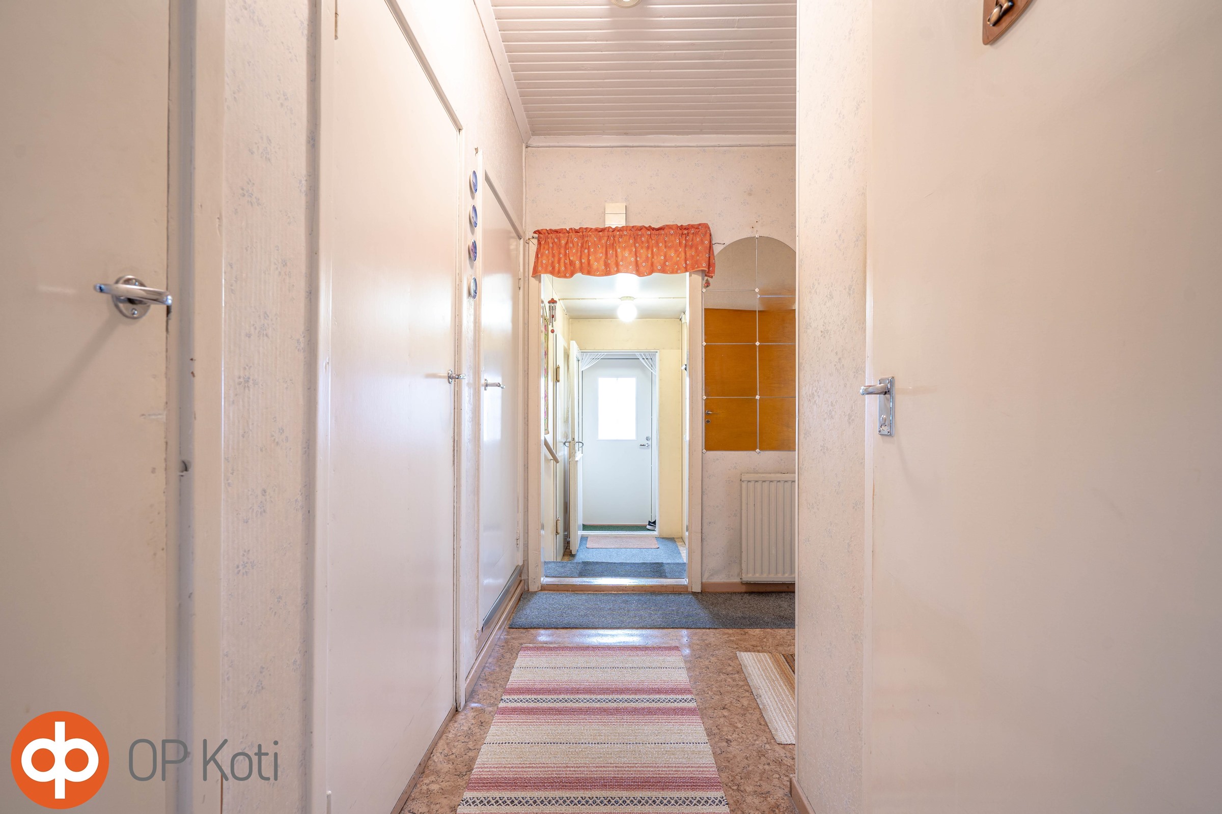 Asunnossa on kaksi makuuhuonetta, keittiö, olohuone, kylpyhuone, sauna sekä erillinen vessa. Toinen makuuhuone sijaitsee yläkerrassa. Lisäksi kellari. Talo on pidetty hyvin ja se on ikäisekseen siistissä kunnossa.
