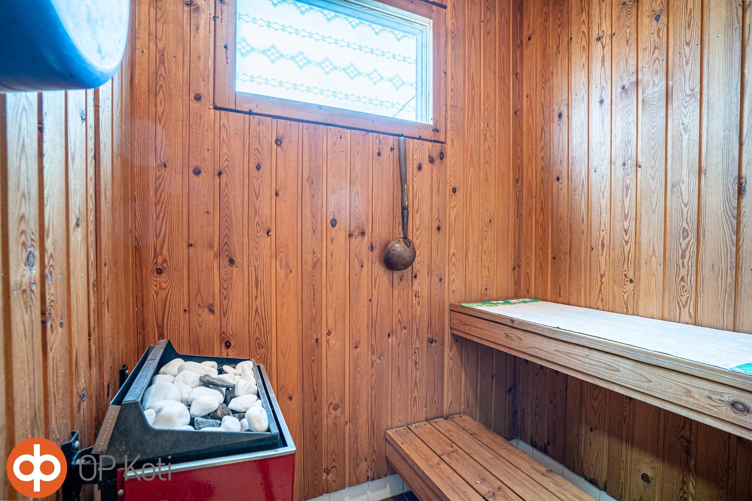 - Sauna, sähkökiuas, kylpyhuone, suihku, pesukoneliitäntä, kiinteät valaisimet. Istuma-allas