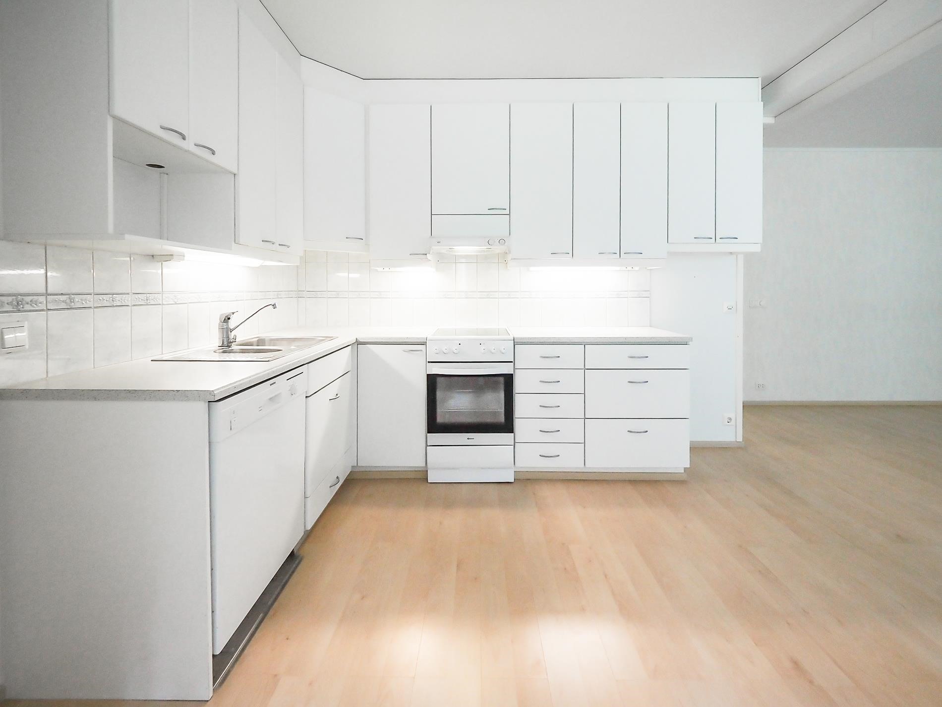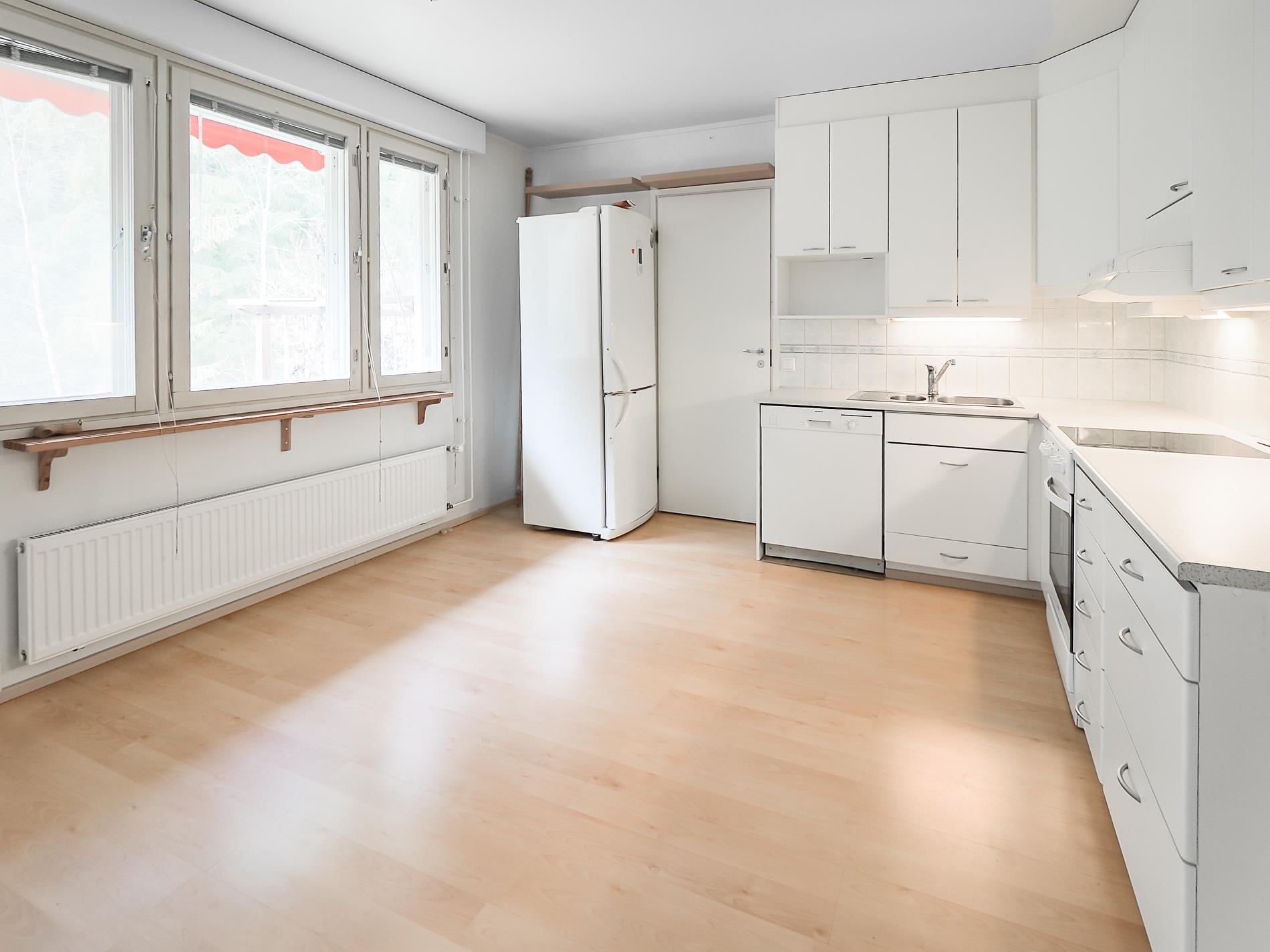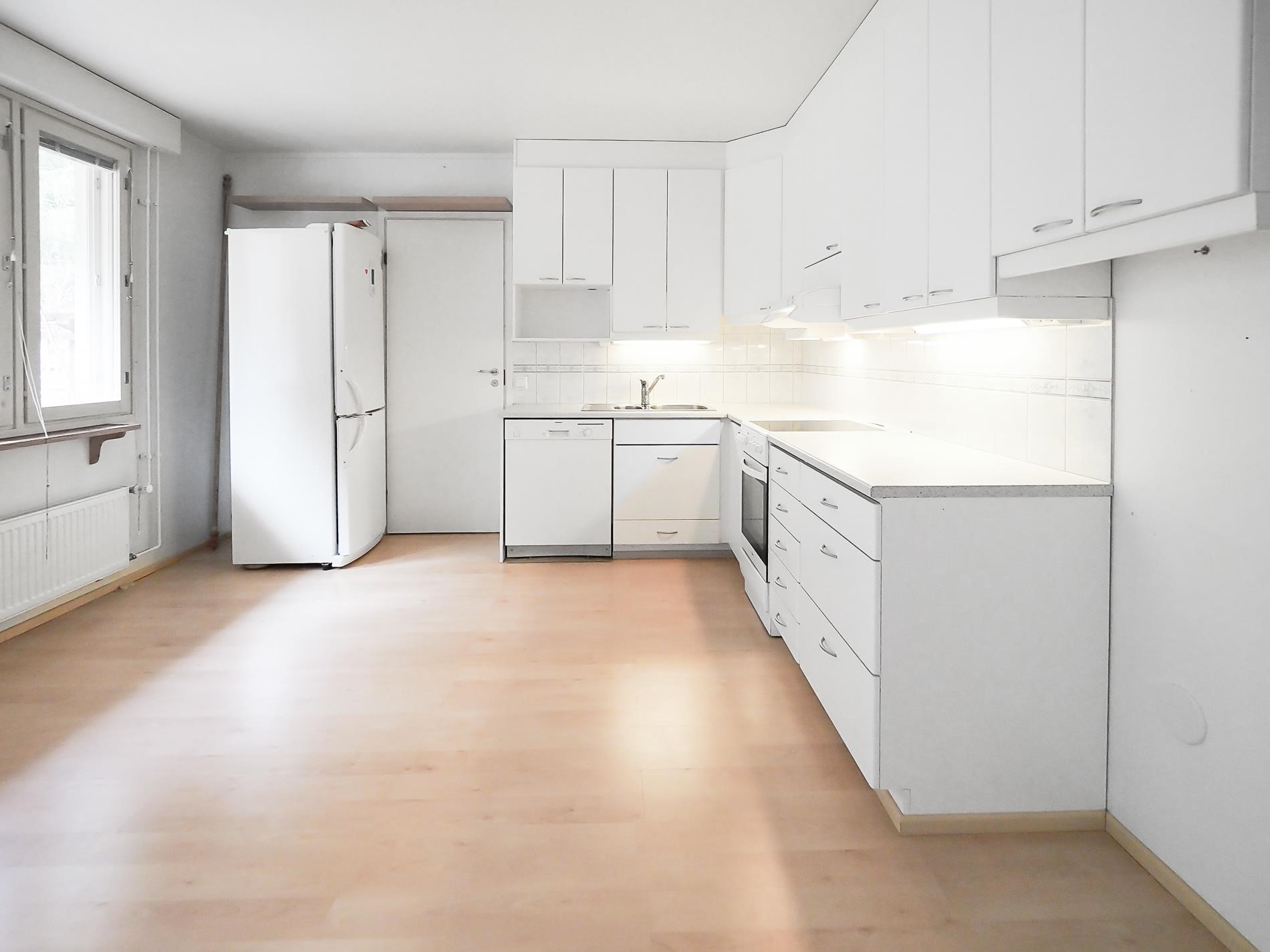 - Jääkaappipakastin, induktioliesi v.2015, liesituuletin, astianpesukone, kiinteät valaisimet.