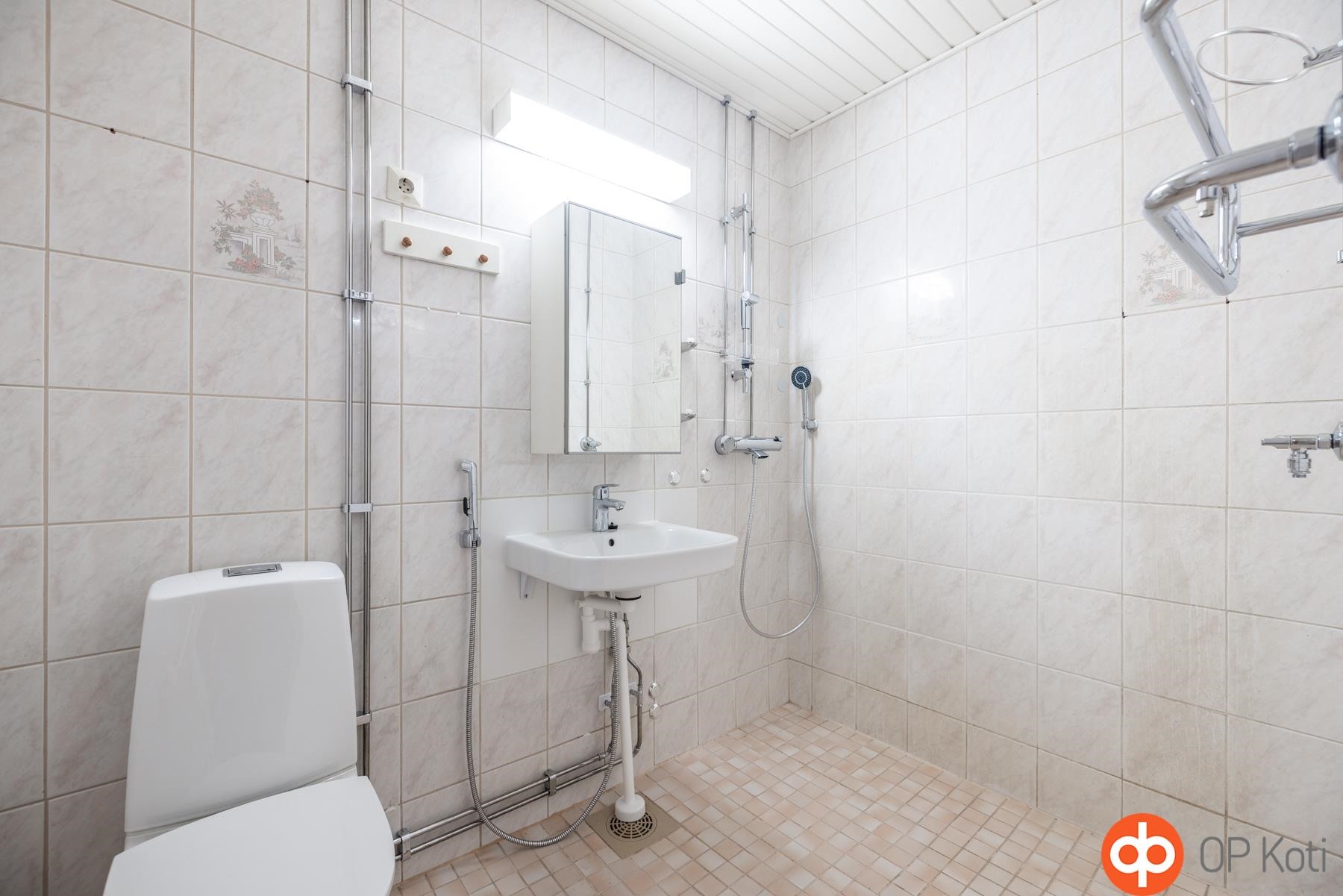 - Kylpyhuone, suihku, pesukoneliitäntä, kiinteät valaisimet.