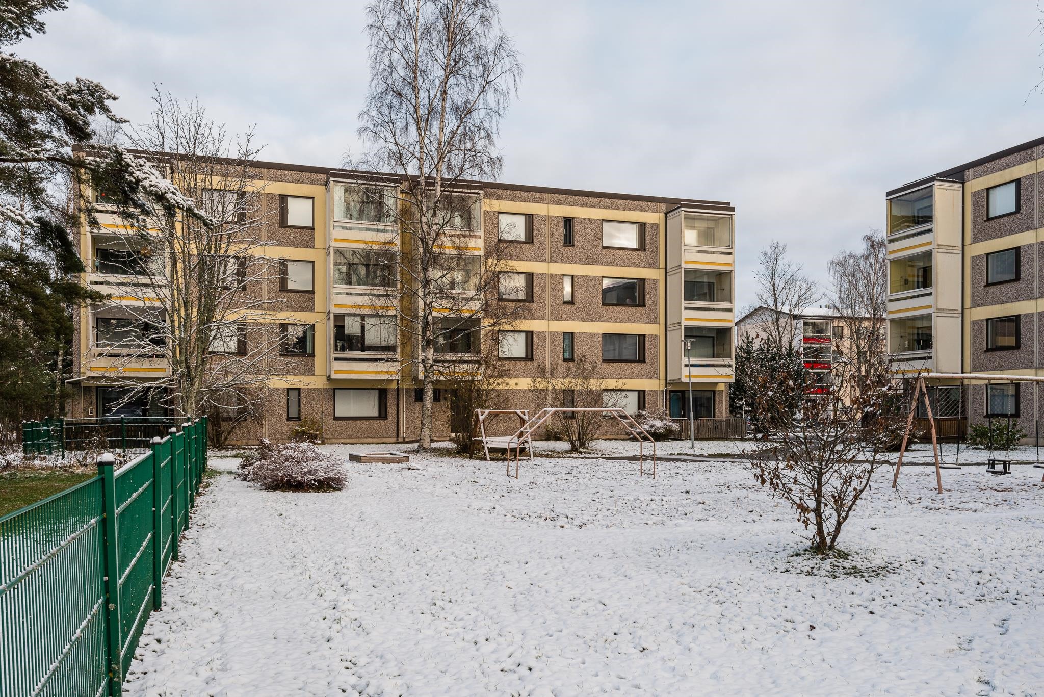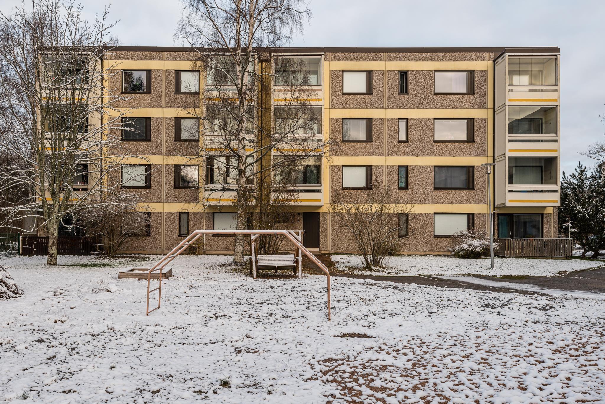 Kolmannen kerroksen siistikuntoinen läpitalon asunto Pormestarinluodossa. Asunnossa lasitettu parveke.