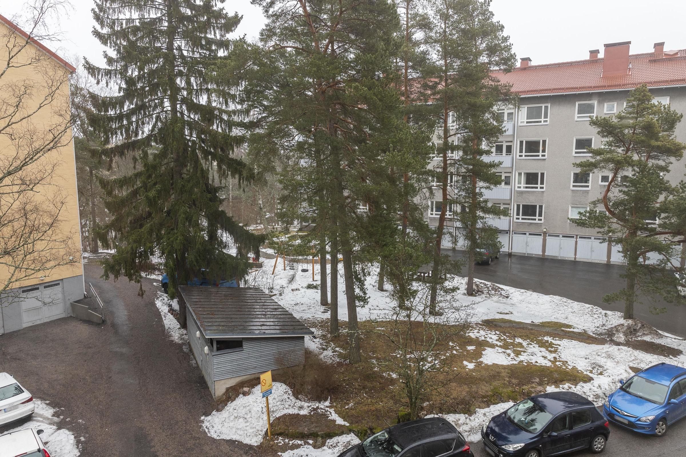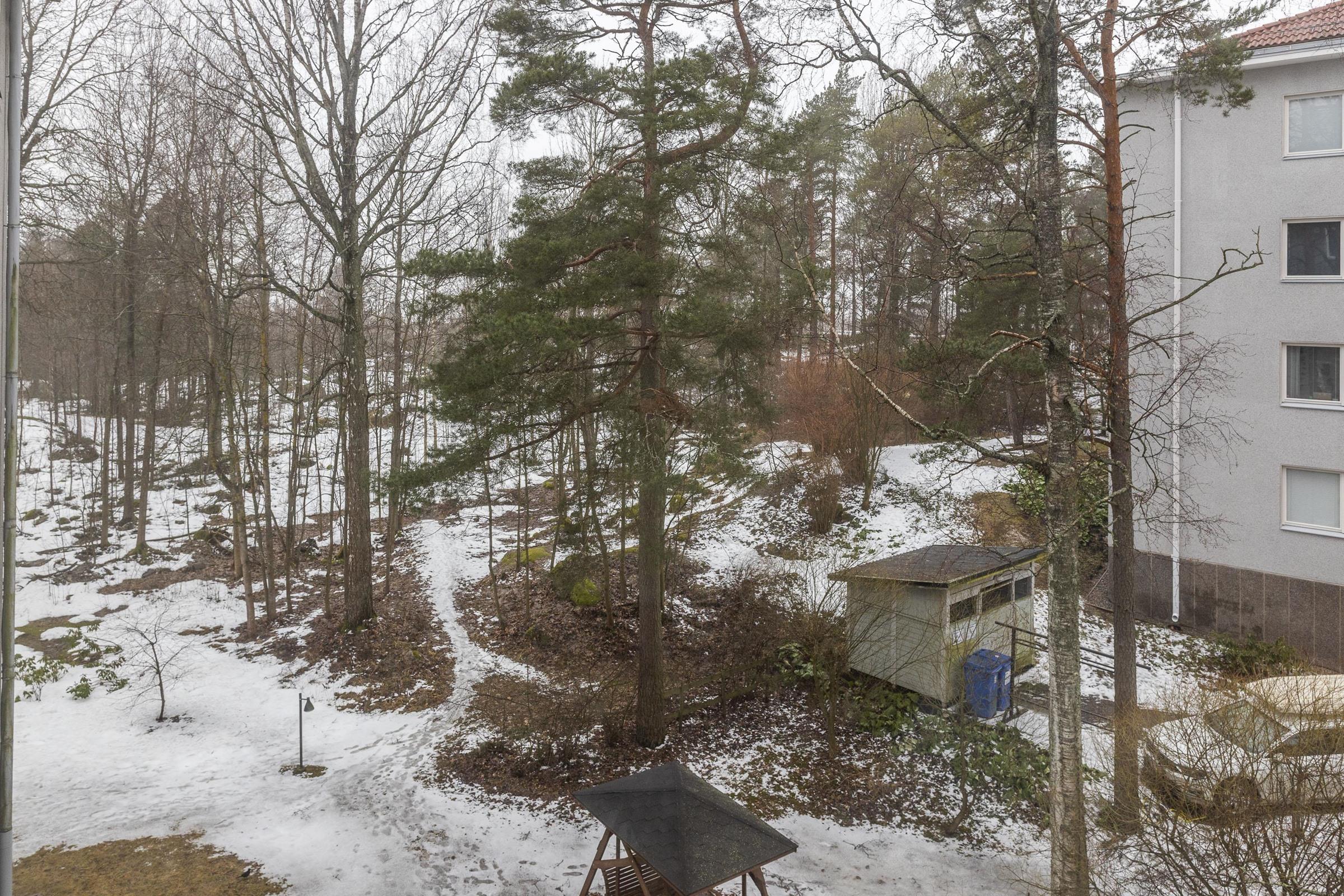 - Länsi/luode/pohjoinen, puistomaiset näkymät yhtiön pihaan