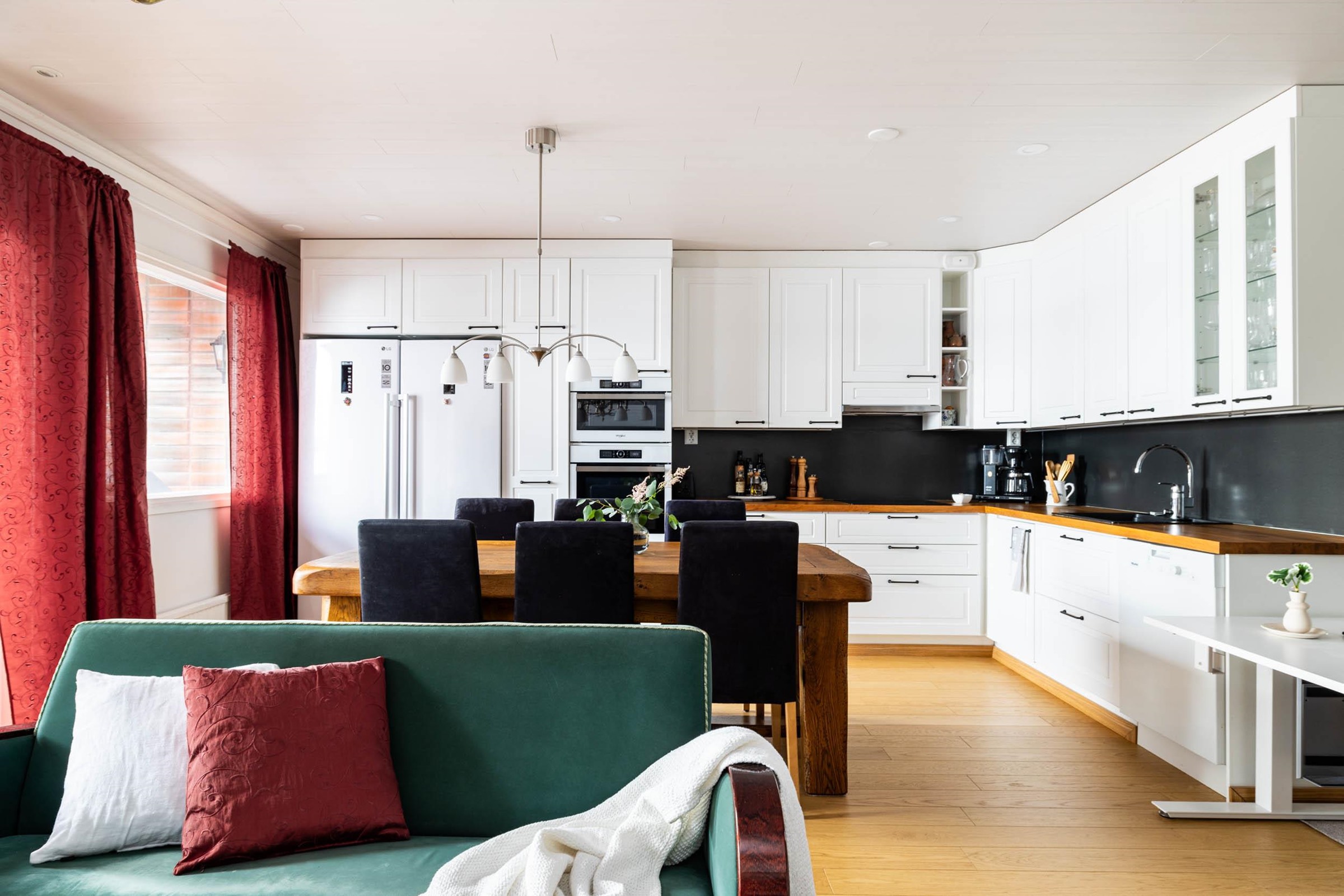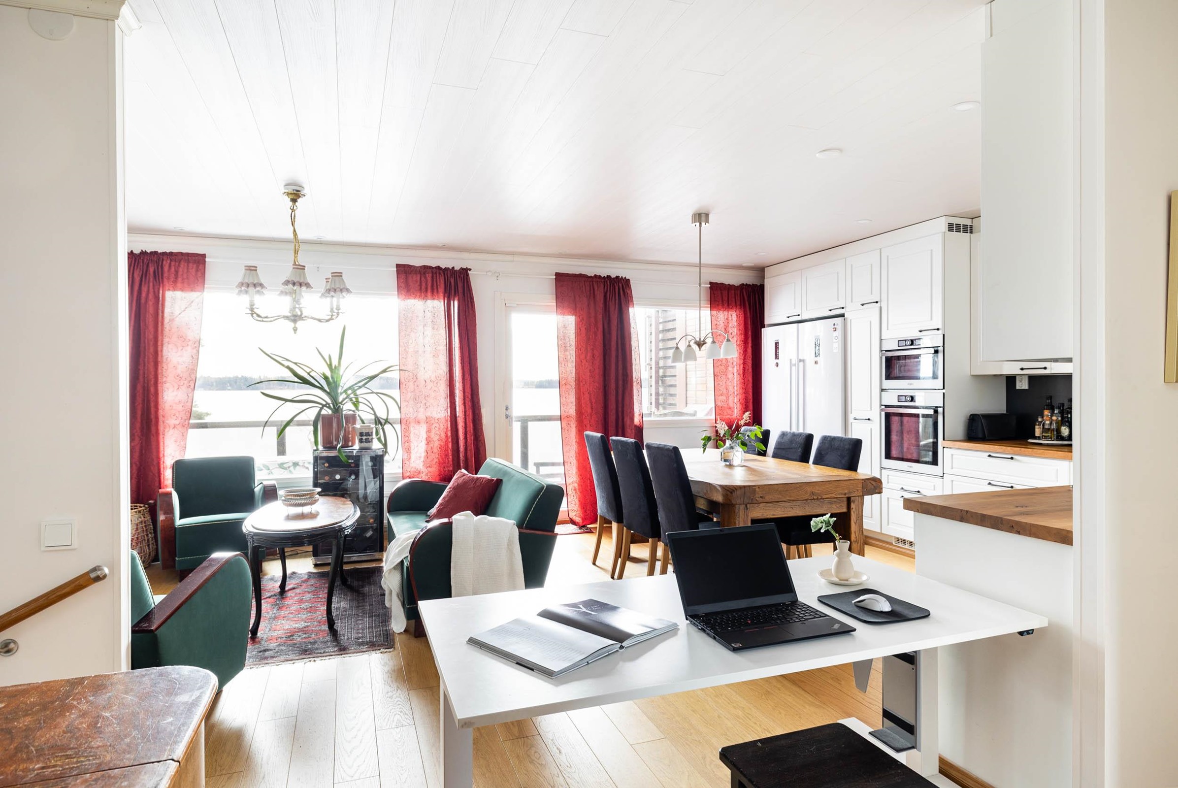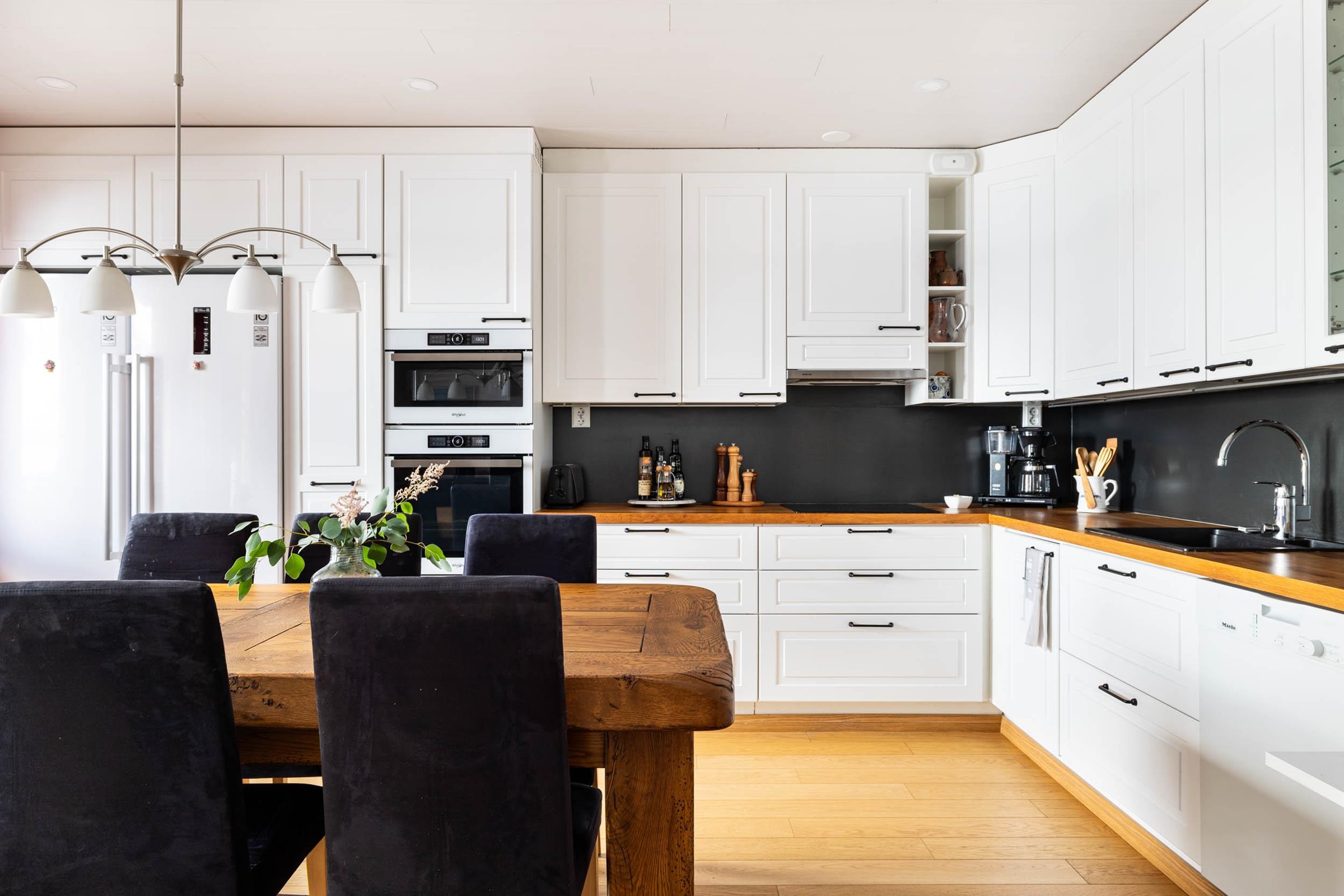 - Jääkaappi 2020, pakastekaappi 2020, induktioliesi, liesituuletin, mikroaaltouuni ja uuni integroitu, astianpesukone, kaapistot, kiinteät valaisimet. Keittiö uusittu kokonaan 2020, Charmia-keittiö.