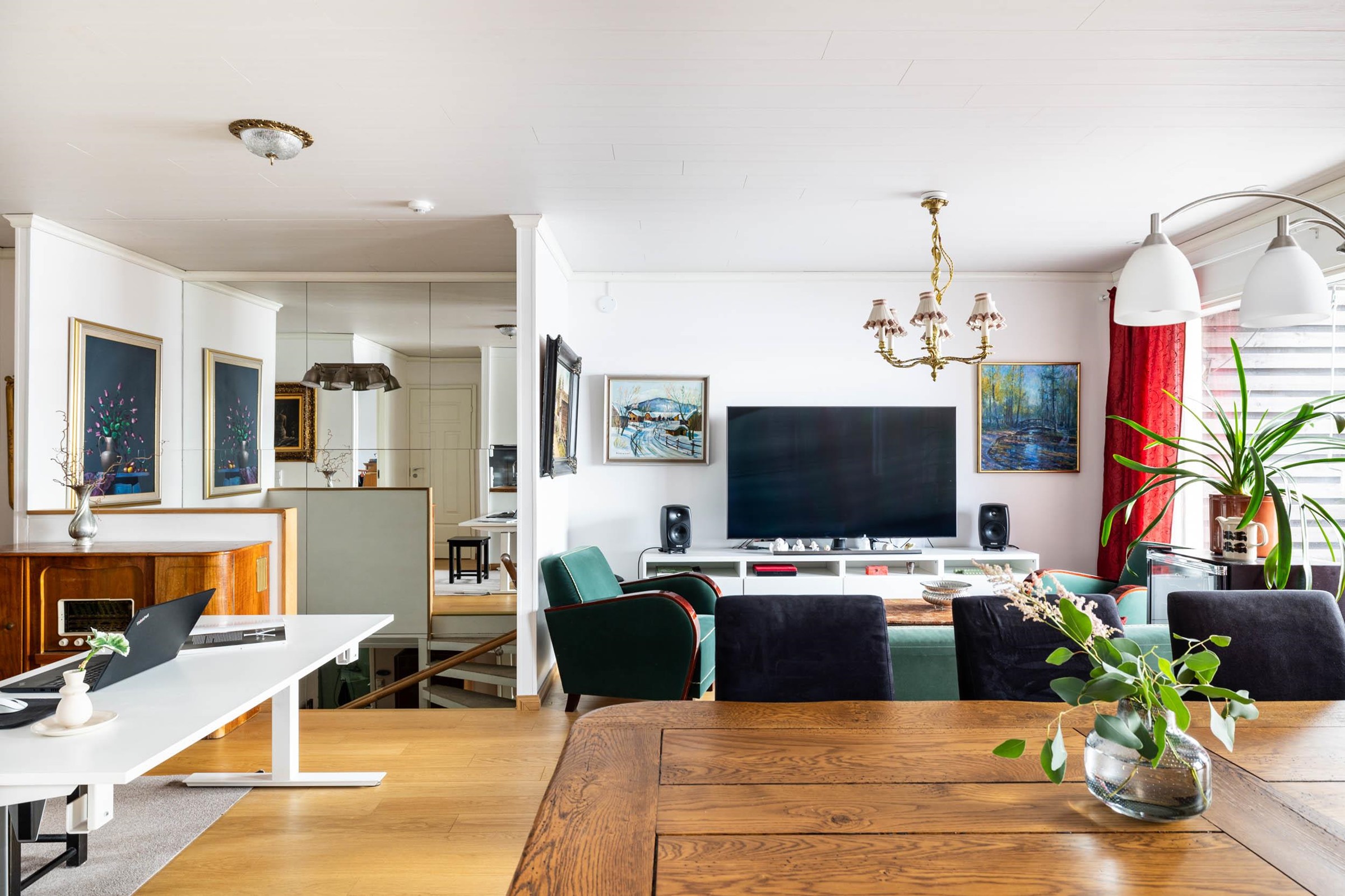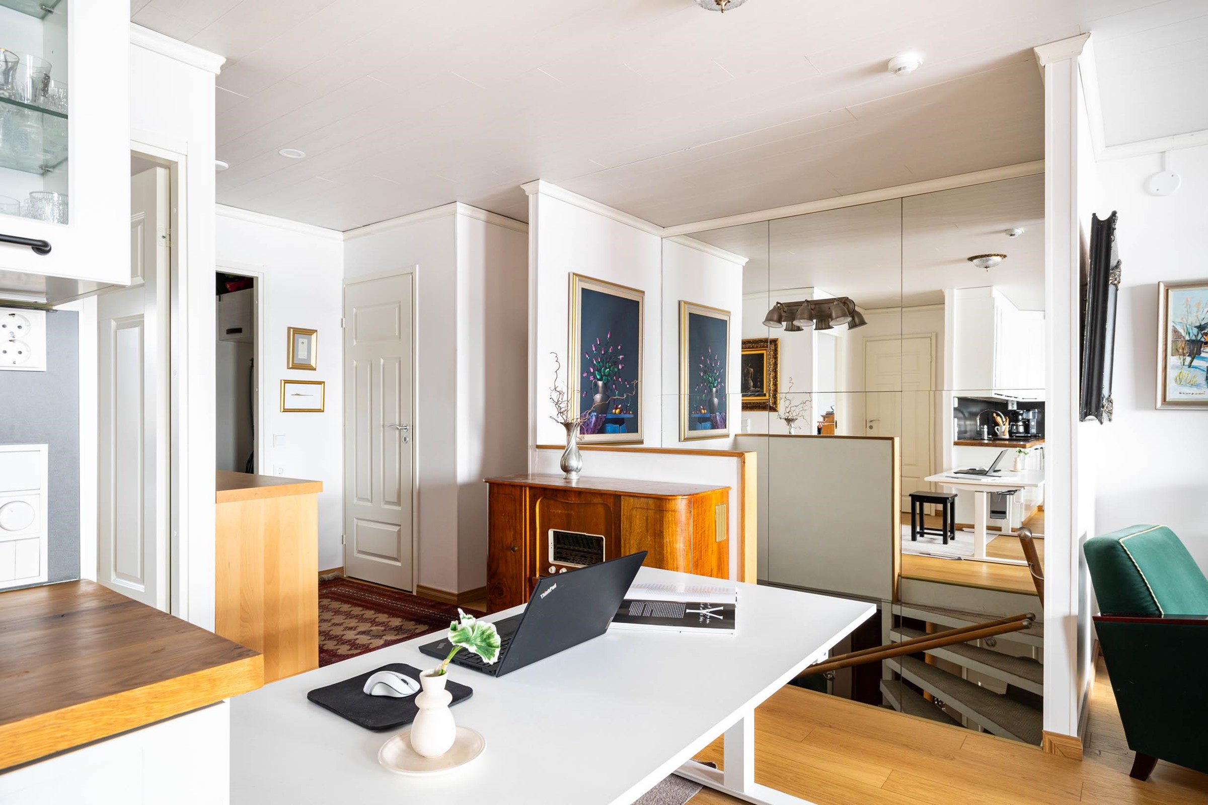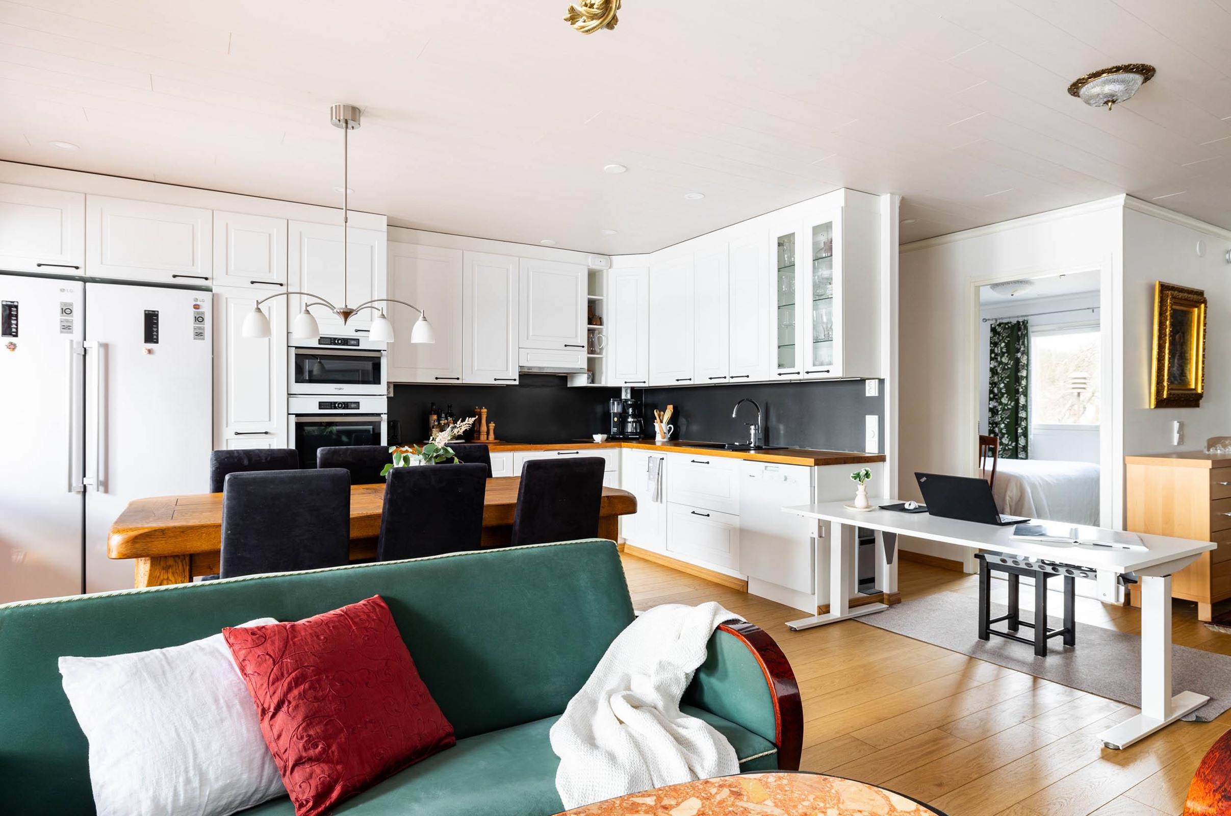 - Jääkaappi 2020, pakastekaappi 2020, induktioliesi, liesituuletin, mikroaaltouuni ja uuni integroitu, astianpesukone, kaapistot, kiinteät valaisimet. Keittiö uusittu kokonaan 2020, Charmia-keittiö.
