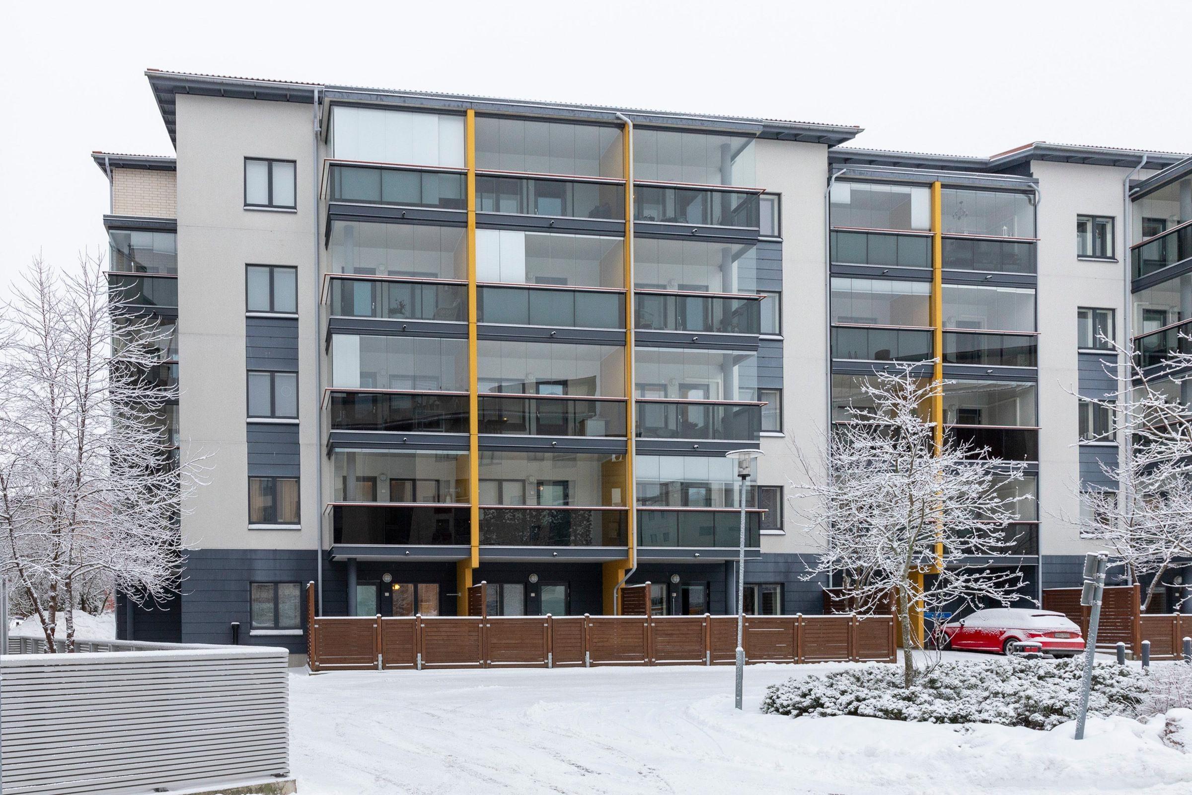 Tilava kolmio on hissitalon toisessa kerroksessa. Huoneisto sijaitsee talon päätyasuntona, joten ikkunoita on kodissa kolmeen ilmansuuntaan. Lasitettu parveke lounaaseen. Talo sijaitsee omalla tontilla.