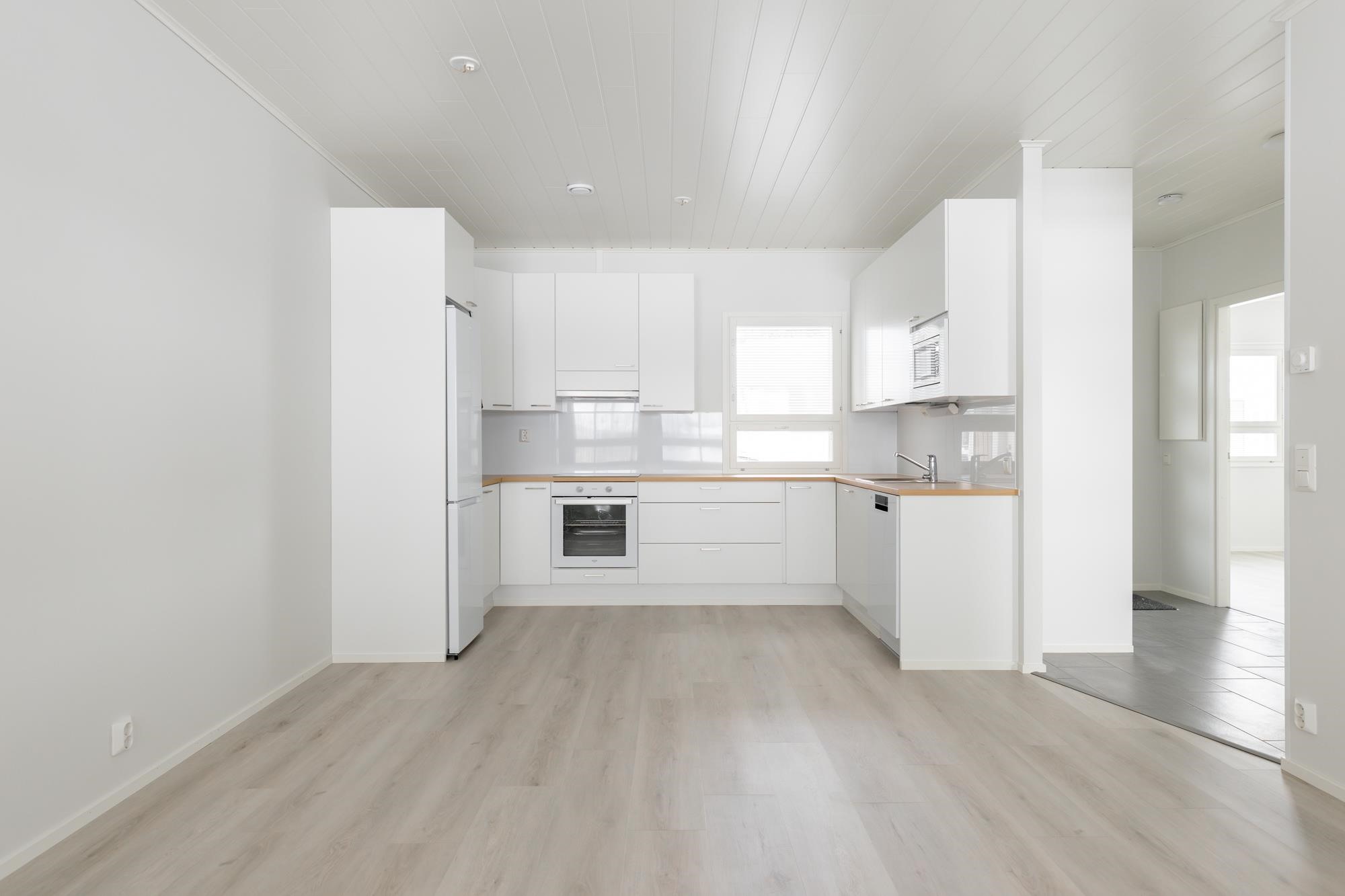 - Jääkaappipakastin, erillisuuni, induktioliesi, mikroaaltouuni, astianpesukone, kiinteät valaisimet.