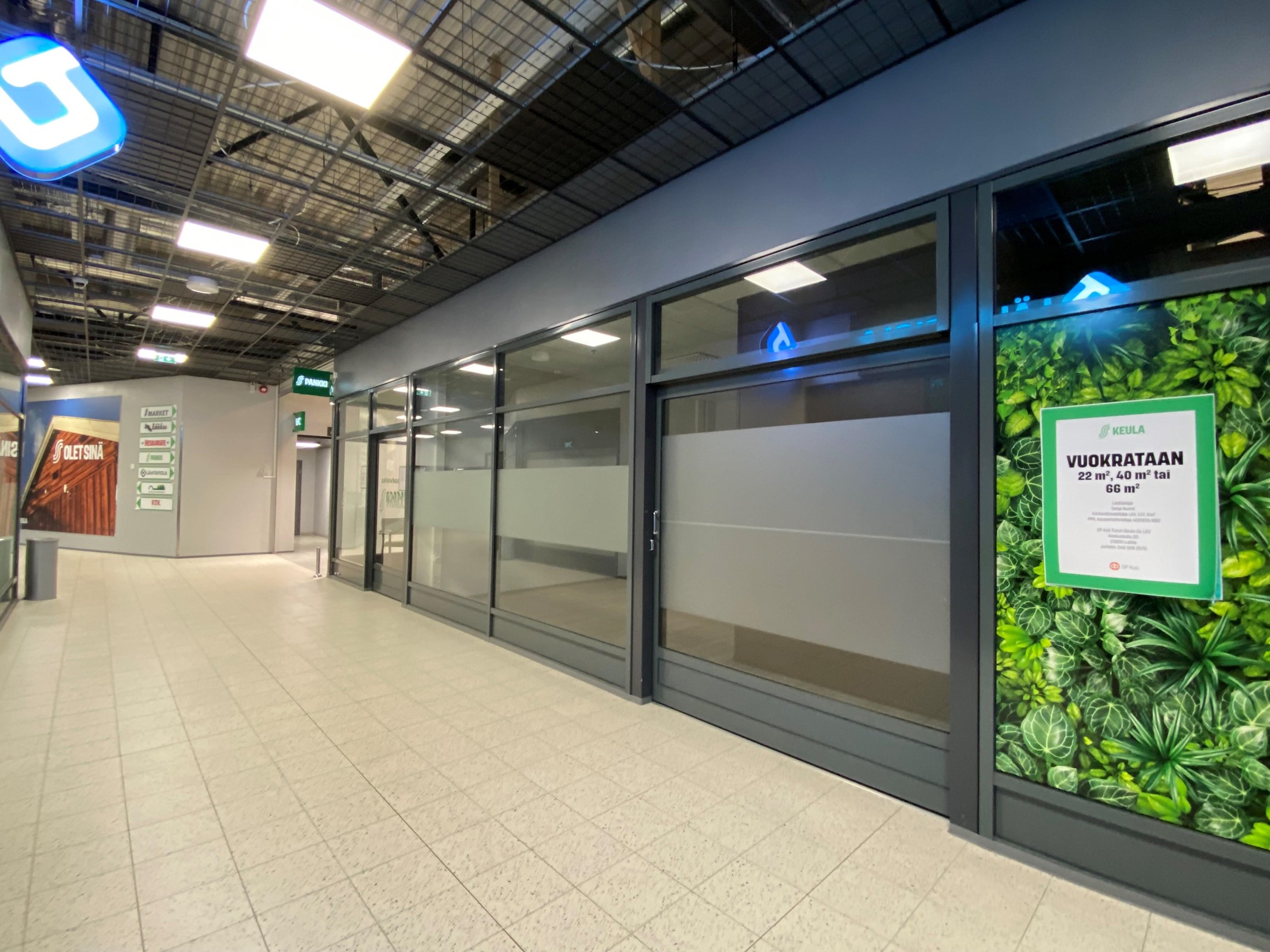 Liikekeskuksen laajennusosassa, joka valmistunut v. 2021.