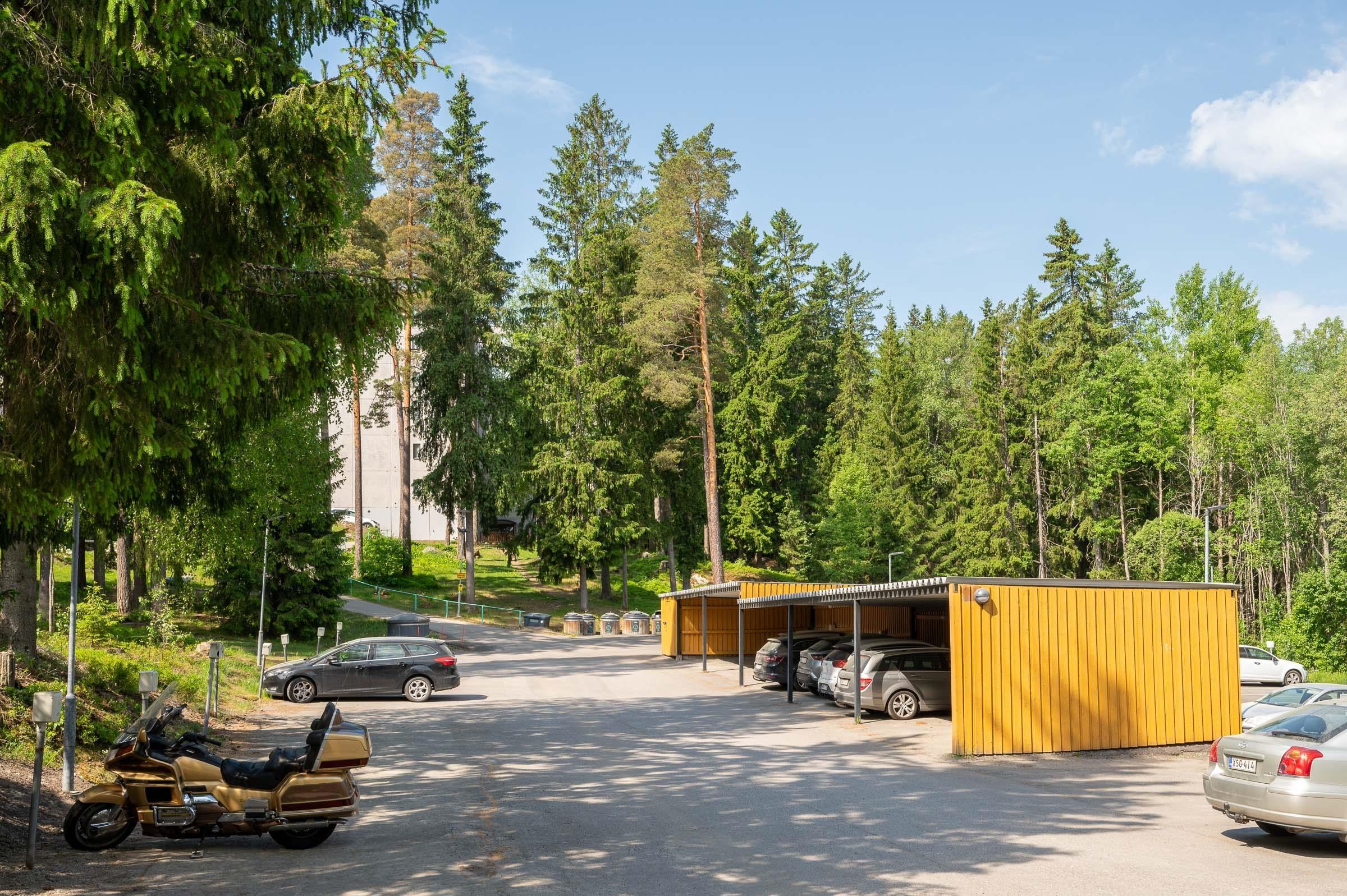 Asunnon lasitetulle parvekkeelle on käynti kahdesta huoneesta ja tarjolla on luonnonläheiset ja metsäiset näkymät yli Rastaanpolun ja Kapponpuiston. Auton säilytystä varten on autokatospaikka.