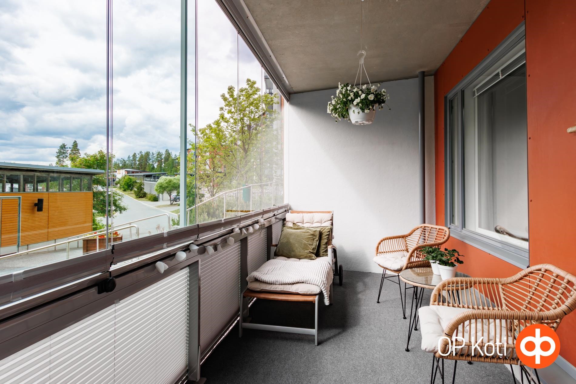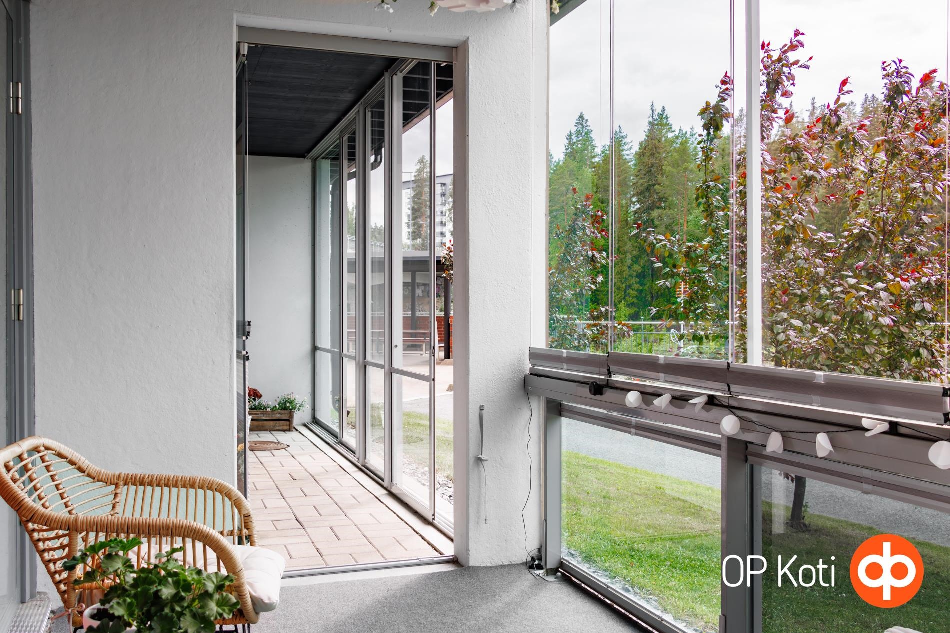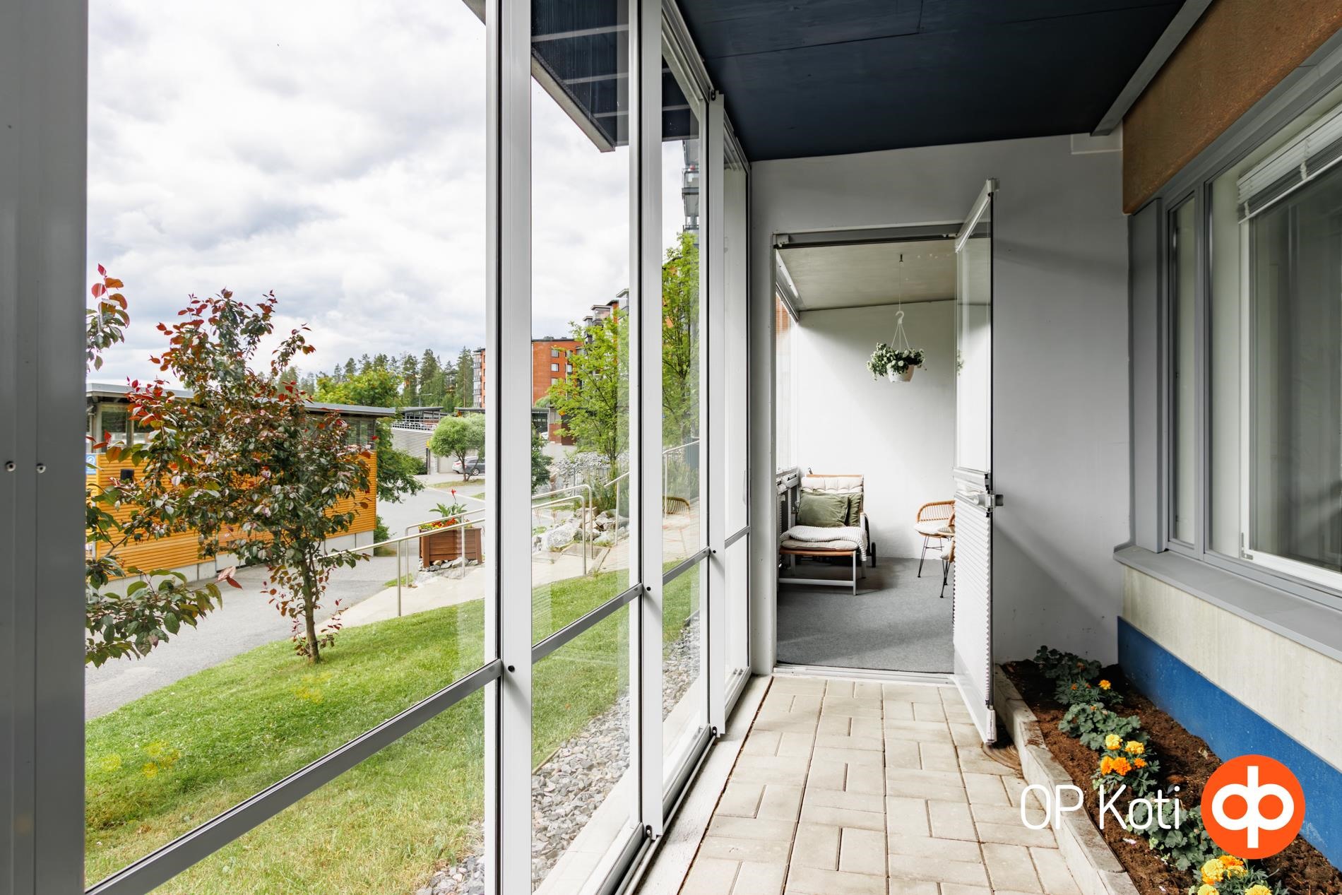 Ainutlaatuista tässä kodissa on, että lasitetun parvekkeen lisäksi on myös lasitettu terassi. Lasitetulta terassilta voit kulkea esteettömästi suoraan rantaan ja rakentaa vaikka oman hyötypuutarhasi - maisemat vaihtuvat vuodenaikojen mukana, mutta tunnelma pysyy ihanana ympäri vuoden.