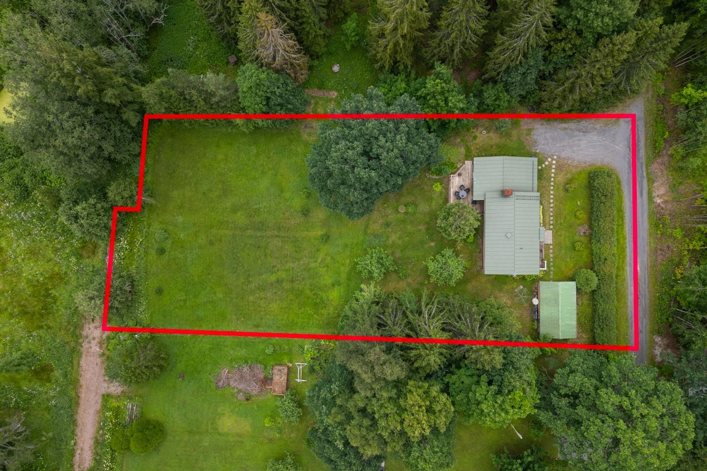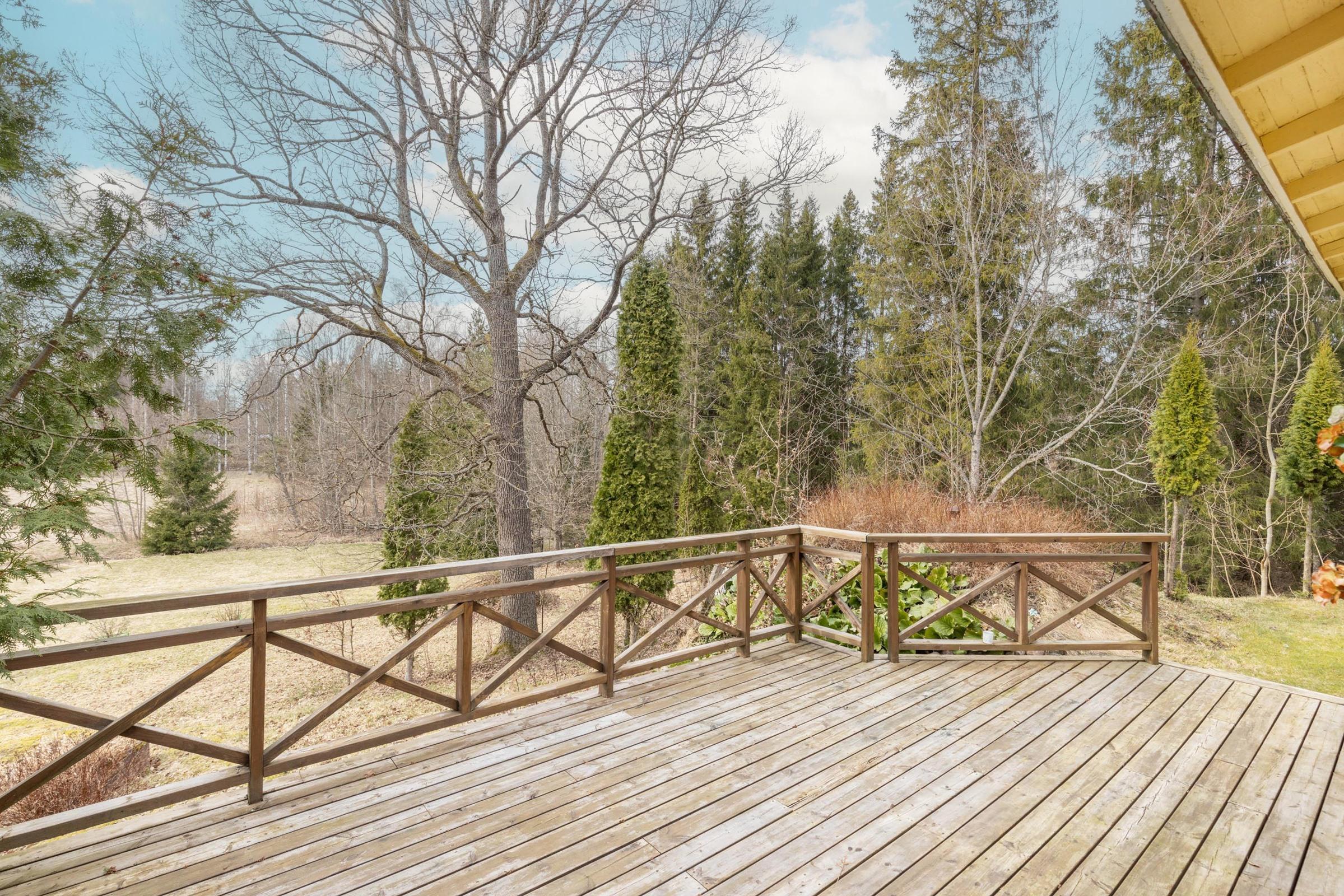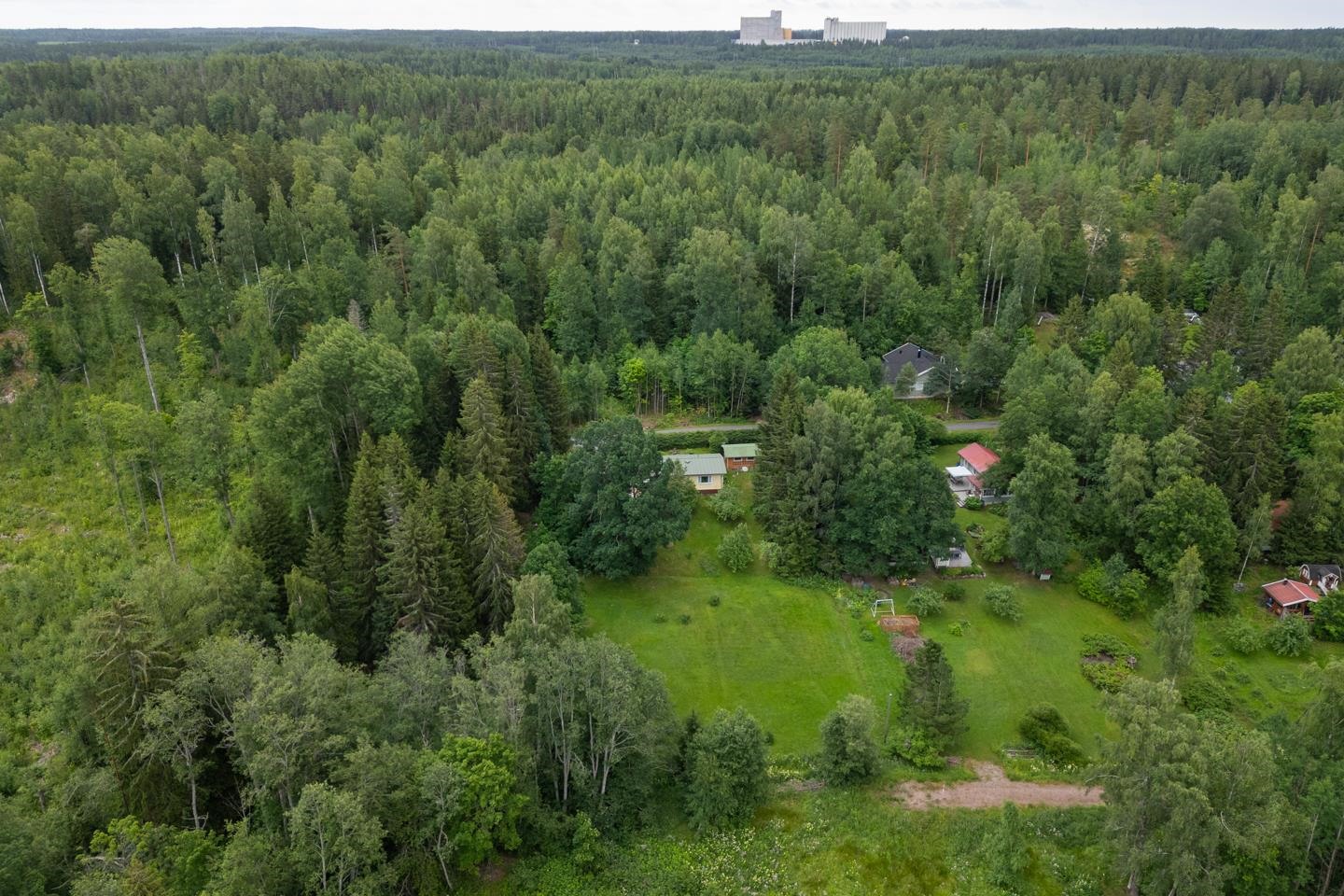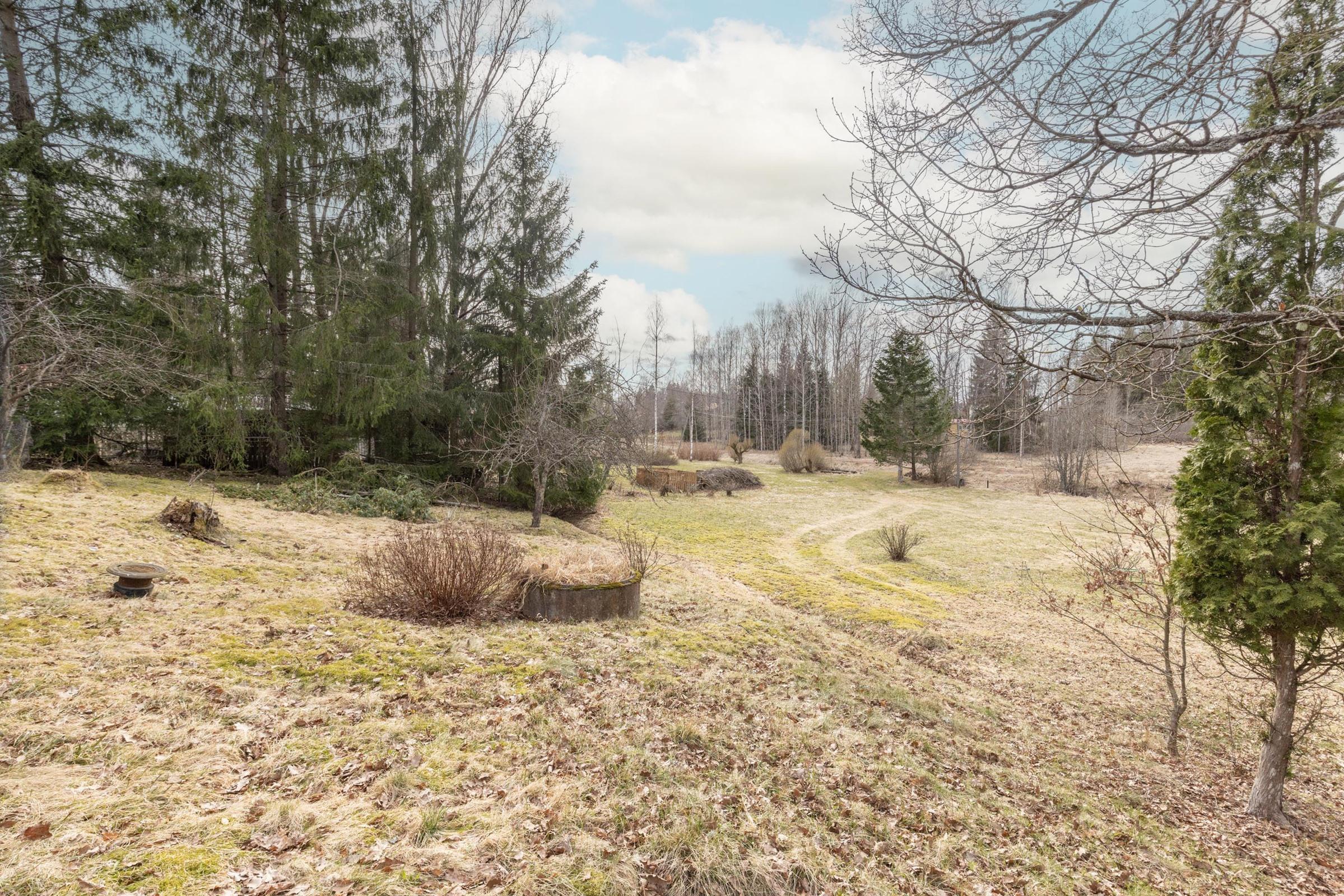 Kodin tontti koostuu kahdesta tilasta, yhteensä 0,497 hehtaaria, mikä mahdollistaa monenlaiset käyttötarkoitukset, kuten oman kasvimaailman perustamisen tai metsäisestä naapuritilasta omien polttopuiden hankkimisen. Pihan alaosa on leikattua niittyä, johon voi helposti luoda oman perunamaan tai viherkeitaan. Talon ympäristö on rauhallinen ja vehreä, ja sijainti päättyvän tien päässä takaa oman rauhan ja yksityisyyden.