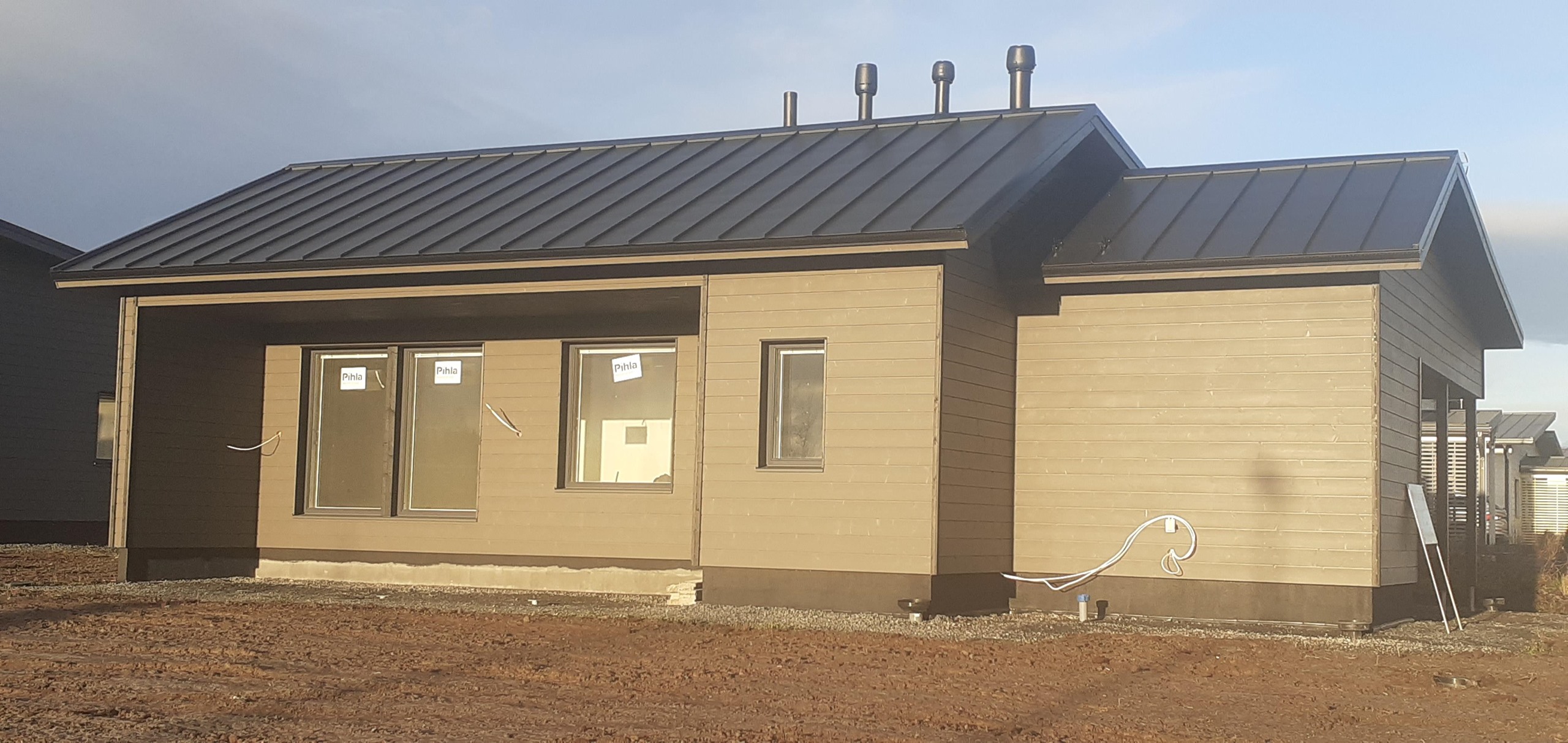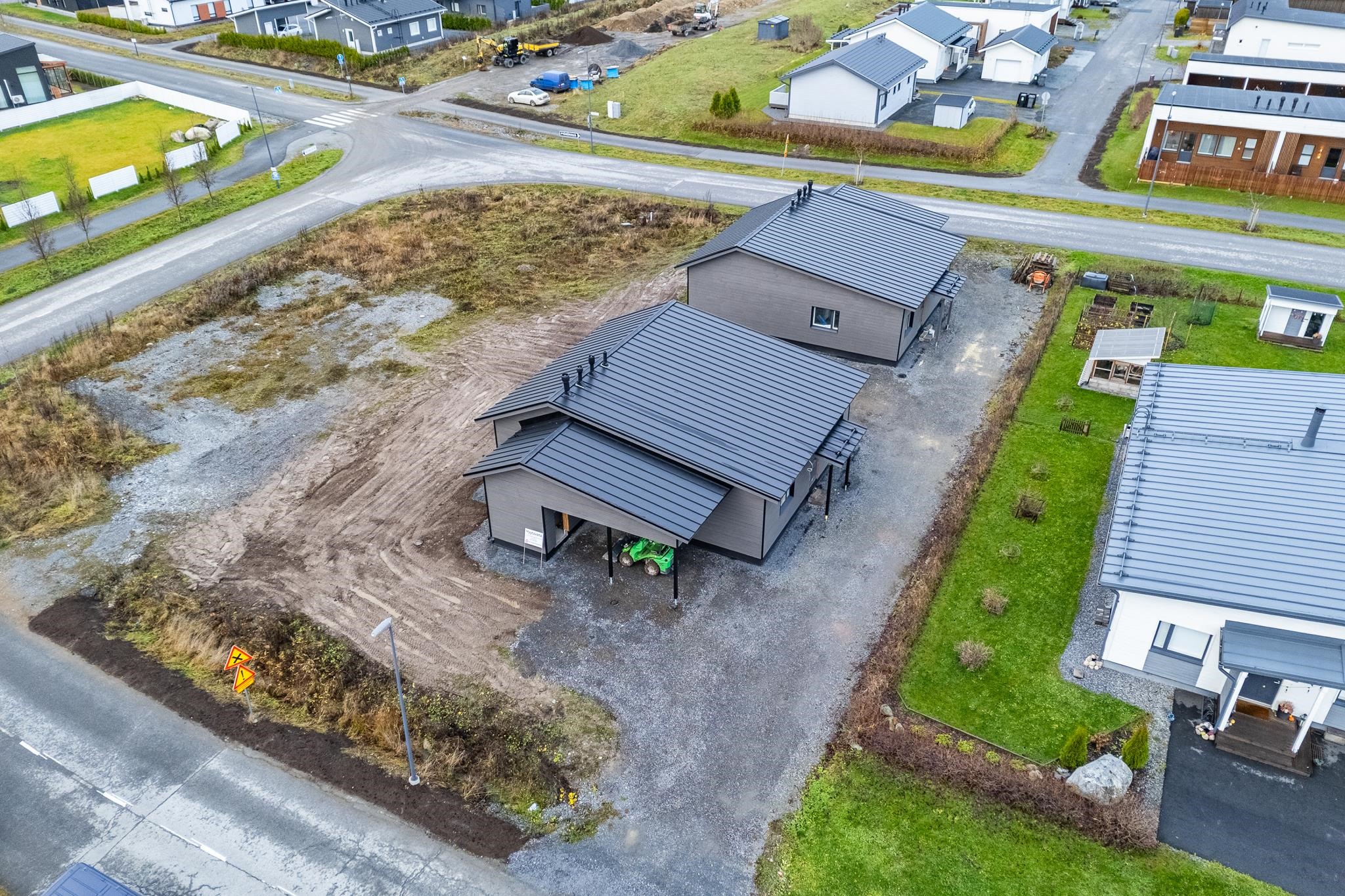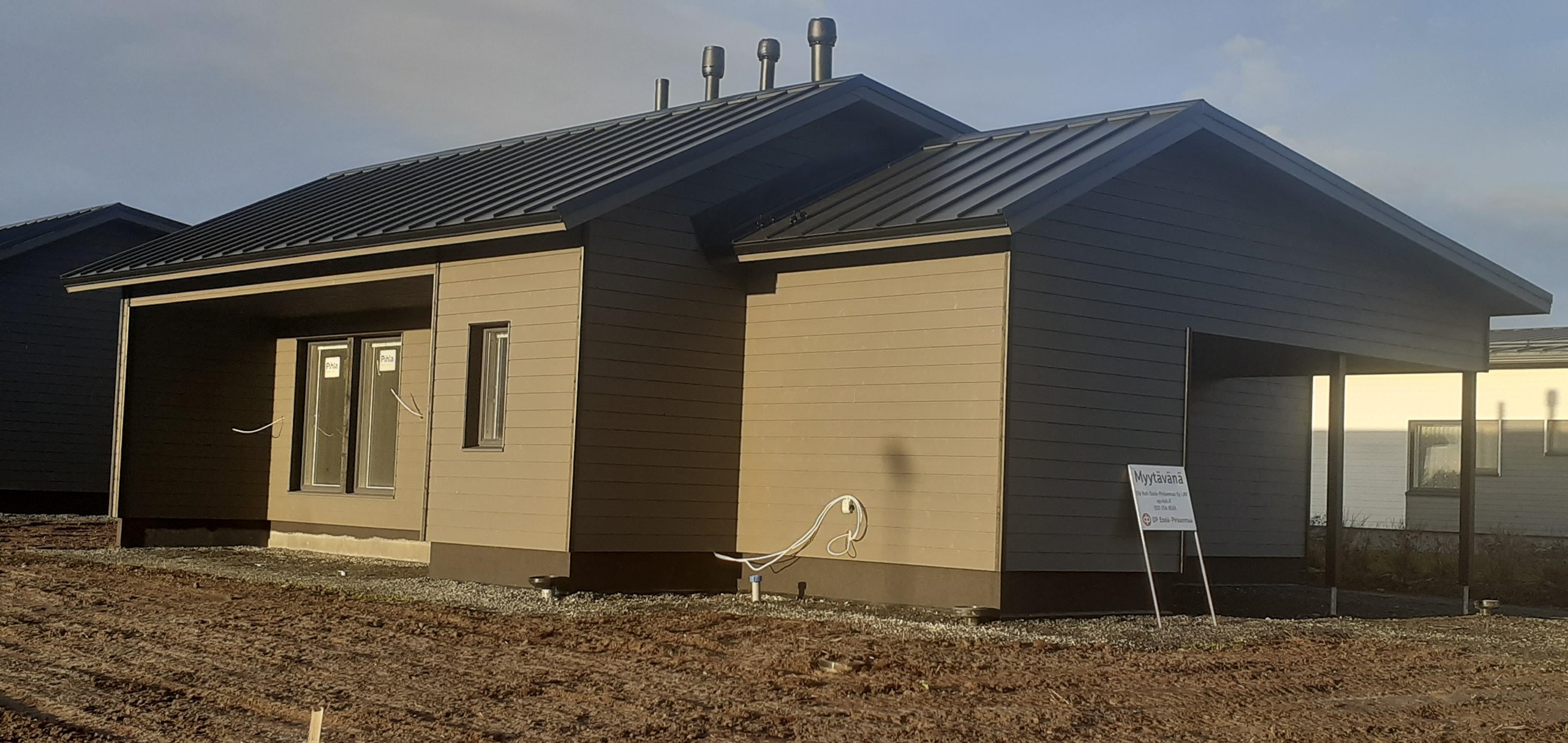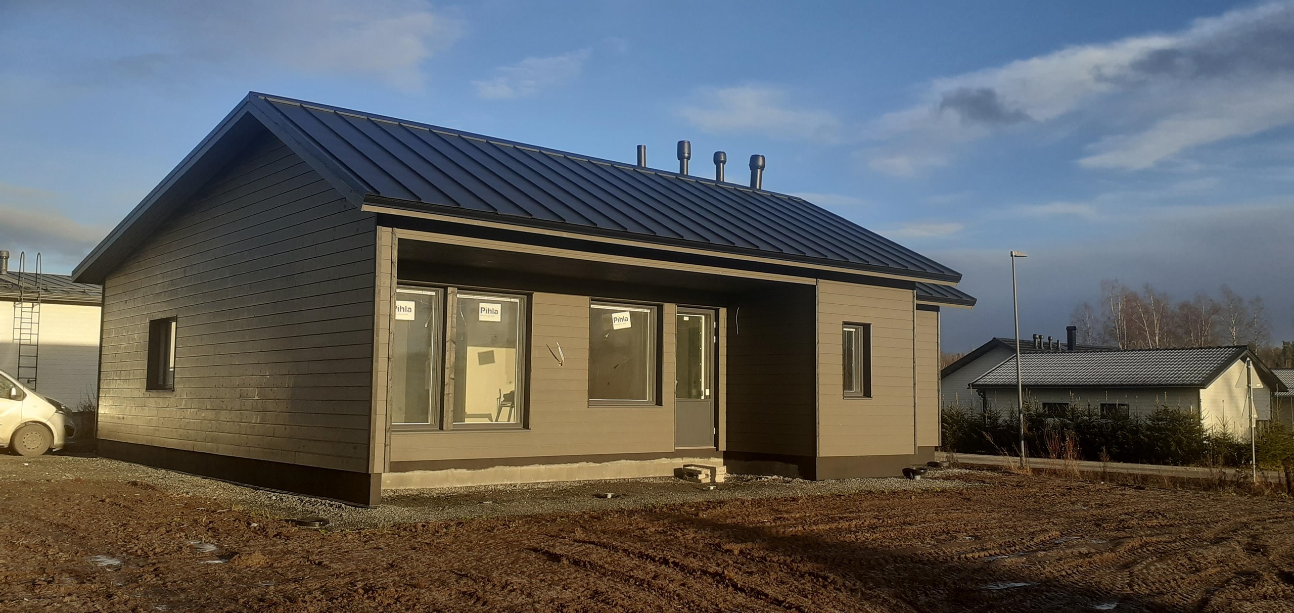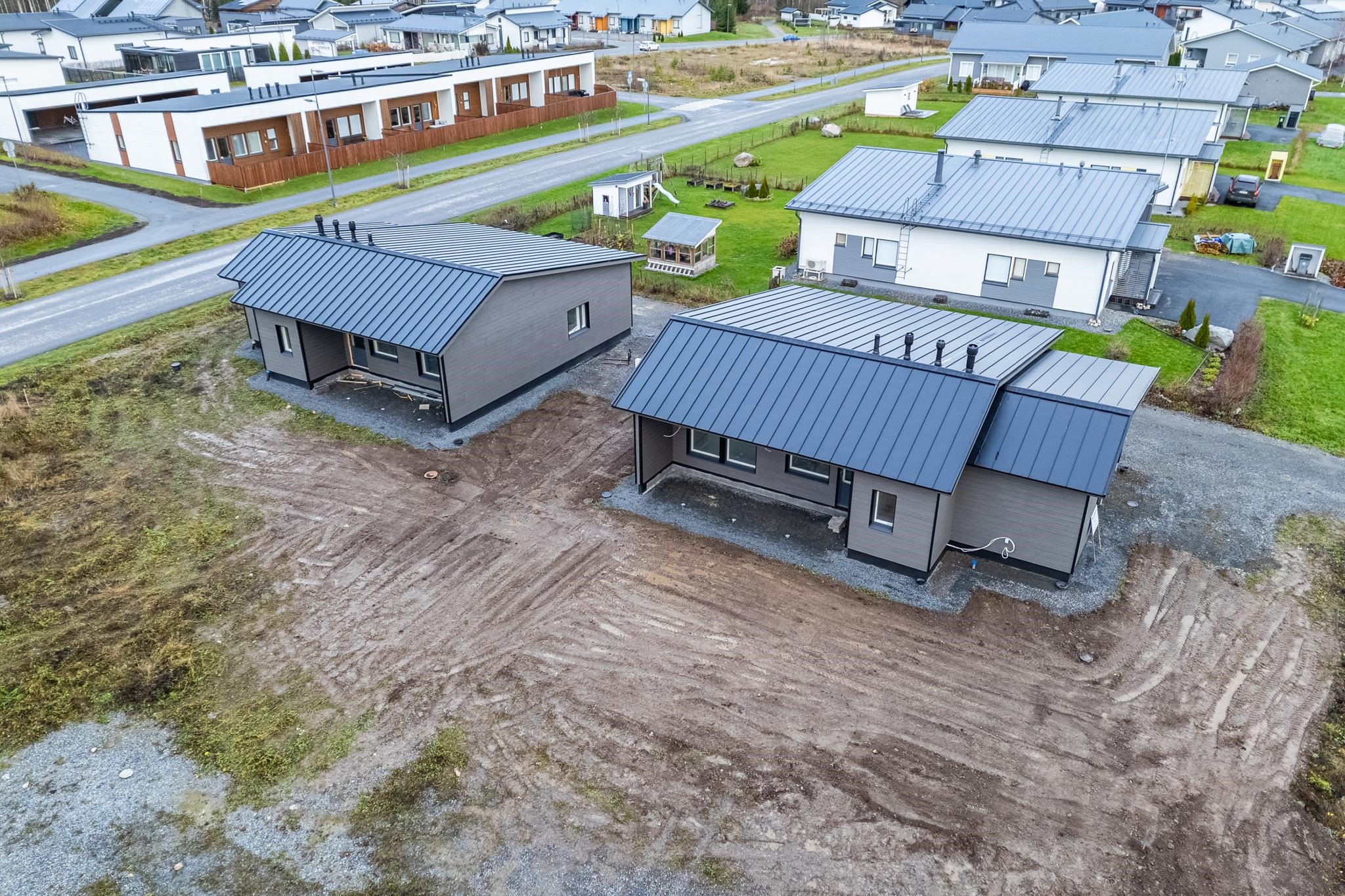 Tässä talossa on suuret ikkunapinnat jotka tuovat valoisuutta ja avaruutta huoneistoon. Keittiö sekä olohuone ovat käytännöllisesti yhtenäistä tilaa. Ajatuksella mietitty pohjaratkaisu. Kauttaaltaan tasokkaat materiaalit. Lämmitysmuotona energiatehokas vesi-ilmalämpöpumppu. Talon päädyssä autokatos sekä talojen välissä yksi autopaikka.