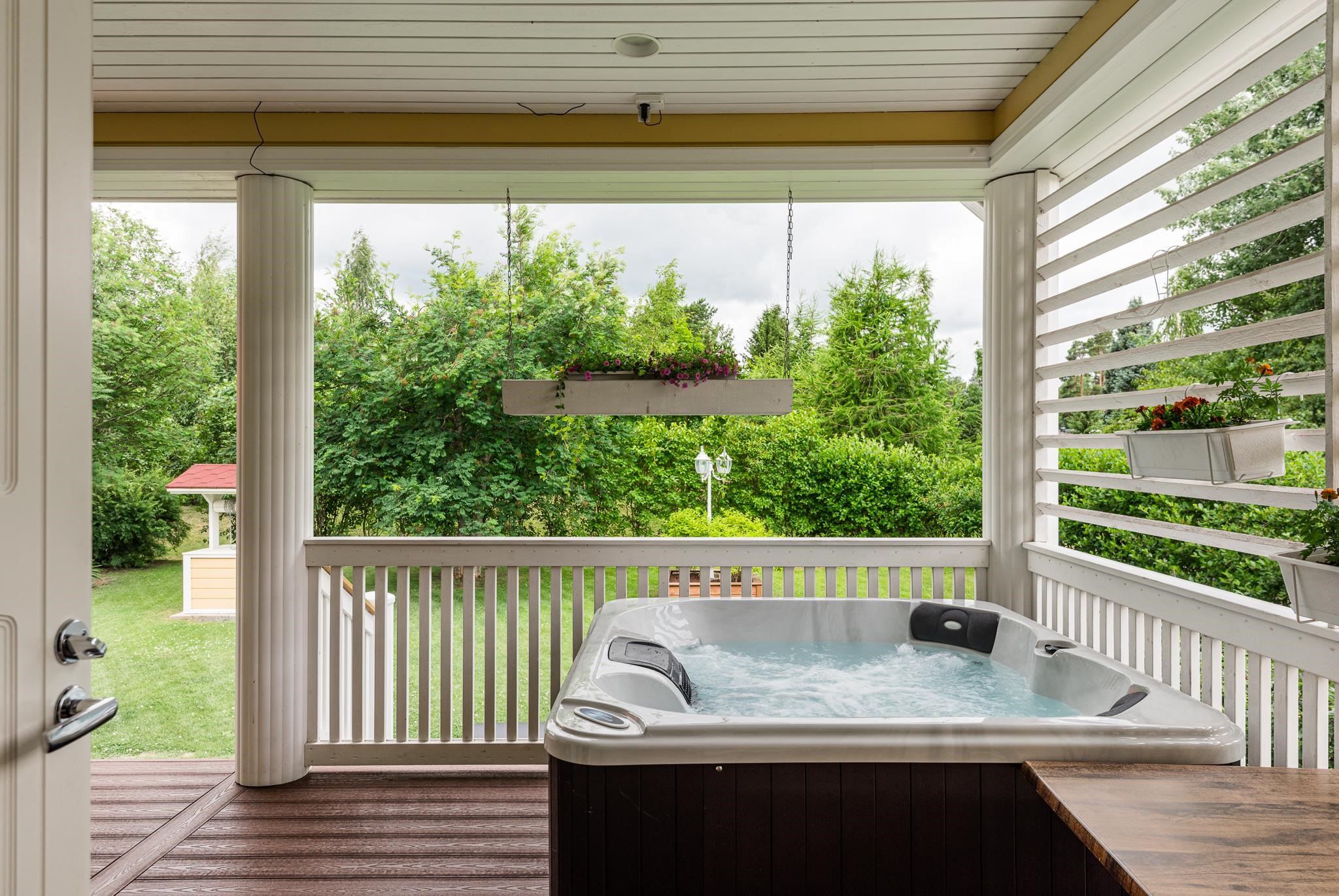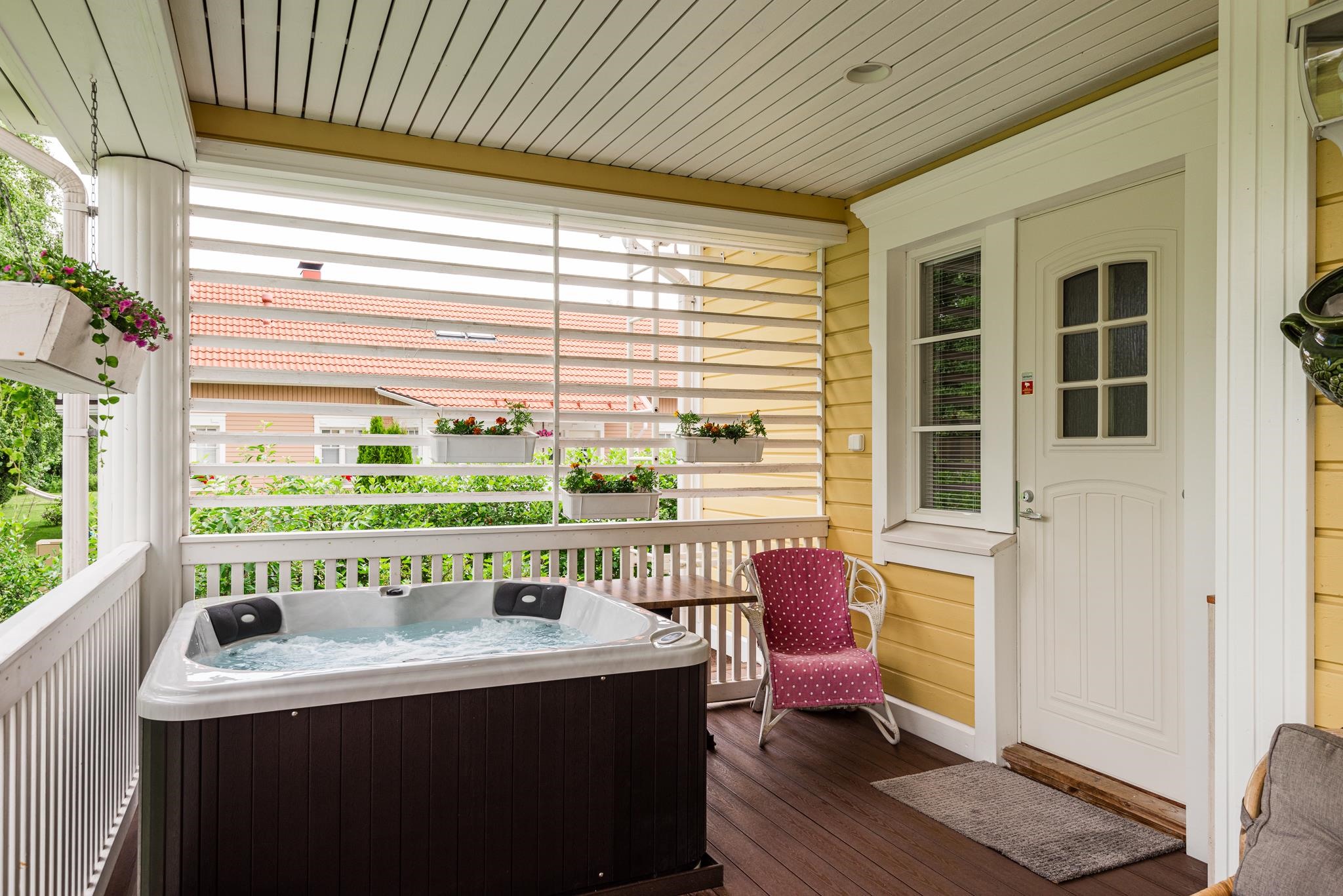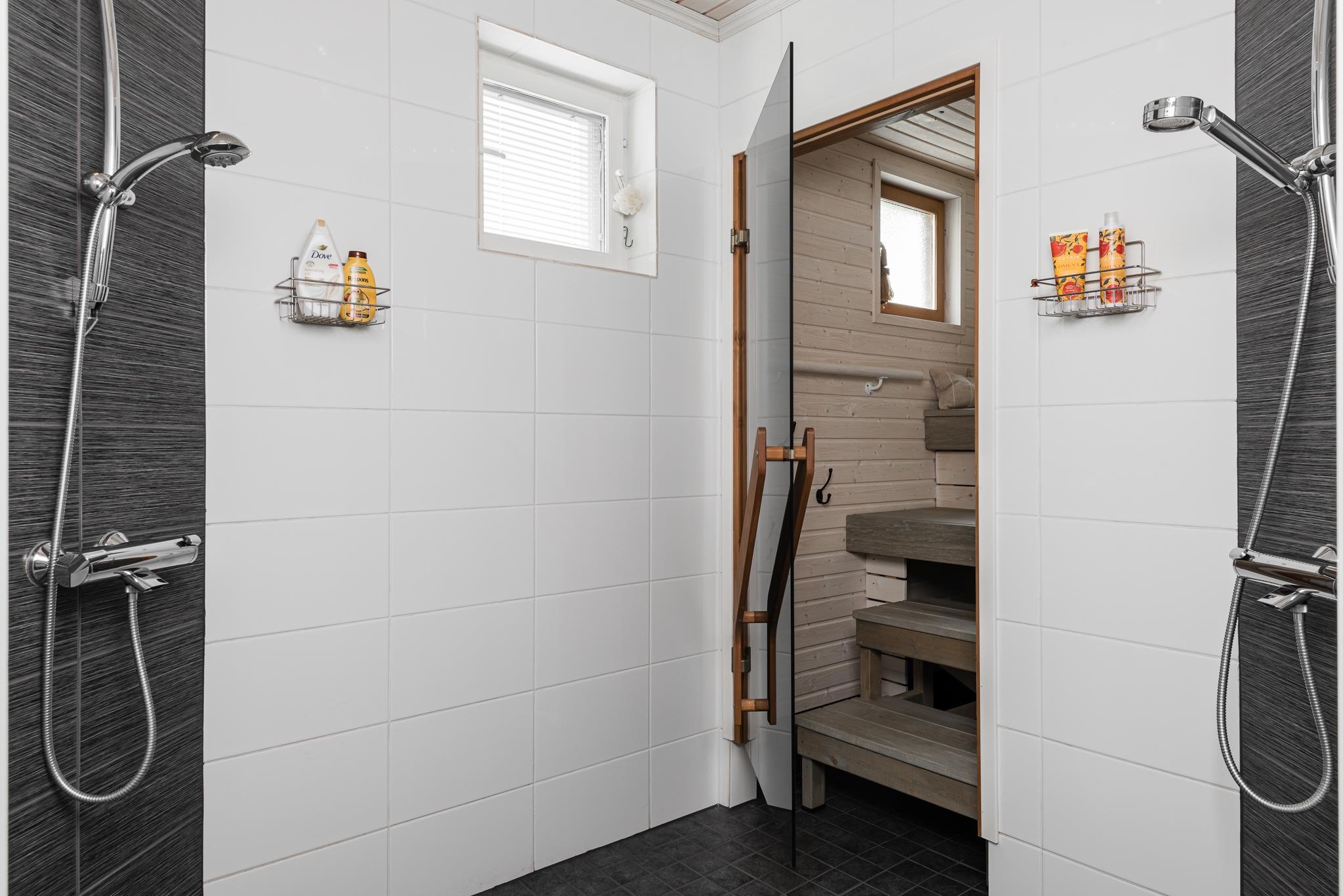 - Sauna, sähkökiuas Helo hetivalmis kiuas, kylpyhuone, erillinen wc, suihku, suihkukaappi, amme, poreallas ulkoporeallas, peilit, peilikaappi, kaapit, allaskaappi, pesukoneliitäntä, lattialämmitys koko asunto sekä talousrakennus, kiinteät valaisimet.
