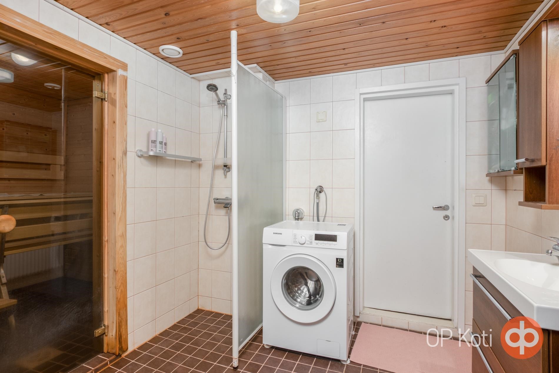 - Sauna, sähkökiuas, kylpyhuone, erillinen wc, suihku, suihkuseinä, peilit, peilikaappi, allaskaappi, pesukoneliitäntä, lattialämmitys pesuhuoneessa, kiinteät valaisimet. KPH ja sauna remontoitu 2006.