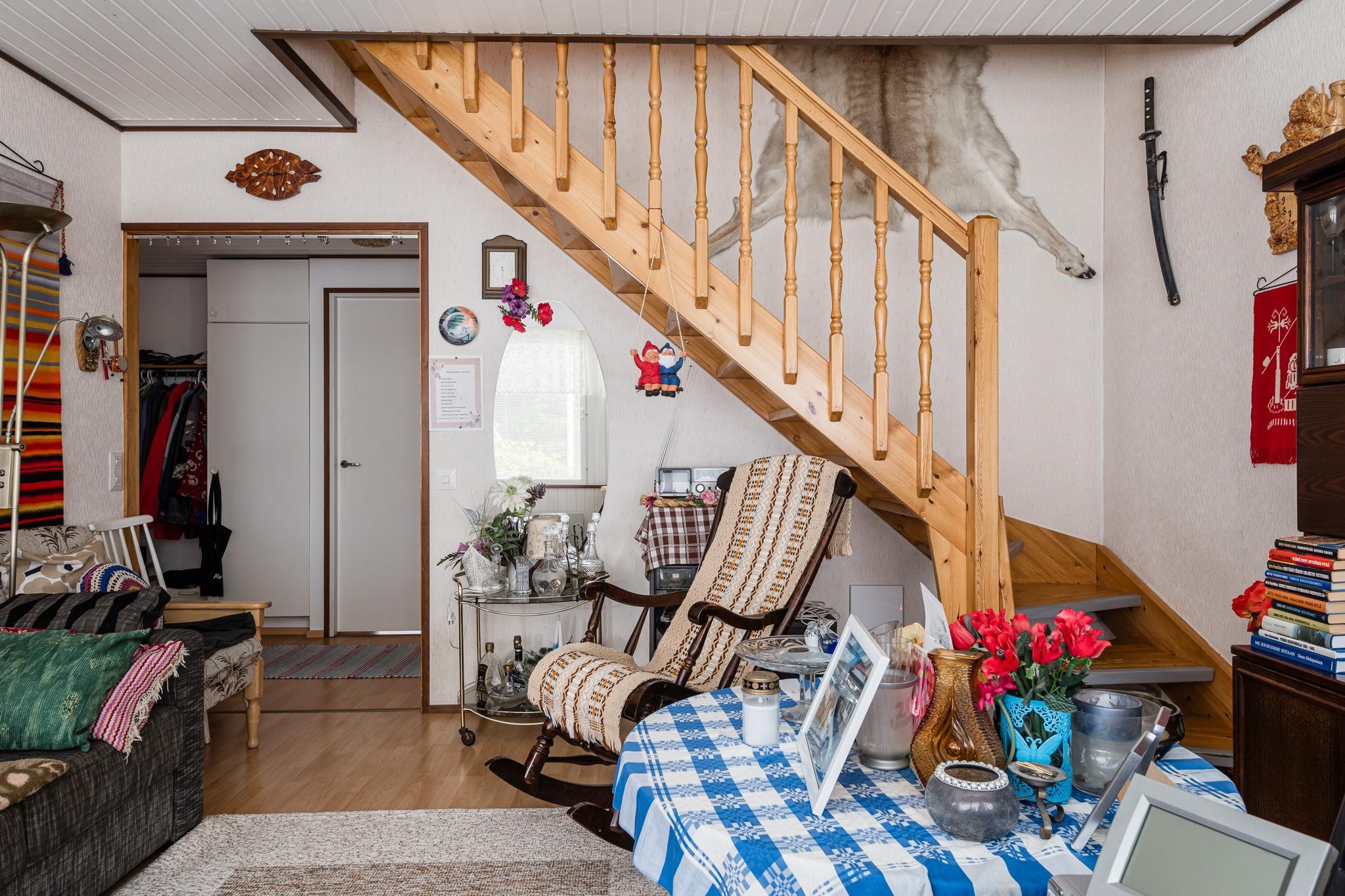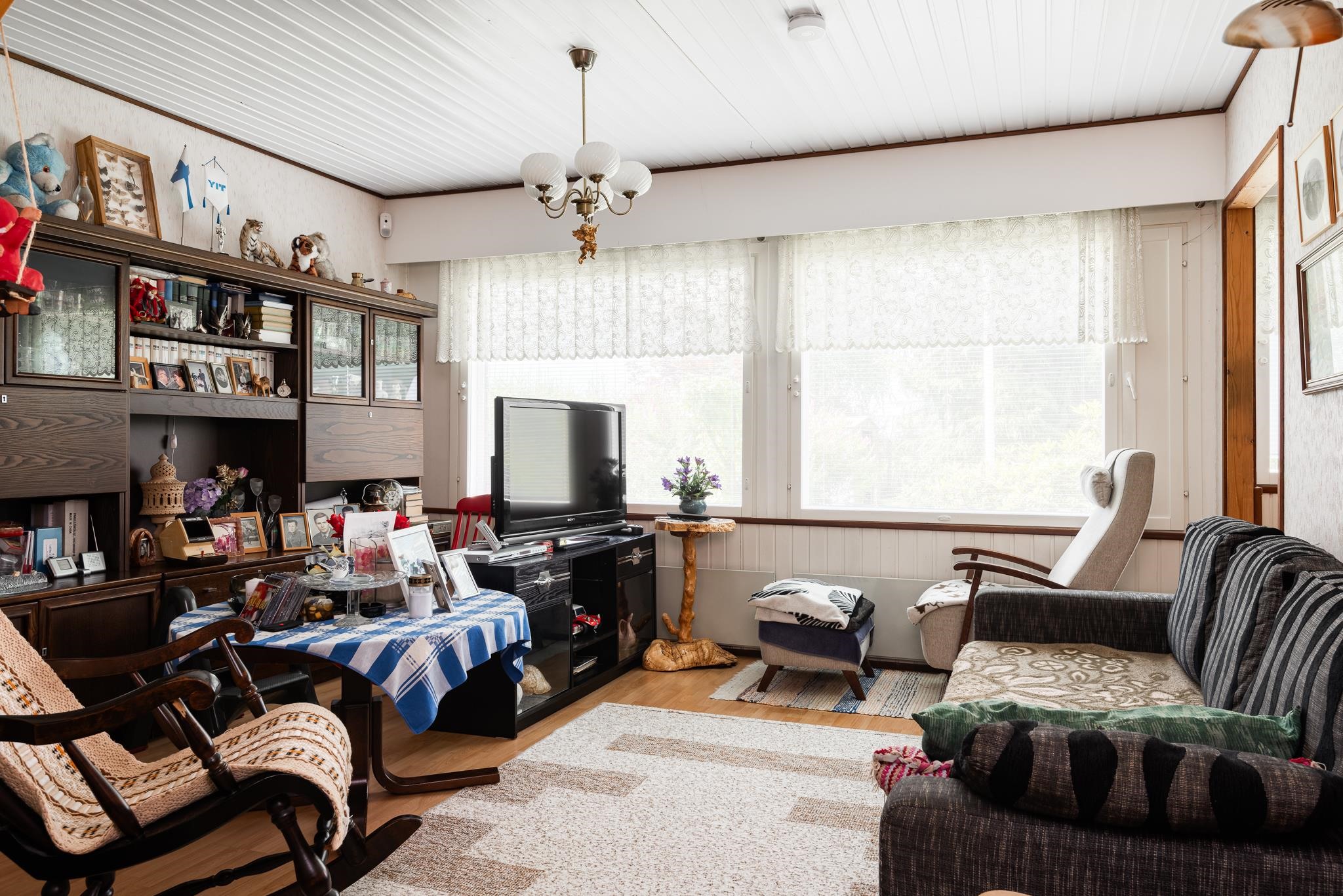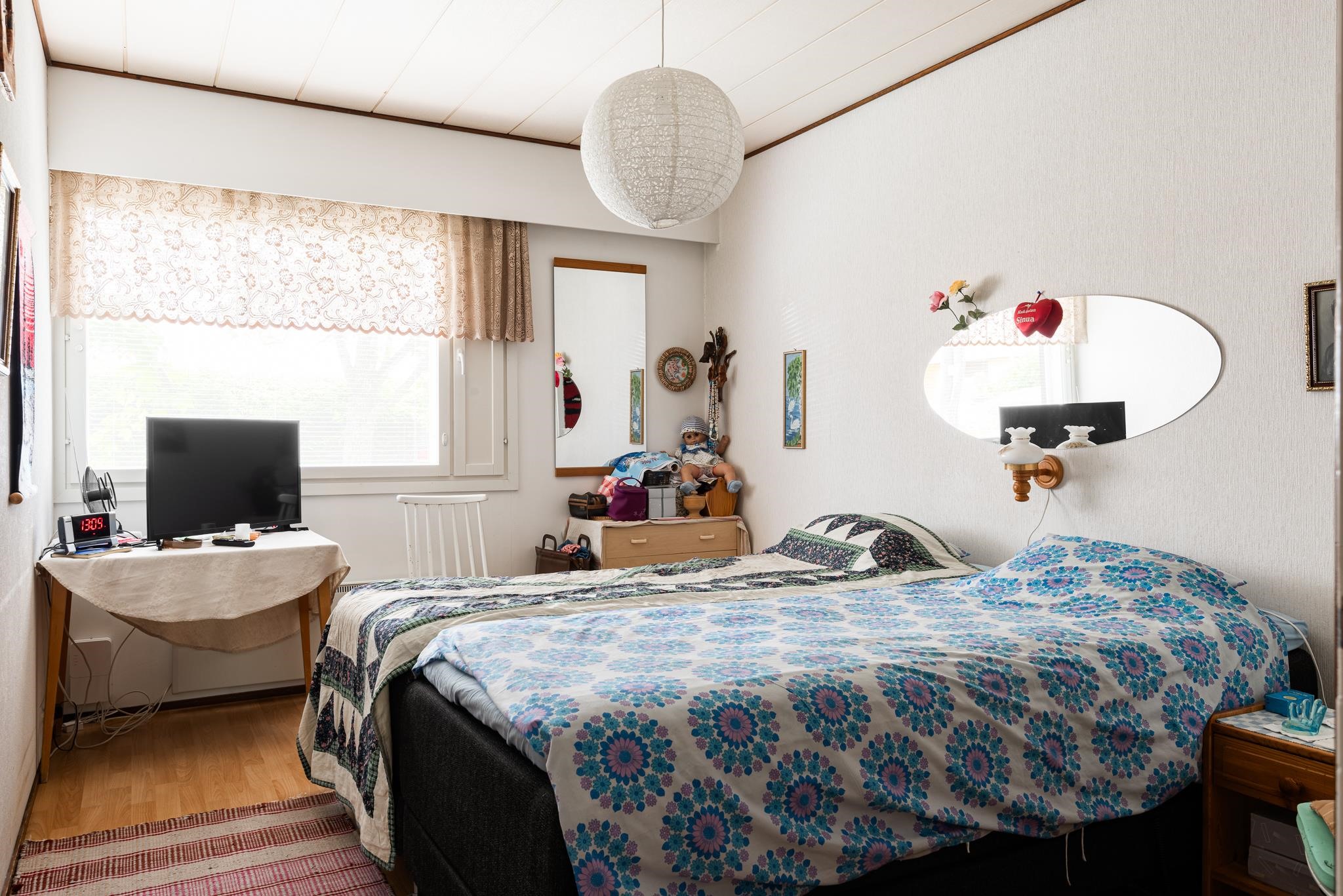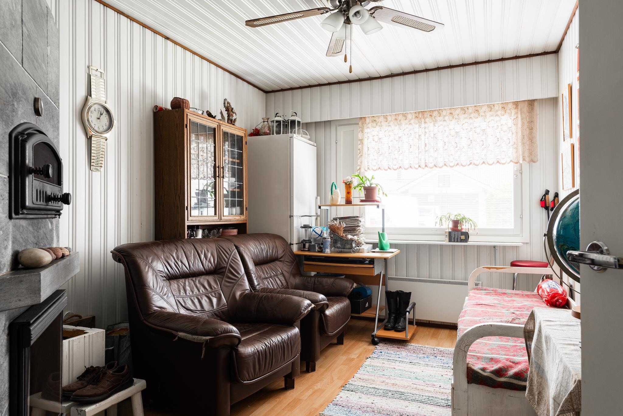 Keittiö: Lattia laminaatti, seinät tapetoitu. Olohuone: Lattia laminaatti, seinät tapetoitu. Makuuhuone 1: Lattia laminaatti, seinät tapetoitu. Makuuhuone 2: Lattia laminaatti, seinät tapetoitu. Makuuhuone 3: Lattia laminaatti, seinät tapetoitu. Kylpyhuone: Laatoitettu. Eteinen: Lattia laminaatti. Wc: Laatoitettu. Yläkerta: Lattia muovimatto, seinät tapetoitu.