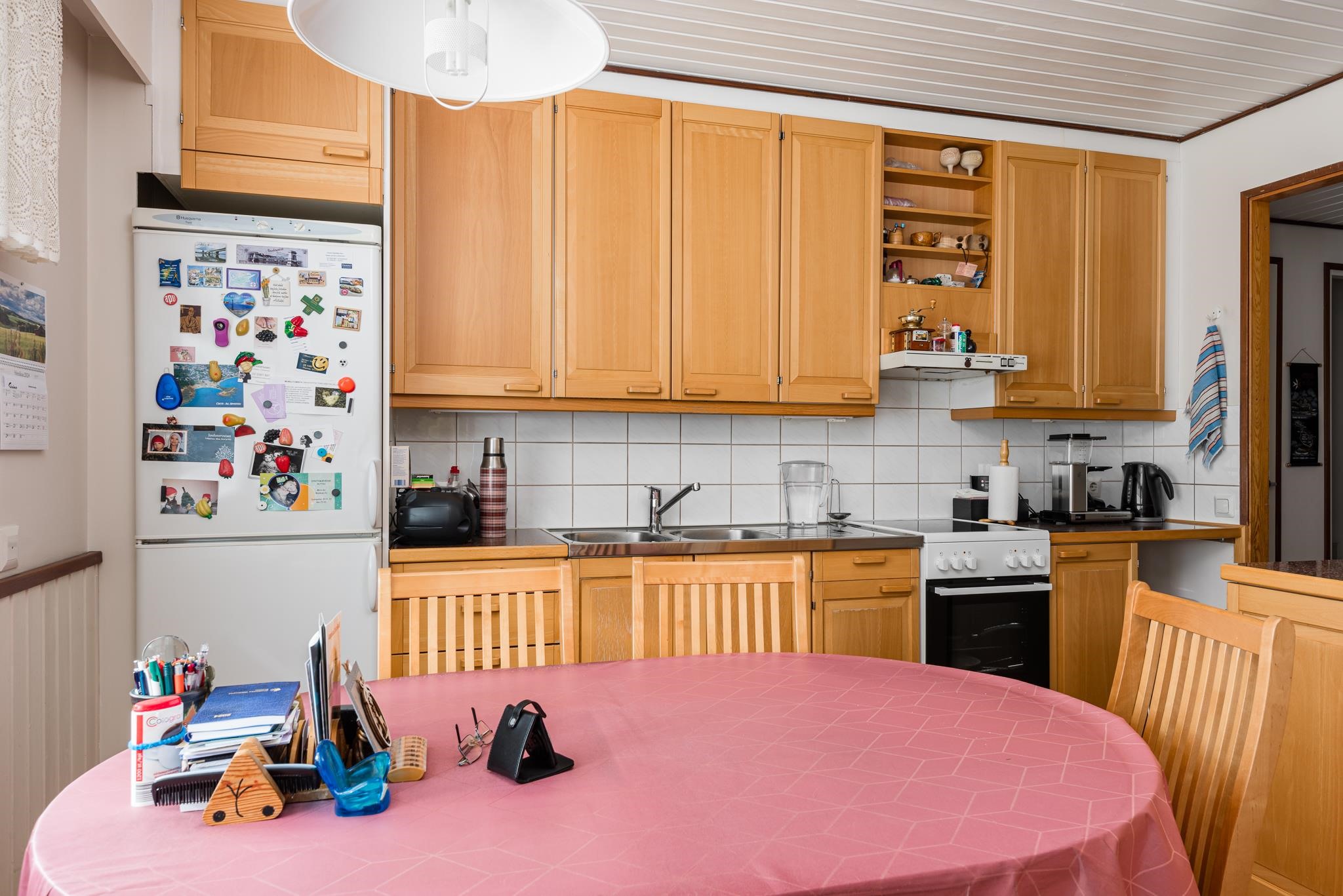 - Jääkaappipakastin, keraaminen liesi, liesituuletin, Leivinuuni.