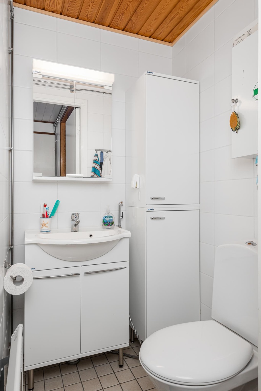 - Sauna, sähkökiuas, kylpyhuone, erillinen wc, suihku, peilikaappi, pesukoneliitäntä, lattialämmitys.