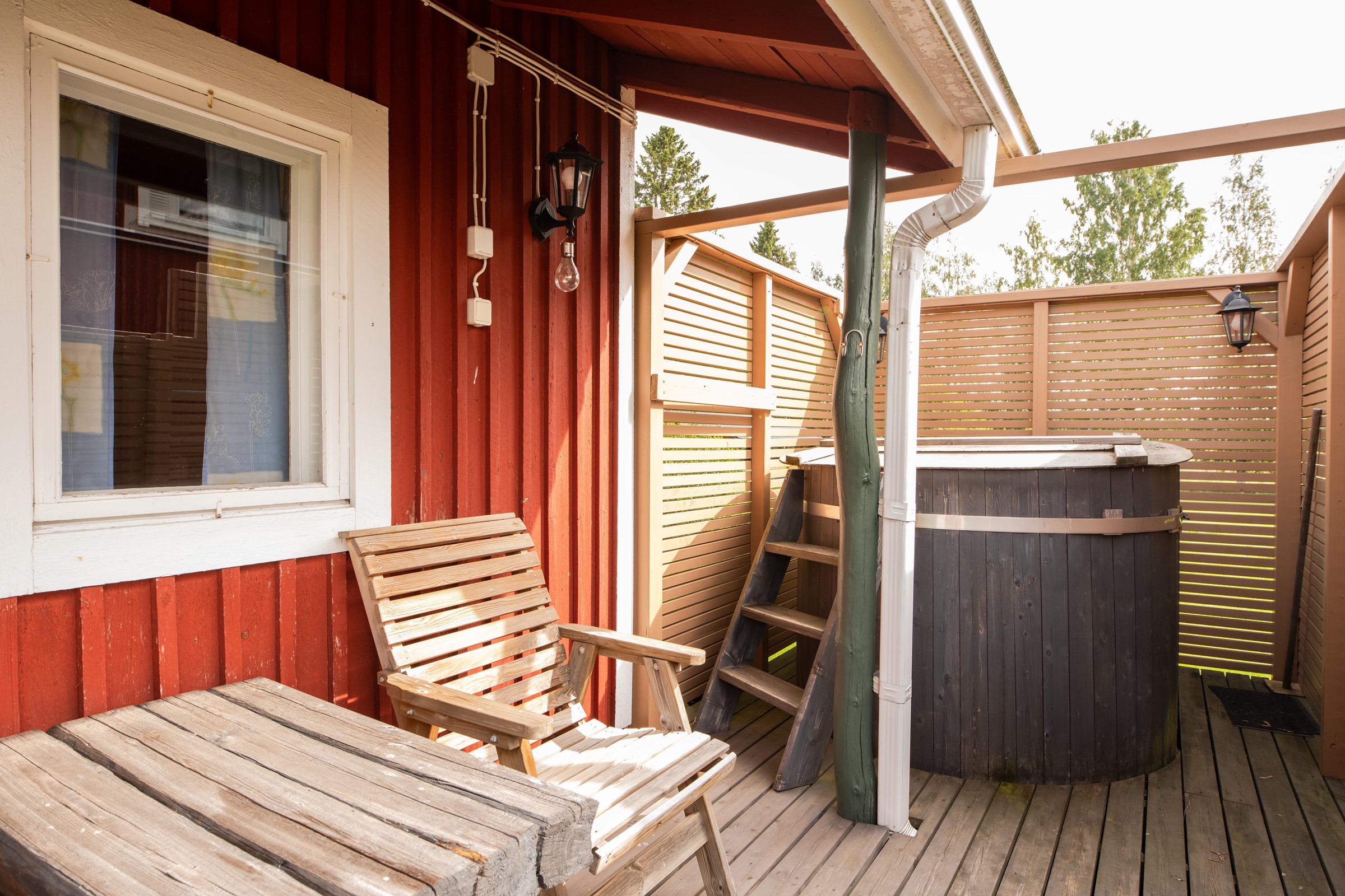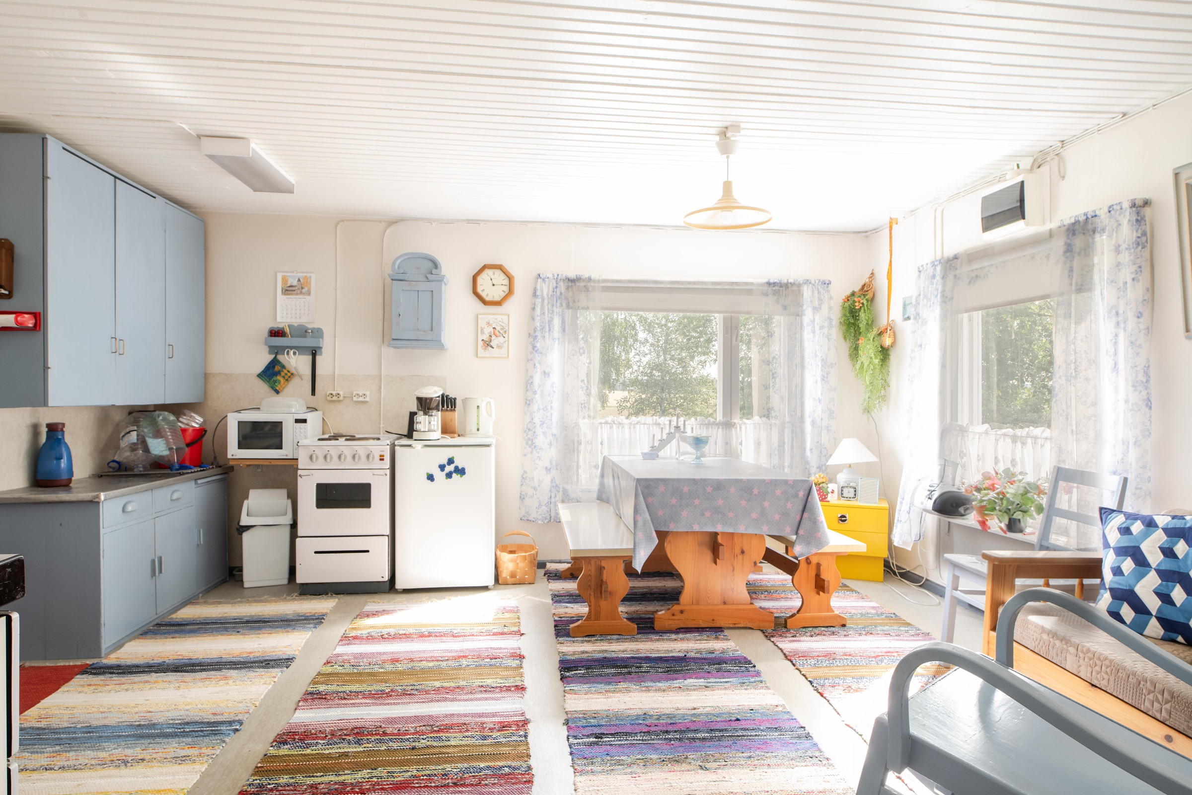 - Jääkaappi molemmissa mökeissä, mikroaaltouuni, kiinteät valaisimet.
