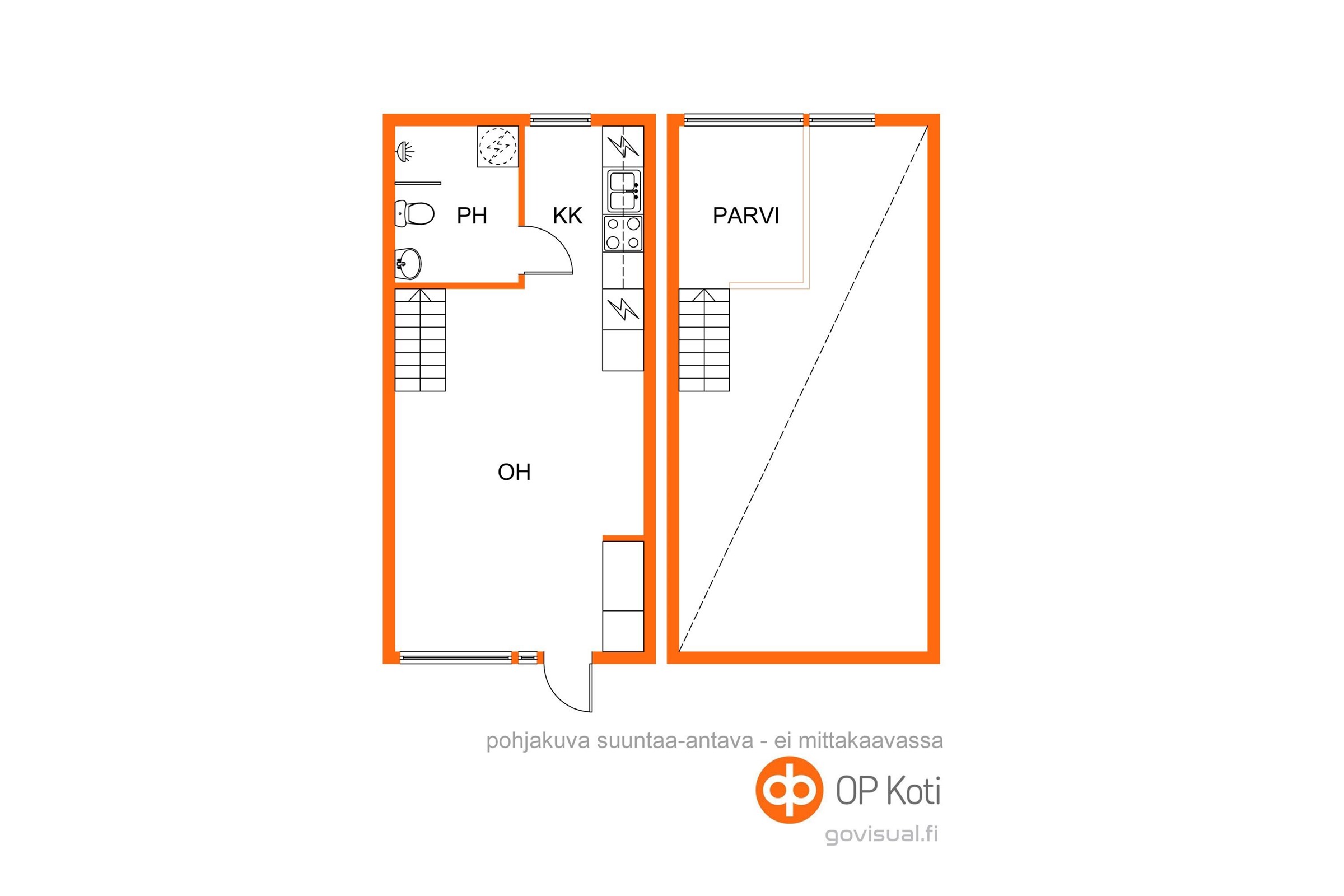- 1h, avokeittiö, kph, parvi (yj. 1h + kph + avok)