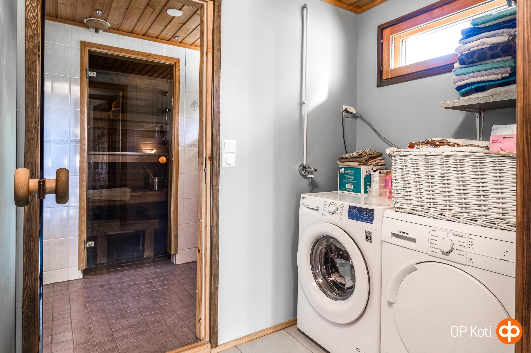 - Sauna, sähkökiuas Pilarikiuas, kylpyhuone, erillinen wc, suihku, peilikaappi, kaapit, allaskaappi, pesukoneliitäntä, lattialämmitys, kiinteät valaisimet. Kylpyhuone, kodinhoitohuone ja sauna remontoitu v. 2010 kauttaaltaan (nykyaikaiset vesieristeet asennettu).