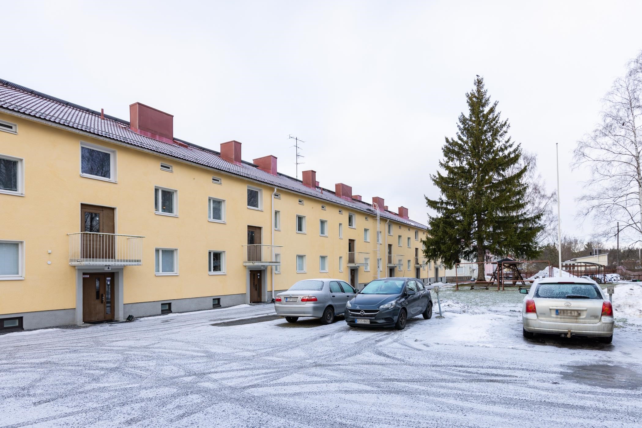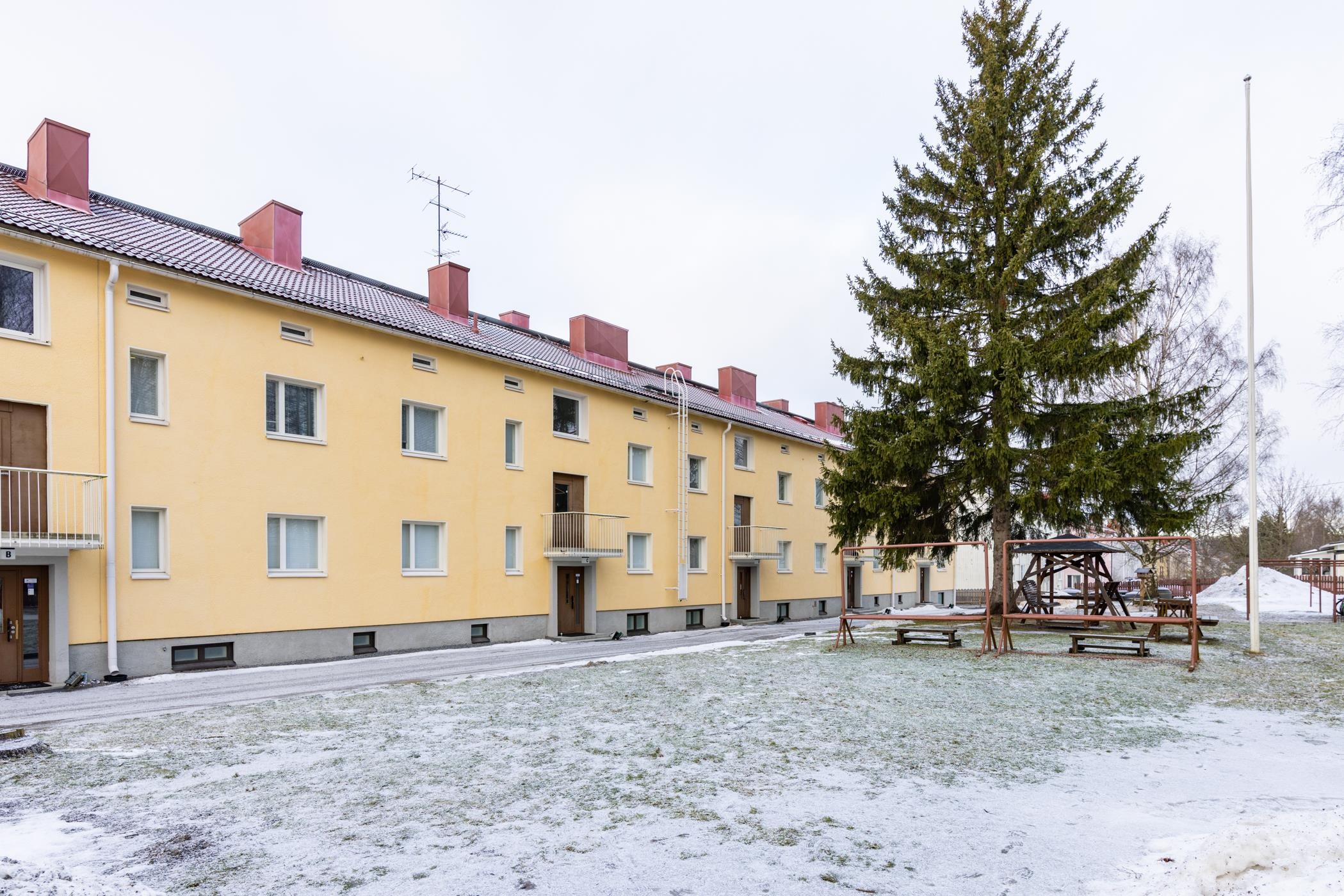 Keittiö: laminaatti, maali. Olohuone: laminaatti, tapetti. Kylpyhuone: kaakeloitu.