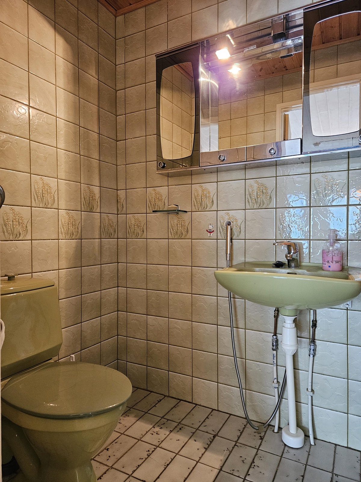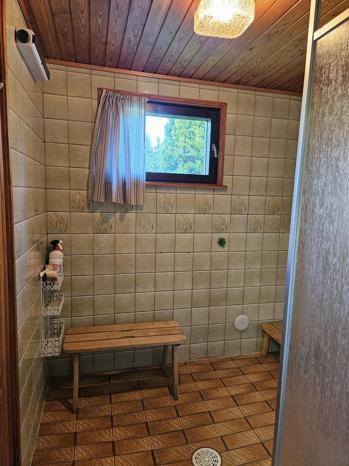 - Sauna, sähkökiuas kiuas uusittu 2022, kylpyhuone, erillinen wc, suihku, peilikaappi, pesukoneliitäntä, lattialämmitys kylpyhuoneessa.