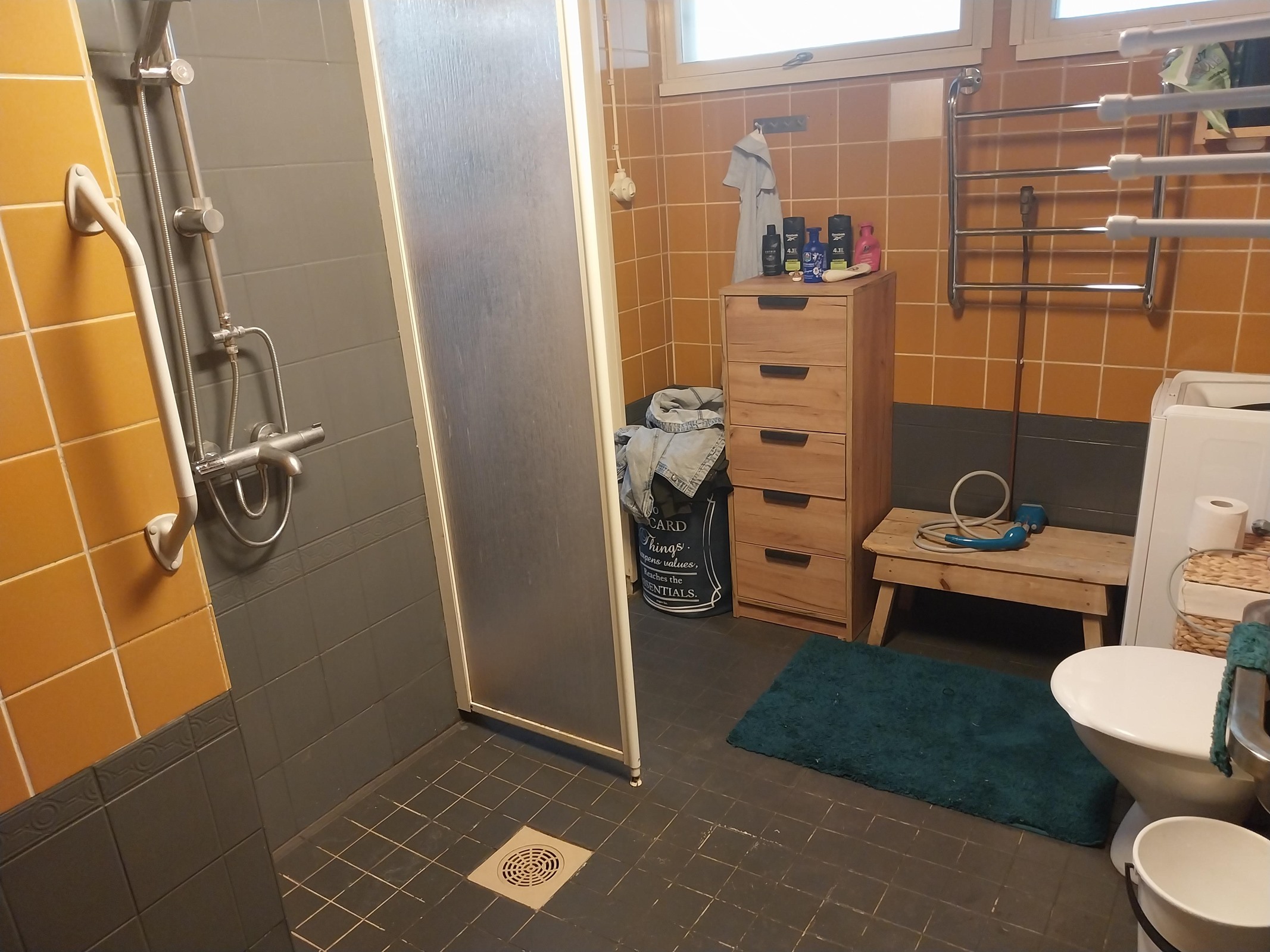 - Sauna, puukiuas, kylpyhuone, erillinen wc, suihku, peilikaappi, allaskaappi, pesukoneliitäntä, lattialämmitys, kiinteät valaisimet.