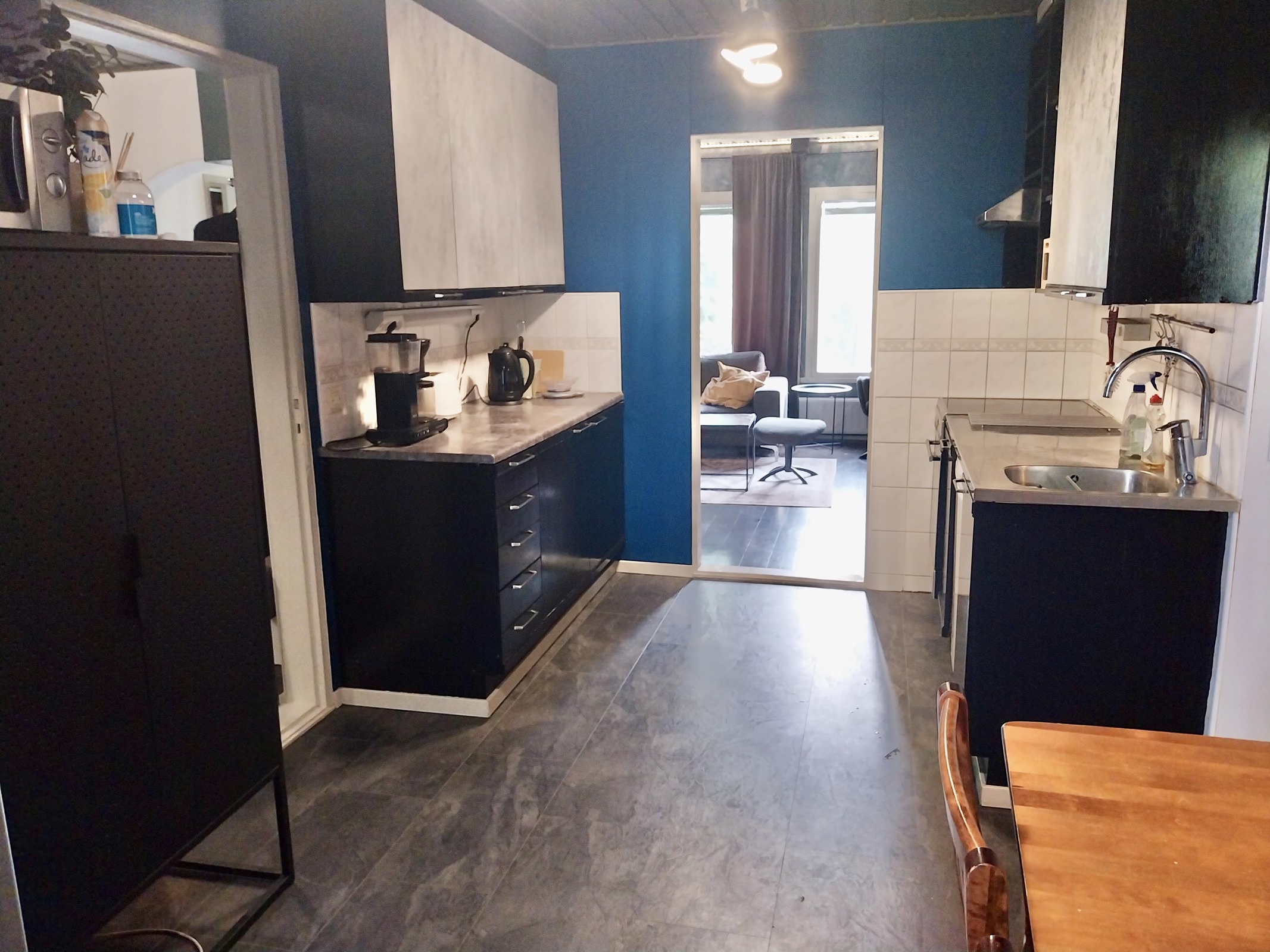 - Jääkaappipakastin, keraaminen liesi, liesituuletin, astianpesukone, kaapistot, kiinteät valaisimet. Irrallinen metallikaappi