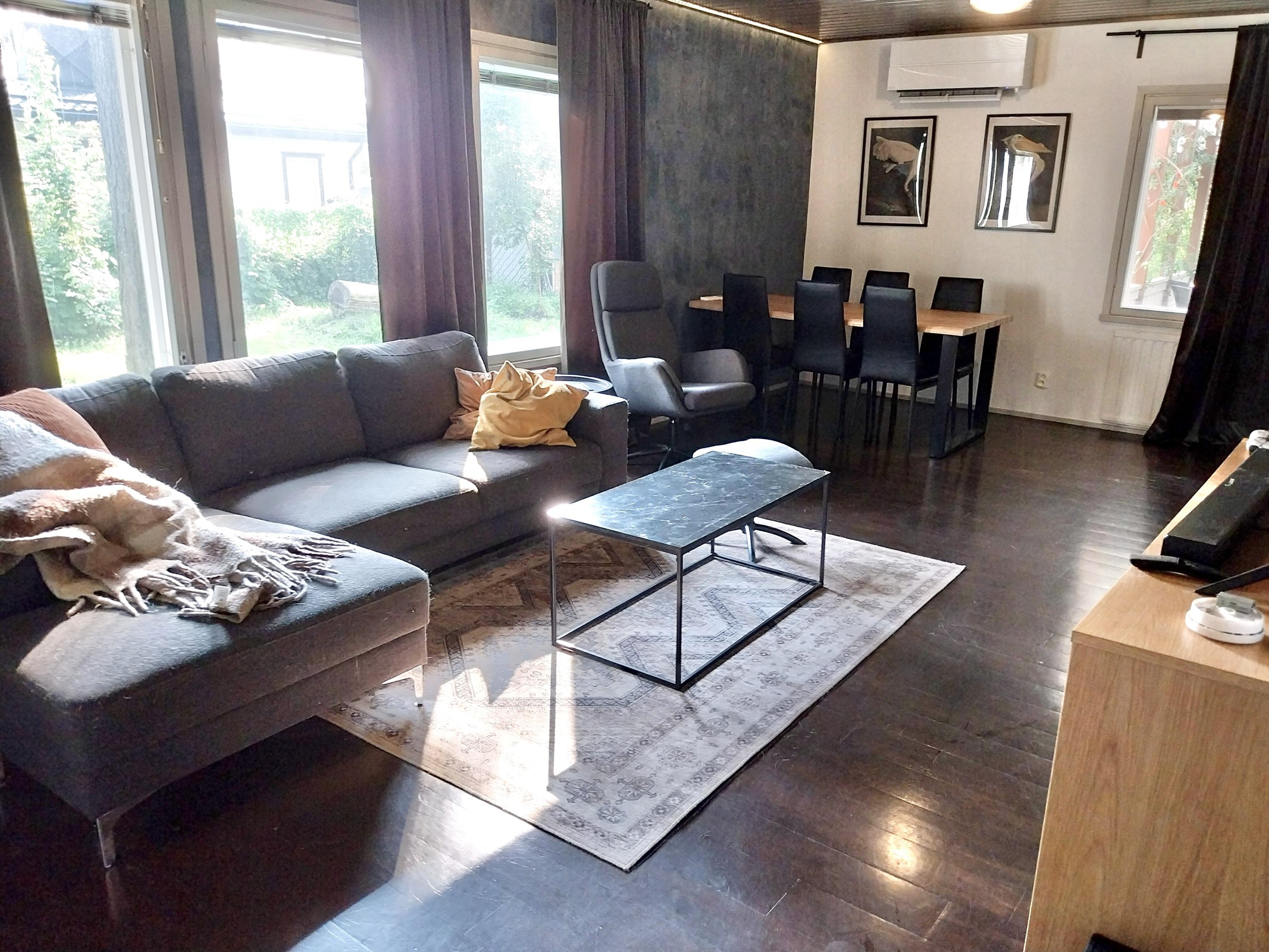Tässä moneen eri elämäntilanteeseen sopivassa talossa on kolme makuuhuonetta, erillinen wc sekä tilava kylpyhuone ja sauna. Olohuone sekä keittiö on osittain yhtenäisen avaraa tilaa. Mukavana lisänä on autotalli, sekä erillisen varastorakennuksen tuoma varastotila. Vehreä tontti on aidattu sekä suojaisa ja sijaitsee muutaman minuutin ajomatkan päässä keskustasta. Lähipalveluihin, kuten kauppoihin, kouluihin ja päiväkotiin kävelee näppärästi talolta.