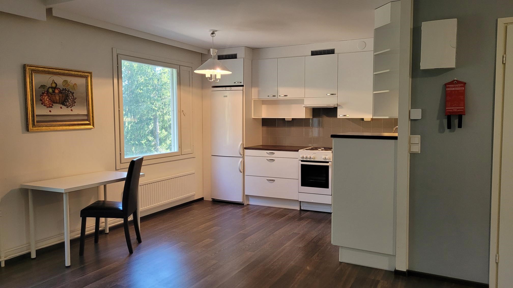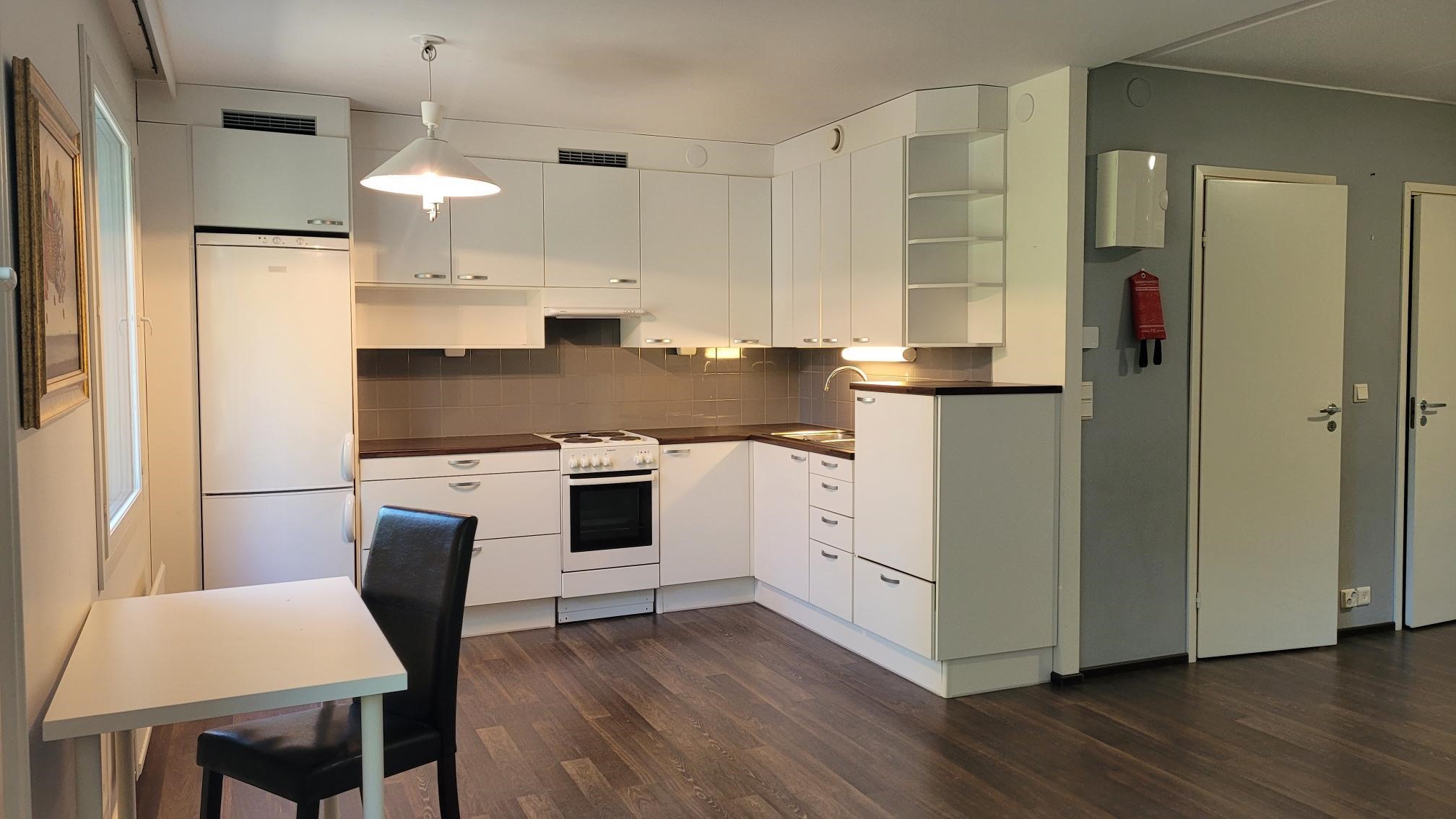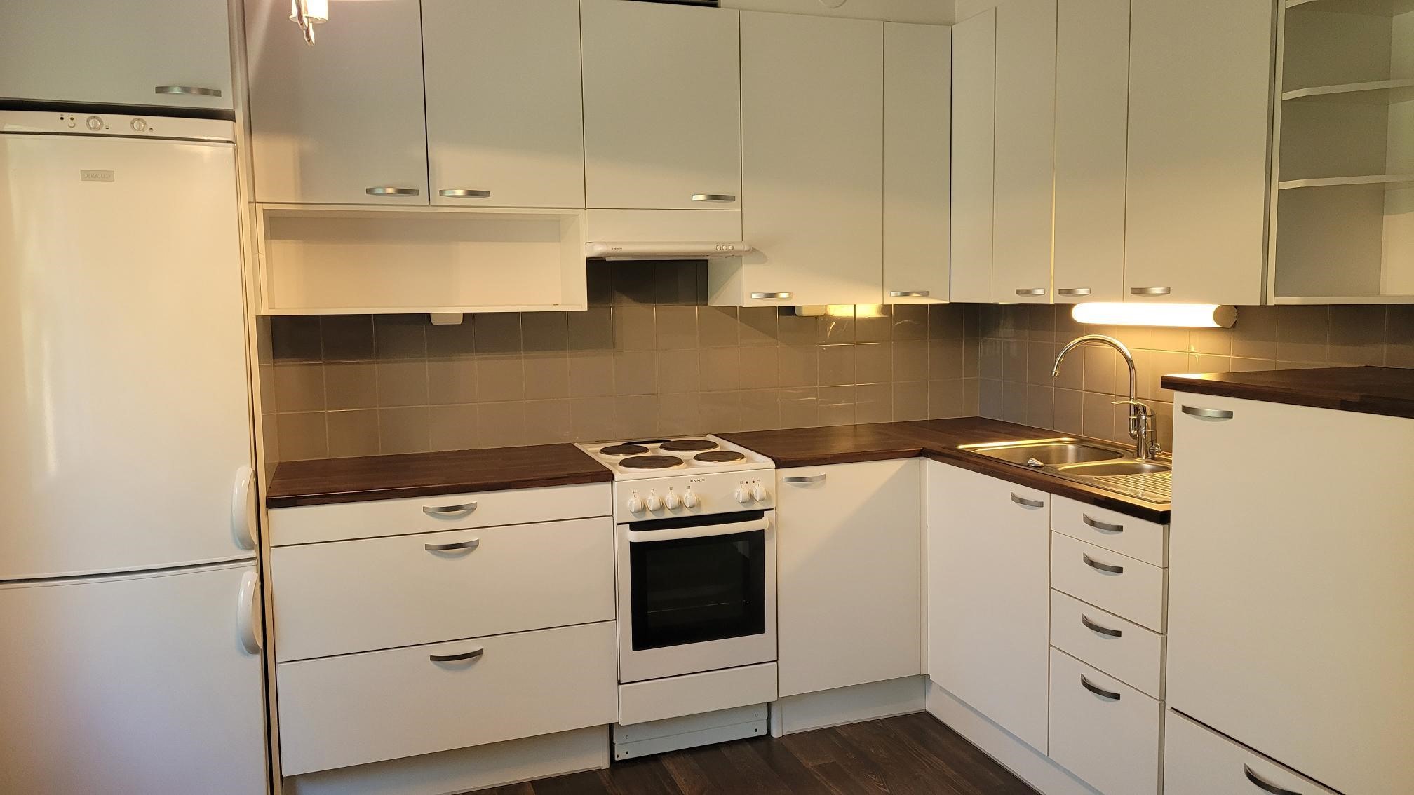 - Jääkaappi, sähköliesi, kaapistot, kiinteät valaisimet.