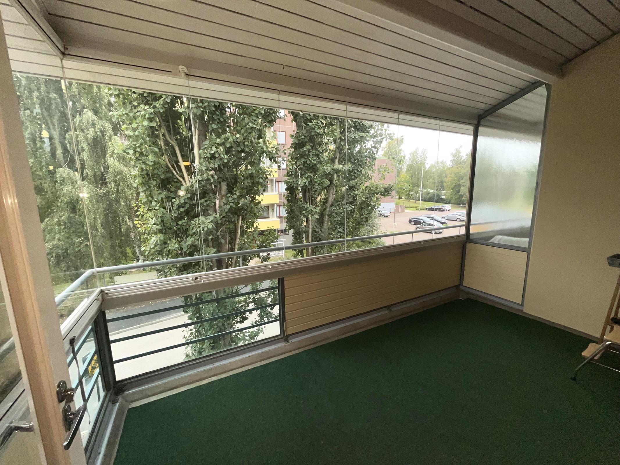 - Iso lasitettu parveke länteen Lähteenkadulle.