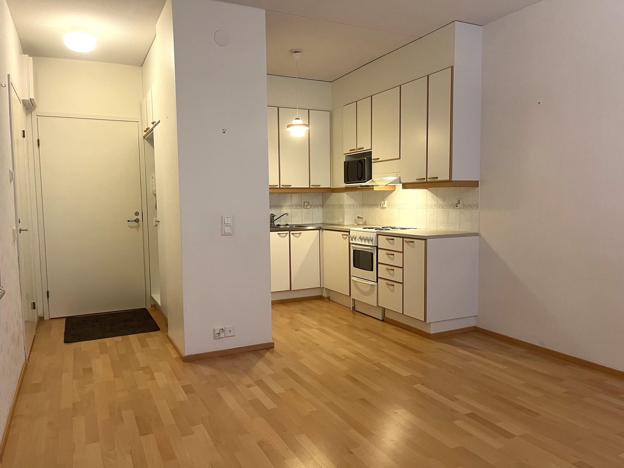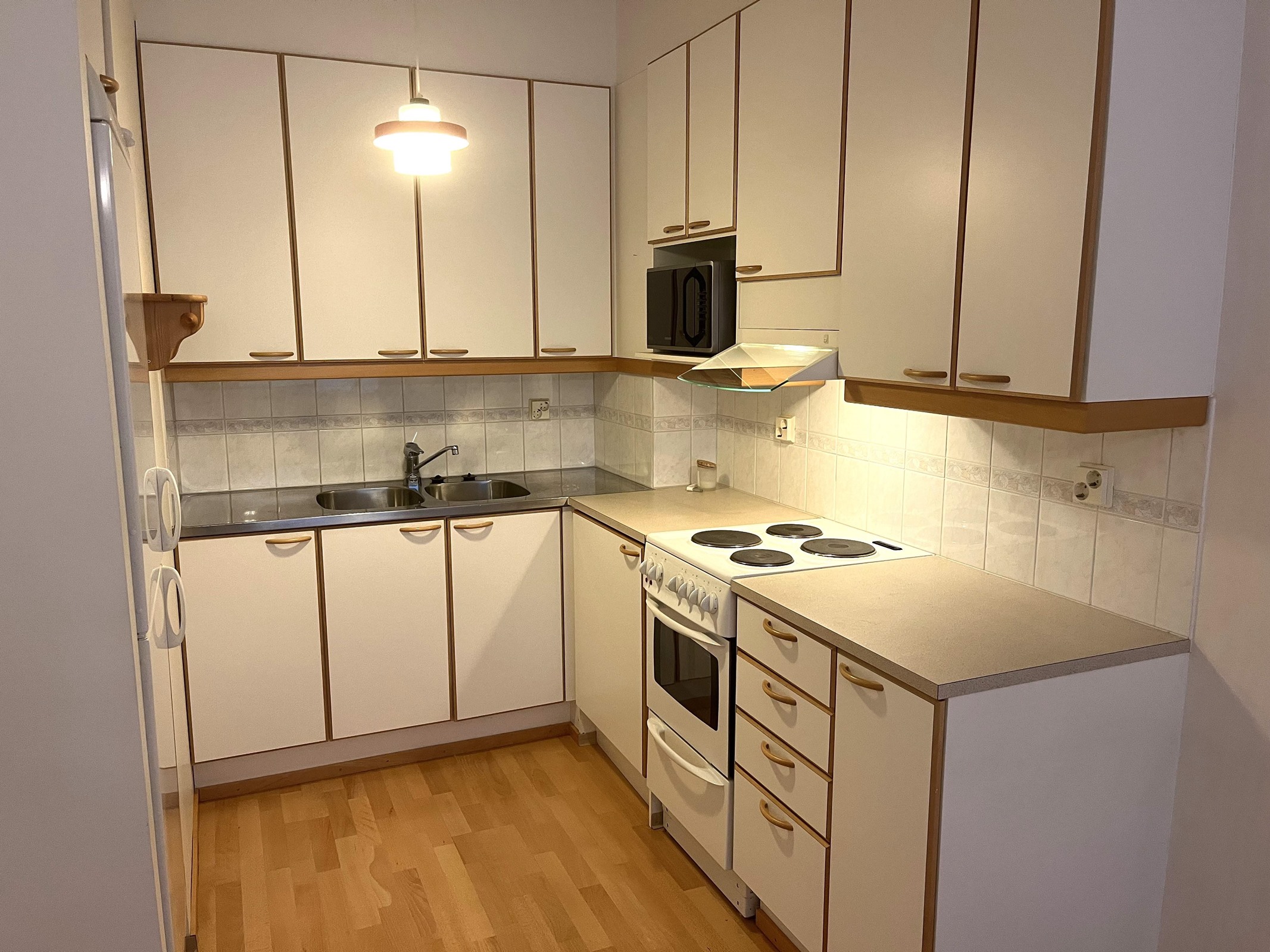 - Jääkaappipakastin, liesitaso, kaapistot.