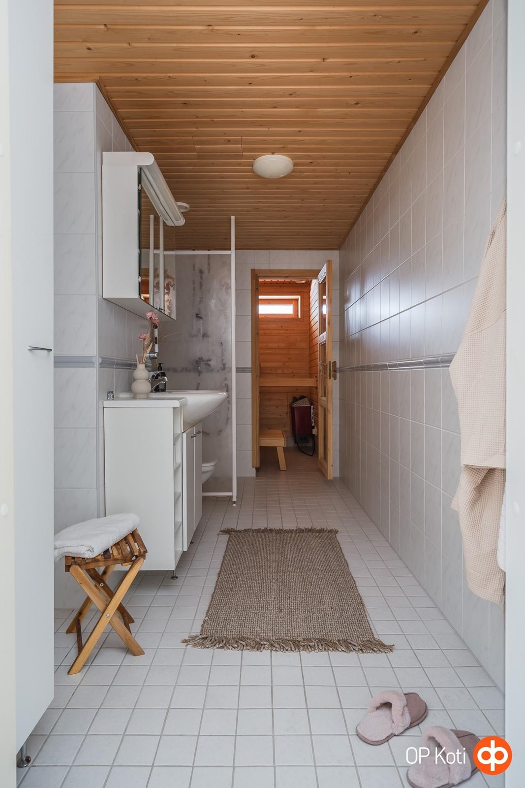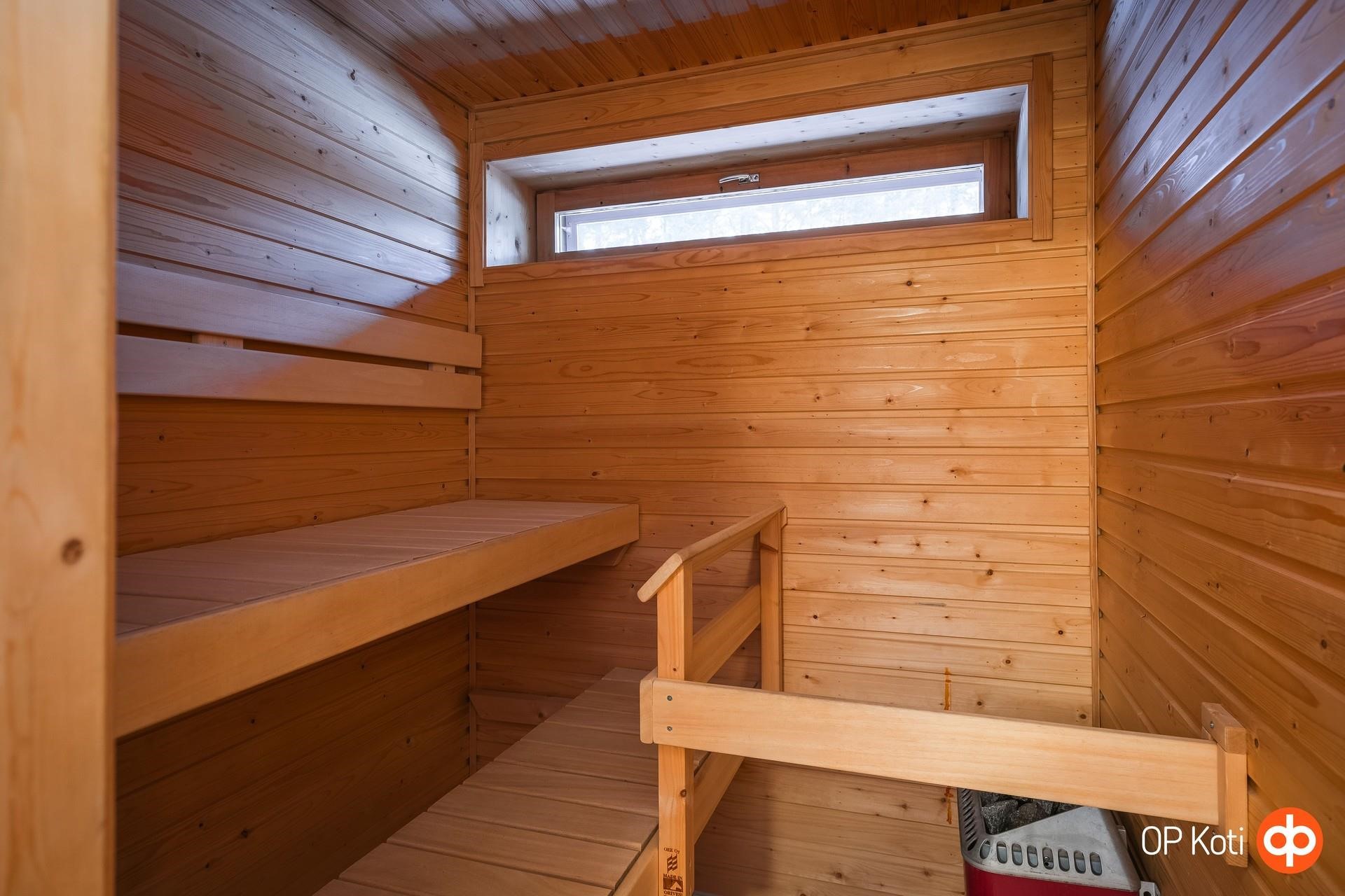 - Saunassa on sähkökiuas ja kiinteä valaistus. Kylpyhuoneessa on suihku, suihkuseinä, peili- ja allaskaappi, wc-istuin sekä pesukoneliitäntä.Tilassa sähköinen lattialämmitys ja kiinteä valaistus. Erillisessä wc-tilassa on peili- ja allaskaappi, bidee-suihku sekä kiinteä valaistus.
