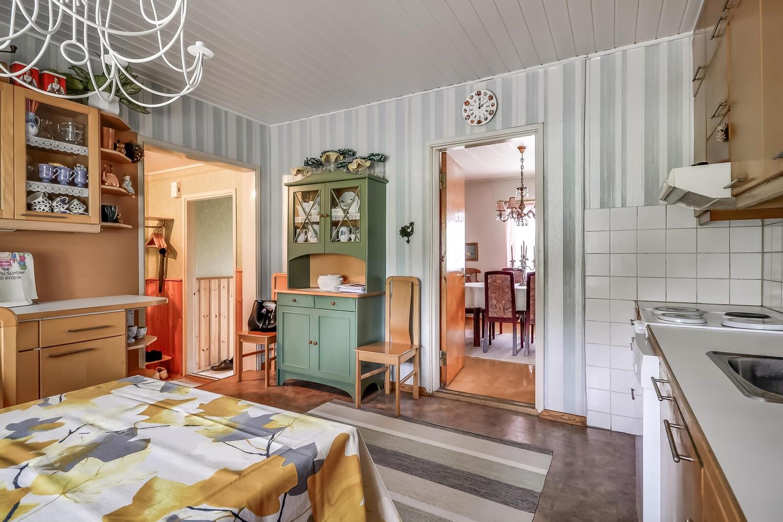 - Jääkaappi 2022, lattialiesi, liesituuletin, astianpesukone, kaapistot. Keittiö saneerattu 1990