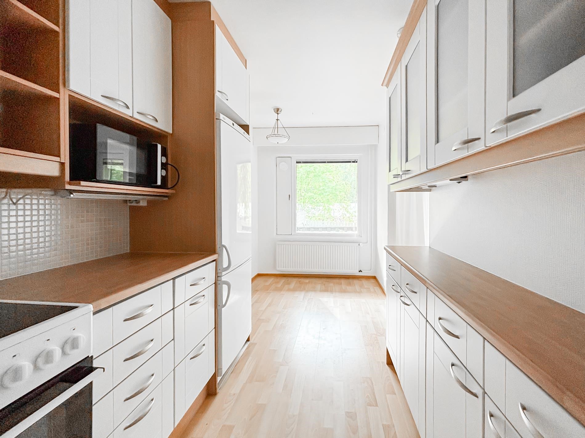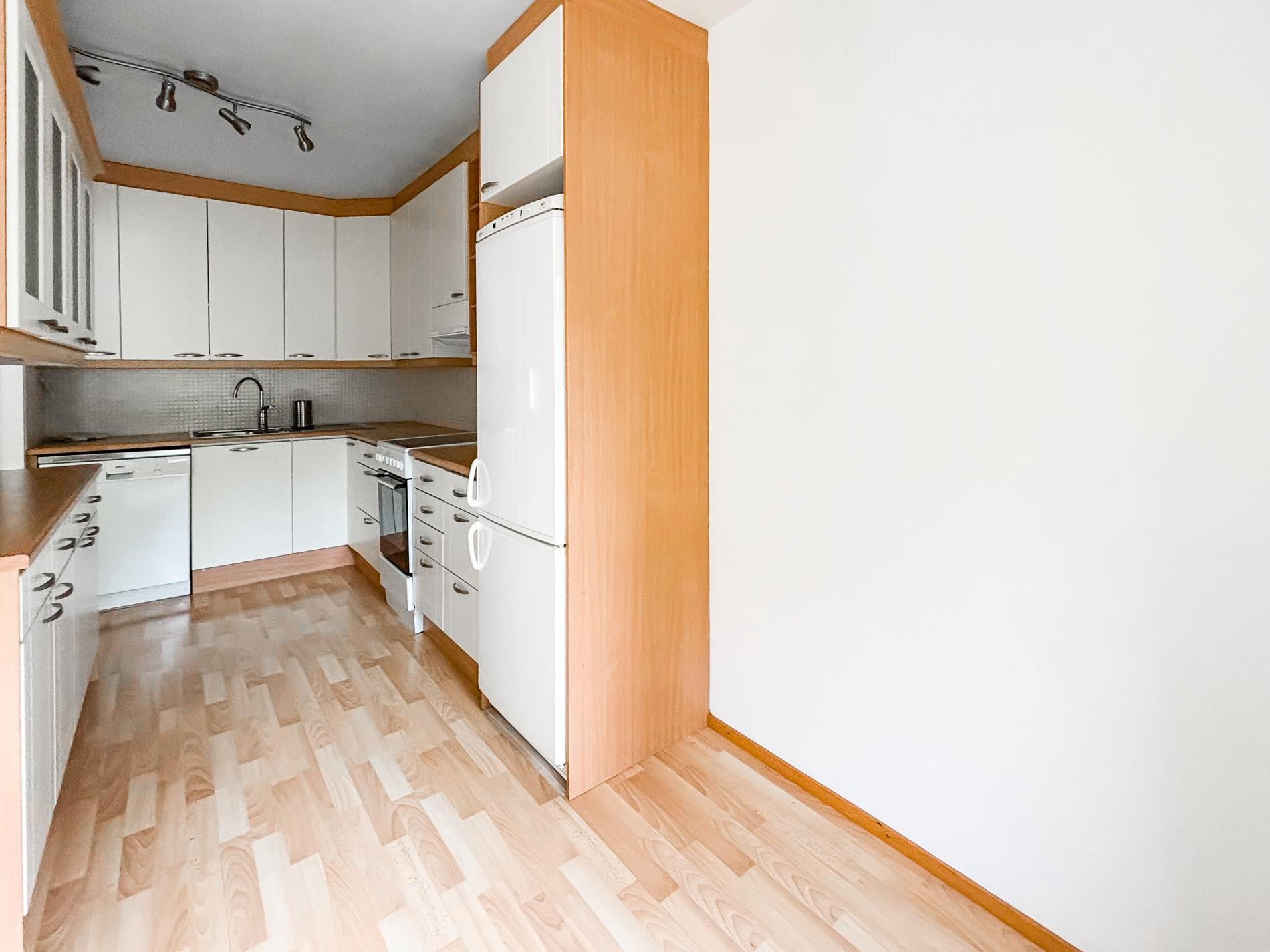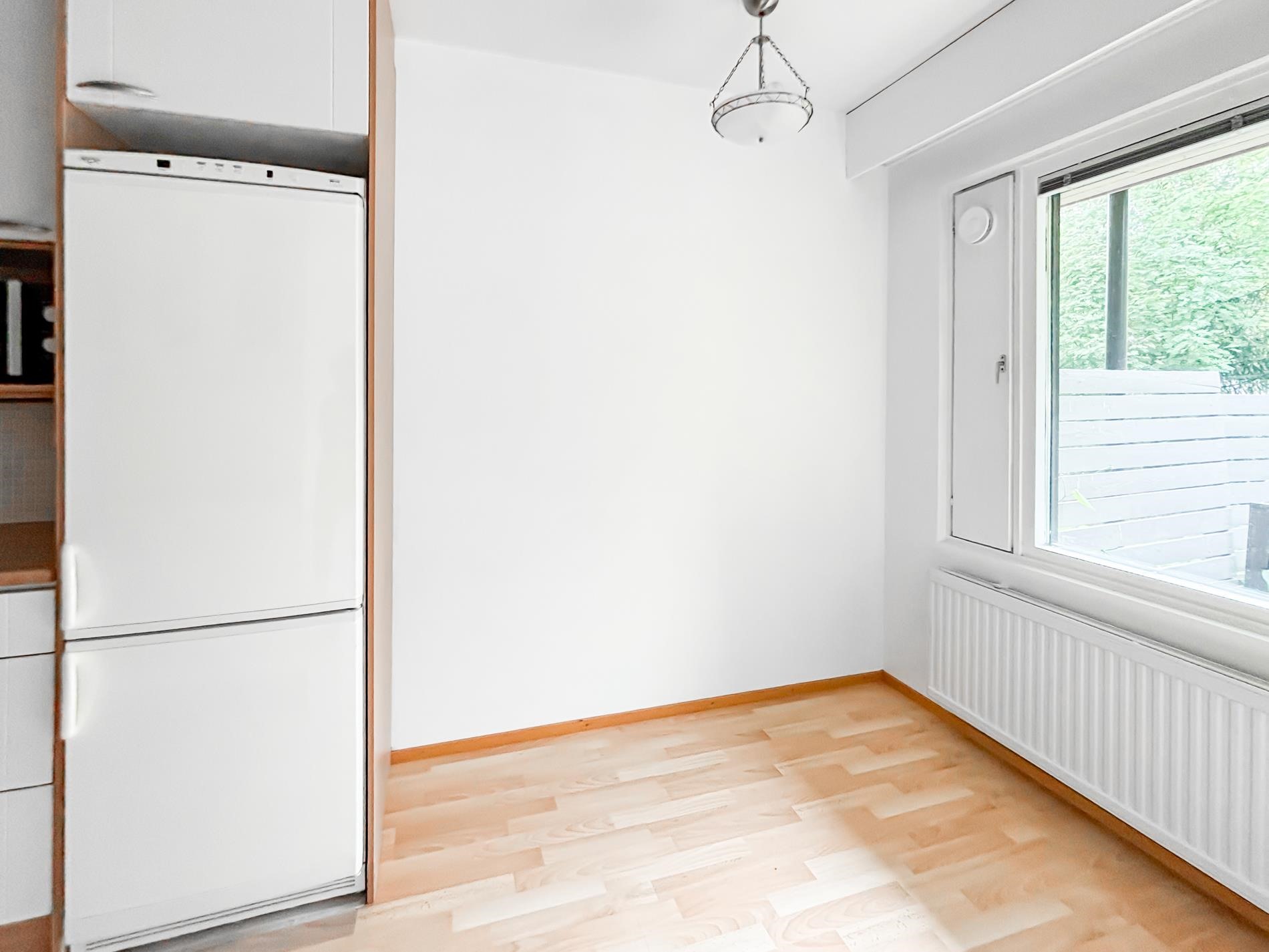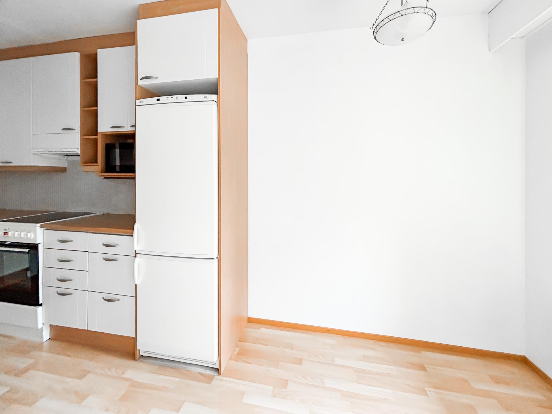 - Jääkaappipakastin, liesituuletin, astianpesukone, kaapistot, kiinteät valaisimet.