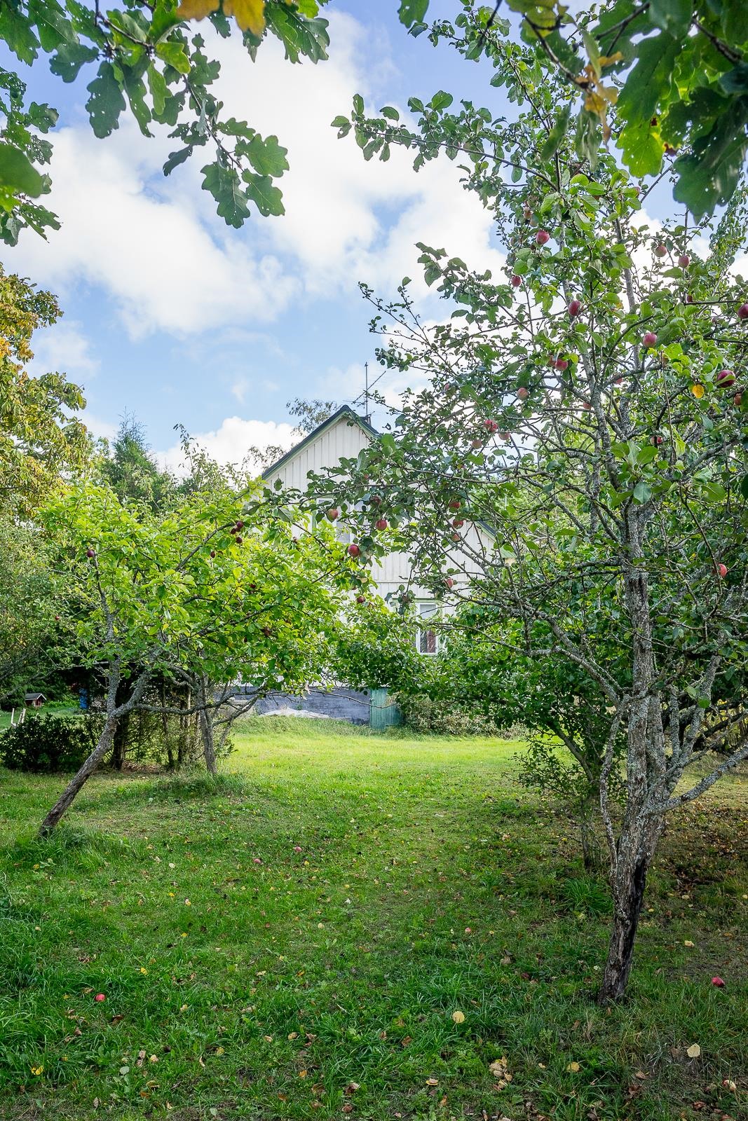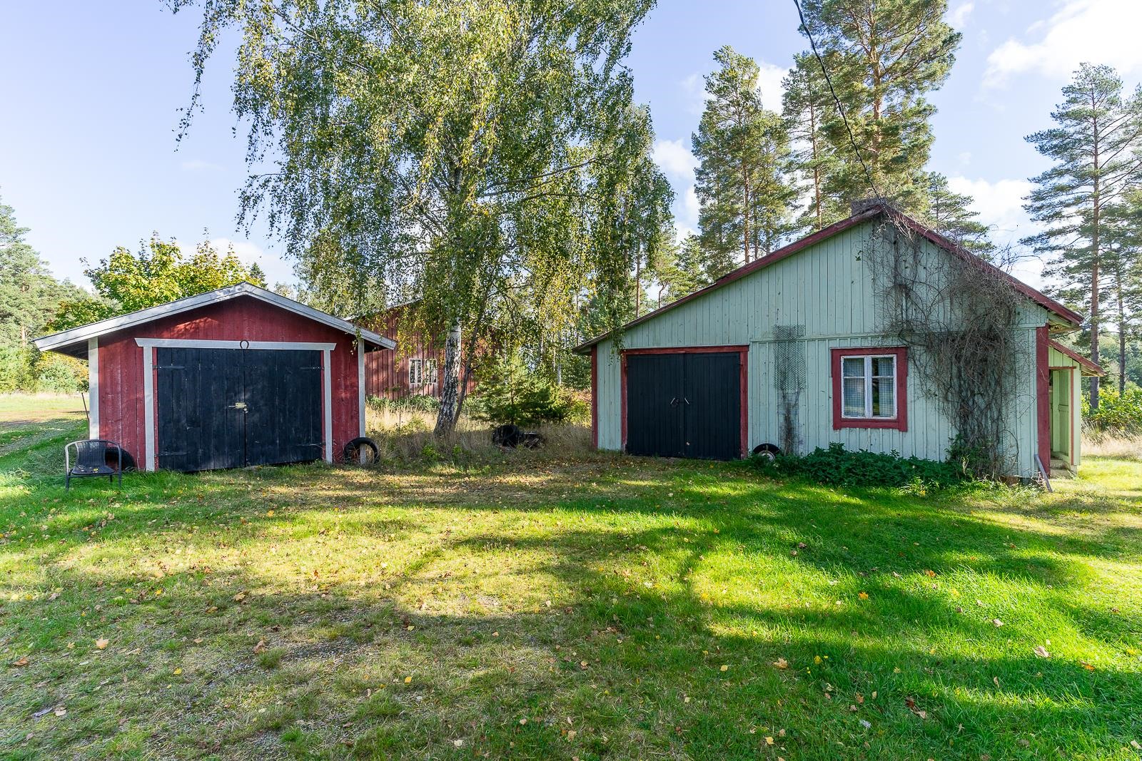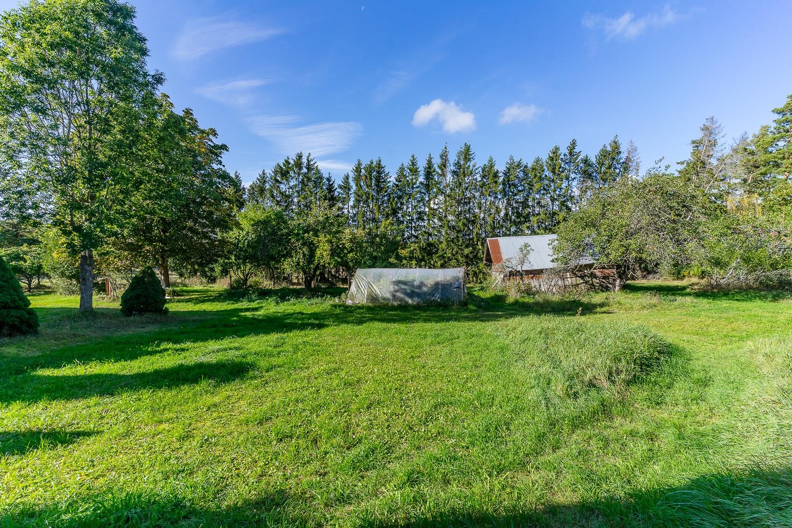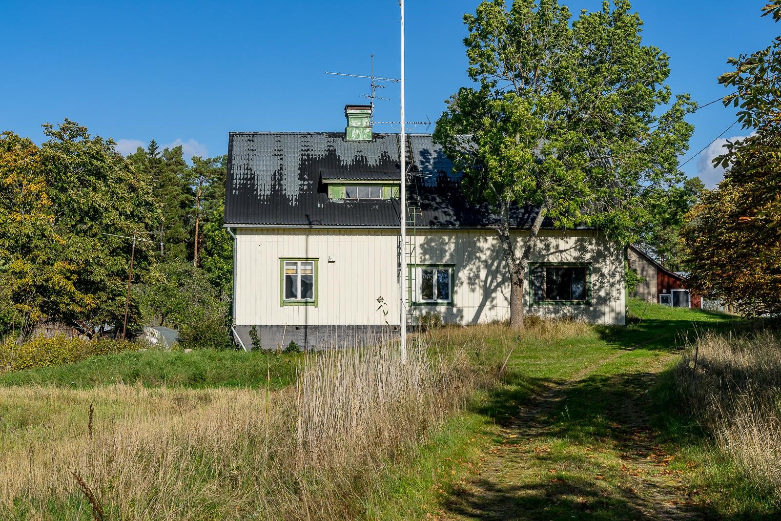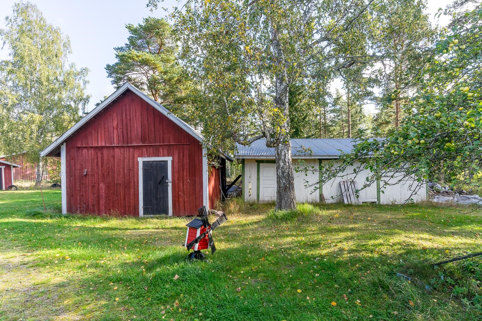 Från fönstret i den gamla storstugan öppnar sig havsutsikt. På gården finns en stor ladugårdsbyggnad, en gammal bastu med ett rum och garage, ett separat garage samt två förrådsbyggnader. Dessutom finns ett uthus i rivningsskick. Byggnaderna möjliggör många användningsmöjligheter. Gården är jämn trädgård med äppelträd och planteringar.
