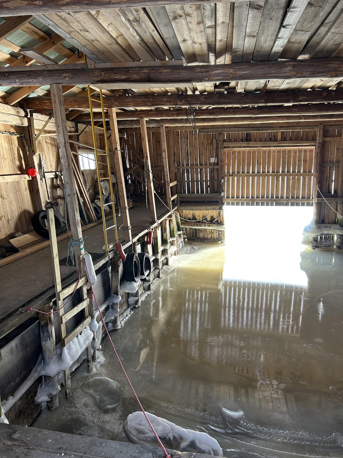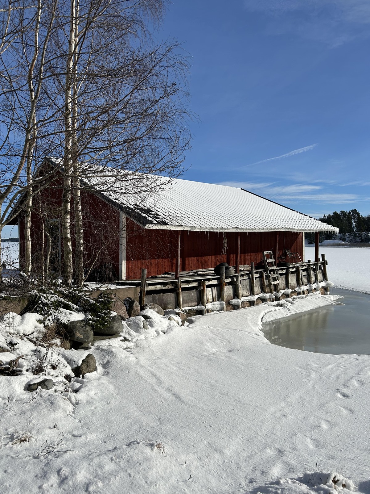 - Rannassa venevaja, laituri sekä varastorakennuksia.